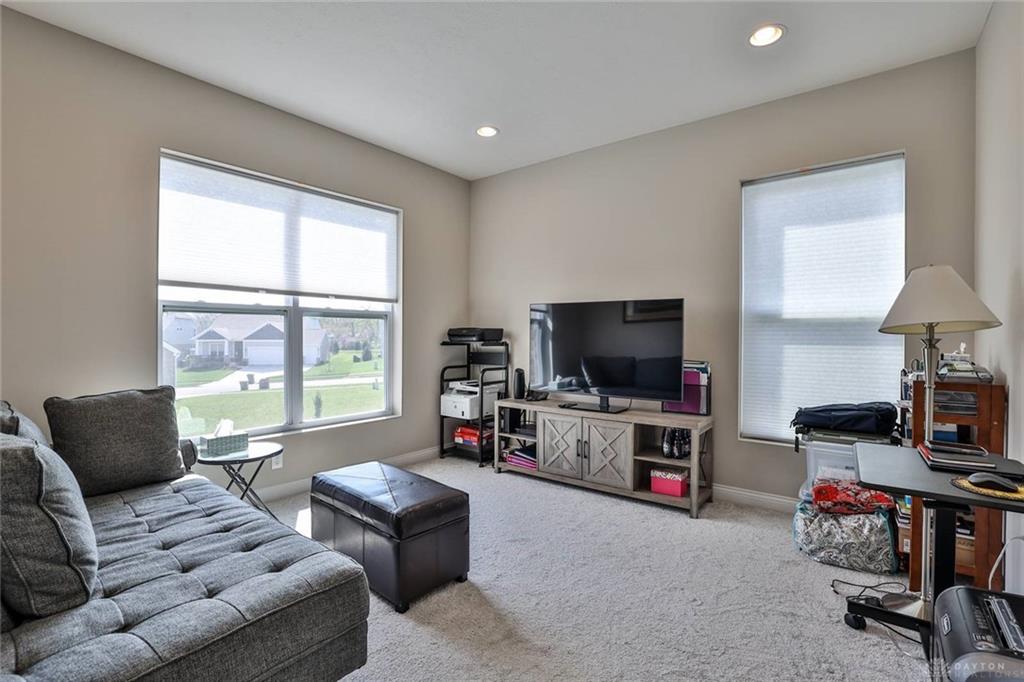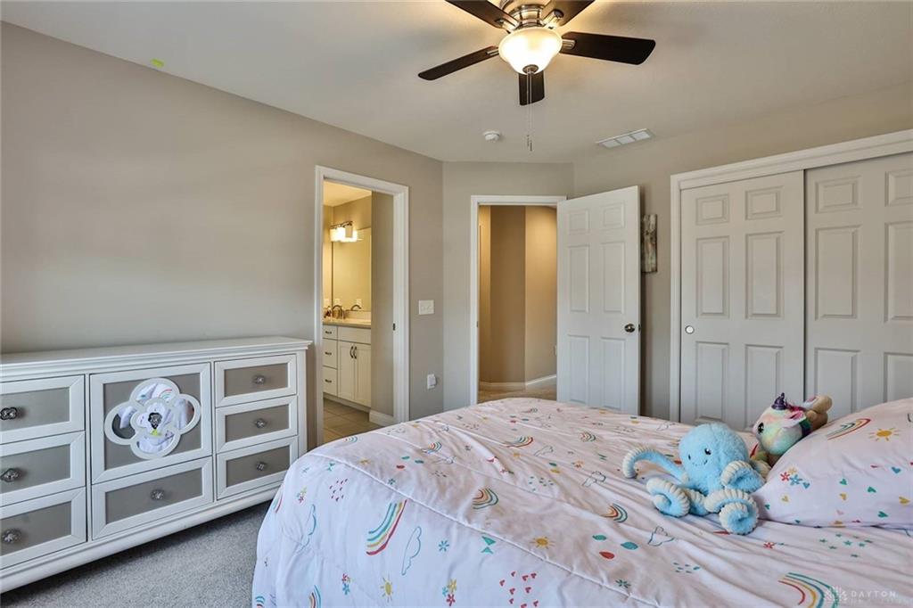 This home is ideal for the busy homeowner(s)! Welcome to your dream home — located in the desirable Cedarbrook Farm subdivision of Beavercreek, this 3-year-old, move-in-ready residence offers over 4,100 sq ft of beautifully finished living space, plus nearly 2,000 sq ft of basement with large daylight windows, already plumbed for a bath and ready to finish for even more room to grow. Perfect for dual-income households, the open-concept design offers a flexible layout for work-from-home days, bonding time, and entertaining. The gourmet kitchen is the heart of the home, featuring a massive quartz island, stainless steel appliances (including gas cooktop and fridge), a butler’s pantry, and easy flow into the breakfast area and great room — complete with gas fireplace and hardwood plank flooring throughout the main level. Need dedicated spaces for remote work or homework? Enjoy a private main-floor den, a formal dining room that can flex as a study zone, and an upstairs loft ideal for a second family room, game area, or home gym. Upstairs, you'll find 4 spacious bedrooms, including a luxurious primary suite with 2 walk-in closets and a garden shower. The Jack & Jill bedrooms with attached bath are perfect, while the second-floor laundry (washer & dryer included) adds everyday convenience. A built-in mudroom off the 3-car garage helps keep household life organized, and the garage is EV-ready for future needs. Plus, the home comes equipped with a security system, reverse osmosis water purifier, and water softener — all designed with your family’s comfort and peace of mind in mind. All appliances stay including washer & dryer. Located near shopping, dining, and commuter routes, this home truly has it all for today’s homeowners. And, this location is approximately one hour to downtown Cincinnati and downtown Columbus! Occupancy at closing — don’t miss it!