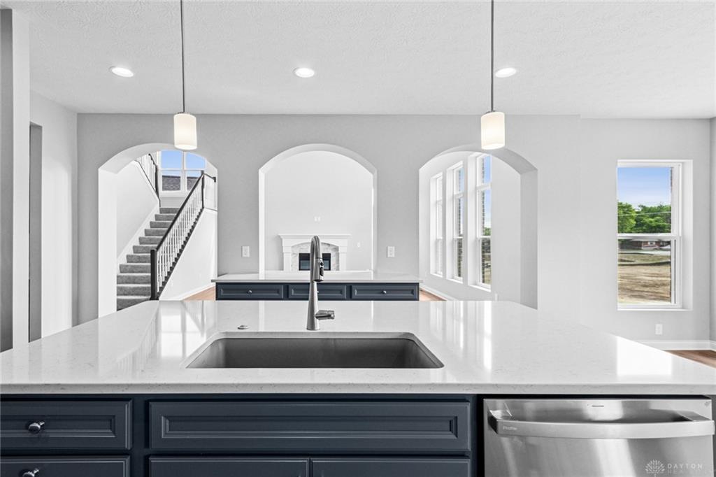 The stunning Monroe model by M/I Homes is brand new construction in Springboro! 3884 sq ft of luxurious living is a show stopper featuring an open floor plan with designer features. 2 story home with 4 spacious bedrooms on the 2nd floor plus a bonus room. Solid surface counters and SS appliances designer cabinets, and a butler pantry are a chef's dream. Perfect for entertaining! The owners suite is luxurious with owners bath showing off it's oversized shower w/ luxurious tiles and glass. Outside is a charming front porch, a 3 car garage w/ brick wrap. This community is close to shopping, recreation, and fine dining!