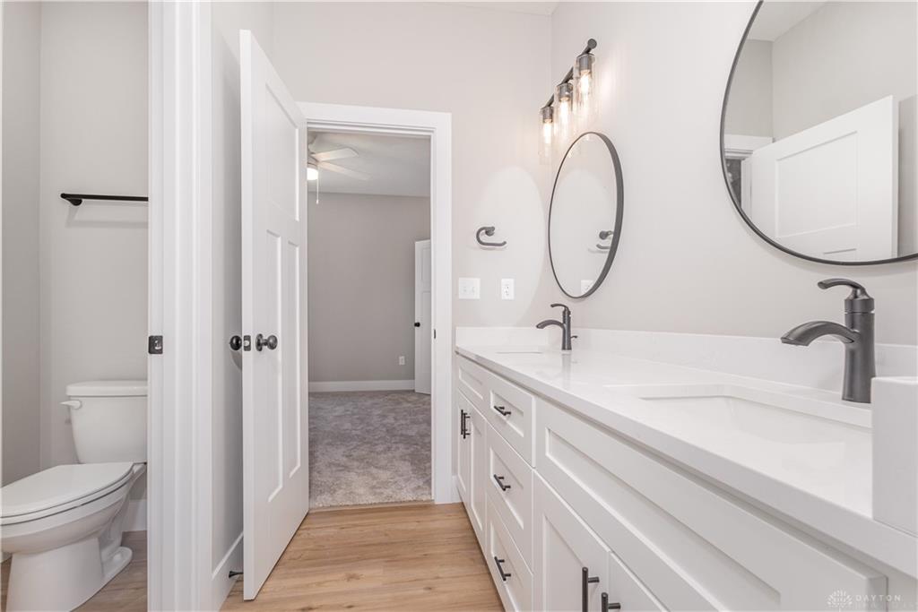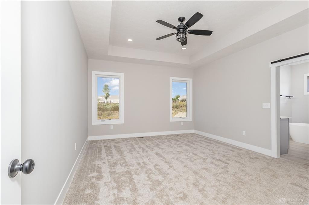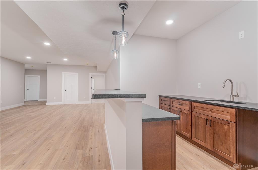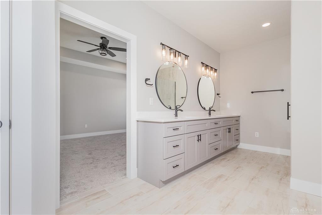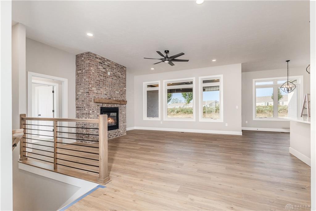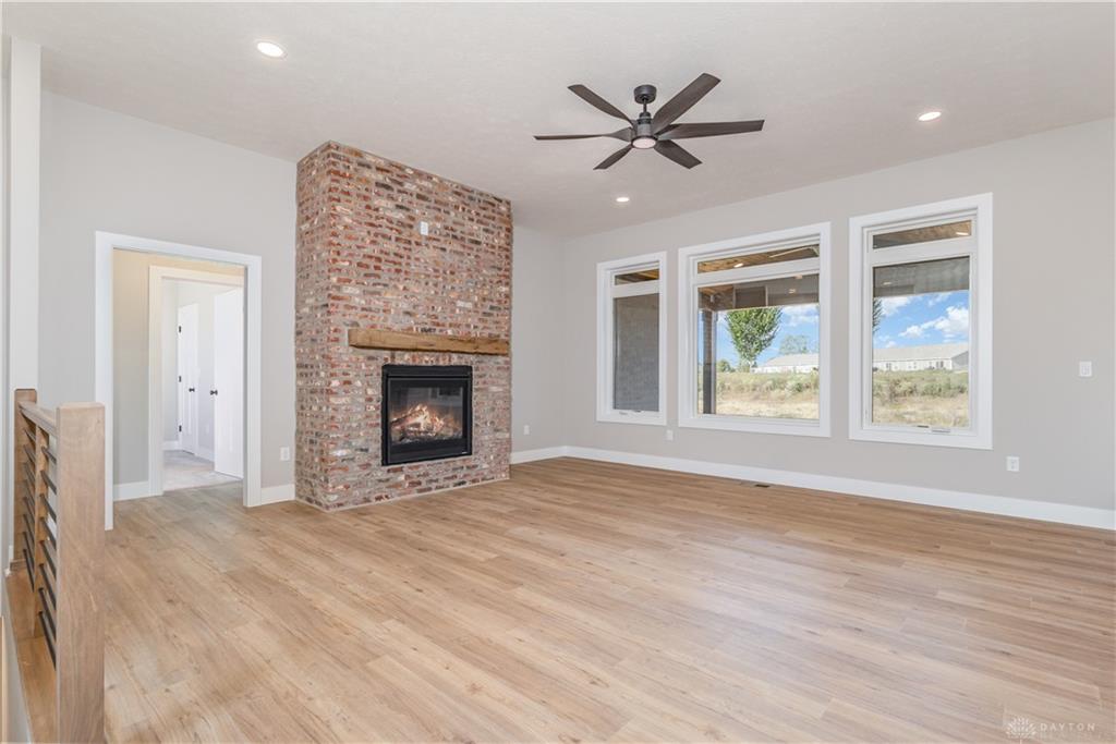 Step into modern ease and timeless charm at 751 Lake Bluff Court, where comfort meets function in this stunning 4-bed, 3.5-bath ranch-style home offering over 2,357 square feet on the main level plus an additional 920 square feet of finished basement space. From the moment you walk through the covered front stoop, you'll find tall 9-foot ceilings, a cozy gas fireplace in the open-concept great room, and a beautifully designed kitchen that features a walk-in pantry, space for a gas cooktop, double ovens, and plenty of cabinets. The adjacent dining room showcases a cathedral ceiling and leads out to a covered patio perfect for relaxing outdoors. The spacious owner’s suite includes a large tiled shower, dual vanities, and an impressive walk-in closet, while each of the three additional bedrooms also features its own walk-in closet. Convenience meets style with a dedicated laundry room, a mud hall off the two-car garage, and a guest-friendly powder room. The lower level adds a large finished rec room and wet bar, creating the perfect space for entertaining or unwinding. Beautiful finishes throughout, this home is both stylish and smart. Located in the scenic Cedar Woods community in Lebanon, OH, this home offers the perfect mix of peaceful surroundings and modern convenience—ready for your finishing touches to make it your own.