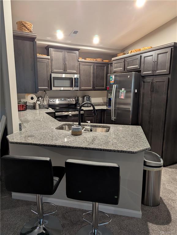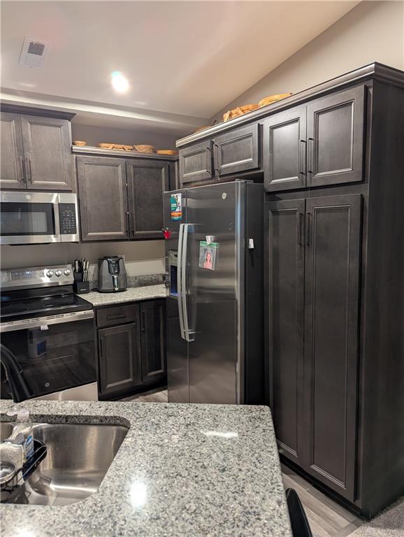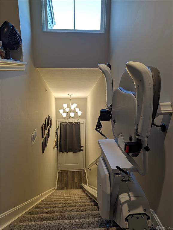 No need to wait because this newly constructed trendy condo by Fischer Homes in the Sugar Point Community is move-in ready. Less than one year occupied, the current owner is moving due to health reasons. This Kimbell model features an upper level condo accessible by an entry with a staircase featuring a chair lift into the condo. This contemporary model has an open concept with many upgraded features including granite countertops, multi-height maple cabinetry with soft close drawers in both kitchen and bathrooms, stainless steel appliances, and counter/bar overlooking the great room with a cathedral ceiling and dining areas. Additionally, this unit has a laundry room with a new washer and dryer that stays. The primary suite features a full private bath and walk-in closet. Another bedroom and full bathroom are accessible from the hallway. The owner has added paddle fans to both bedrooms, as well as electric black-out blinds with remote control for all windows, and a chairlift for entry. Enjoy the pool adjacent to this move-in ready condo in the beautiful Sugar Point community. HOA fees include trash removal, water service, pool, pond, walking trail and all landscaping. Don't miss the opportunity to see this beautiful condo today!