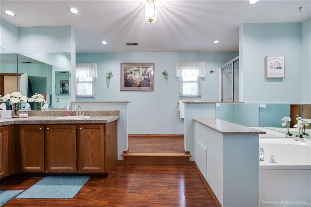 Step inside this stunning two-story home offering 4 bedrooms, 2.5 bathrooms, and nearly 2,800 sq ft of finished living space—one of the largest floorplans in the neighborhood! Built in 1989 and thoughtfully updated, this home delivers the perfect blend of charm and functionality. The spacious living room/dining room combo is ideal for hosting everything from lively dinner parties to memorable holiday gatherings. The country kitchen features beautiful Granite Transformation countertops and a generous dining area that flows seamlessly into the inviting family room with a wood-burning fireplace—the perfect spot for cozy nights in. Back door open to a patio and fully fenced backyard with privacy fencing, creating a fantastic space for outdoor entertaining, play, or simply unwinding. Upstairs, the primary suite is a true retreat—massive in size and offering plenty of space for a sitting area, extra furniture, or even a home office nook. Enjoy a walk-in closet and an ensuite bath with a soaking tub, separate shower, and dual-sink vanity. Three additional bedrooms (two with walk-in closets!) and a full hall bath complete the second level. The spacious unfinished basement offers laundry, storage, and endless potential for future finishing. Location is unbeatable—close to the YMCA, Carriage Hill MetroPark, The Rose Music Center, grocery stores, restaurants, and shopping. With quick access to I-70, commuting to Wright-Patterson Air Force Base or the Dayton International Airport is a breeze. Don’t miss this opportunity to own one of the neighborhood’s most desirable homes—schedule your private tour today!
