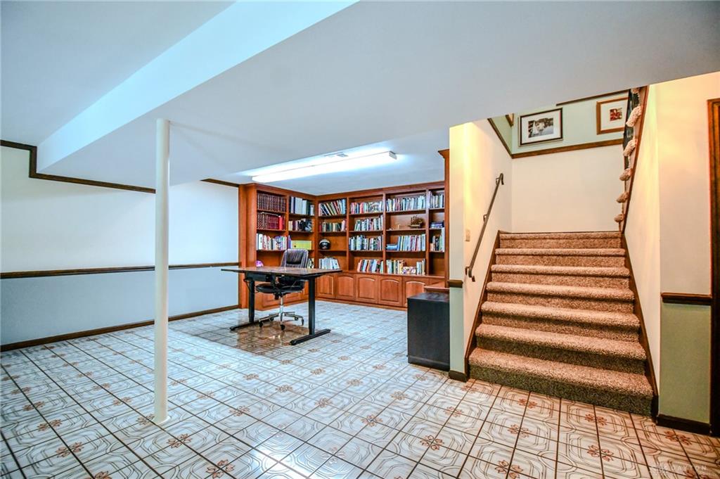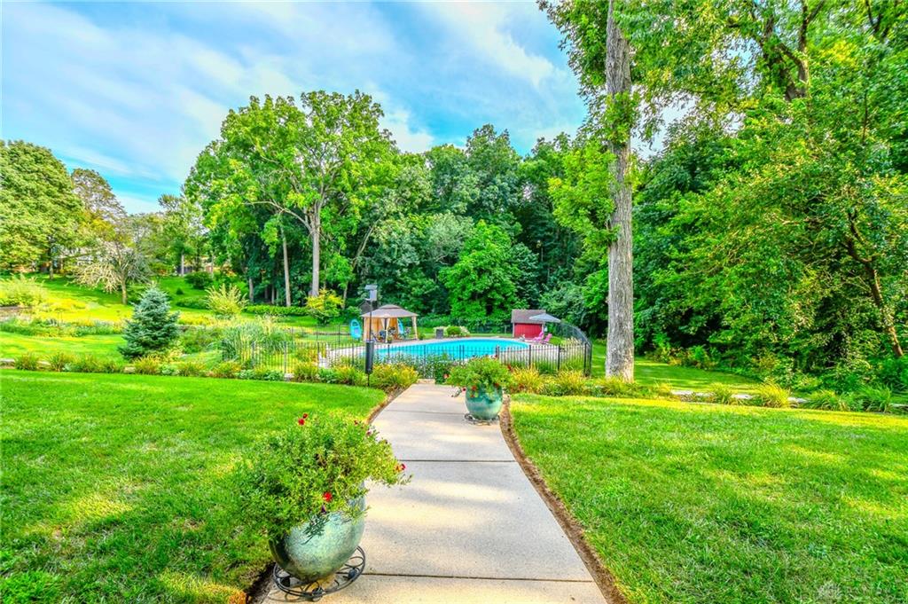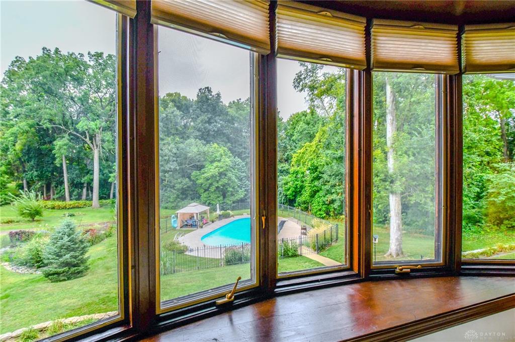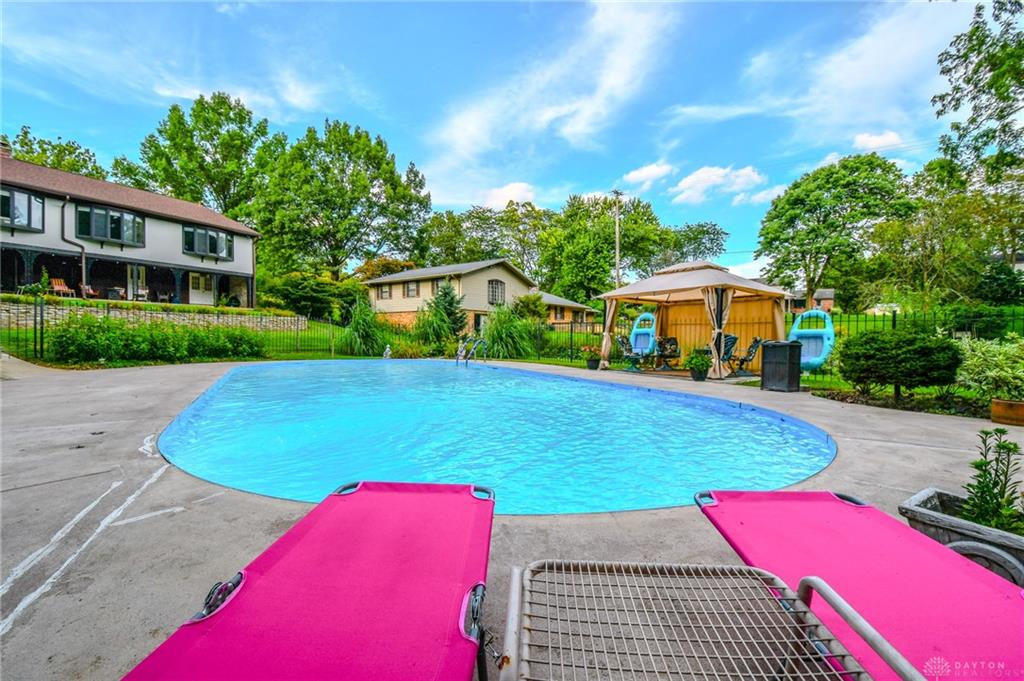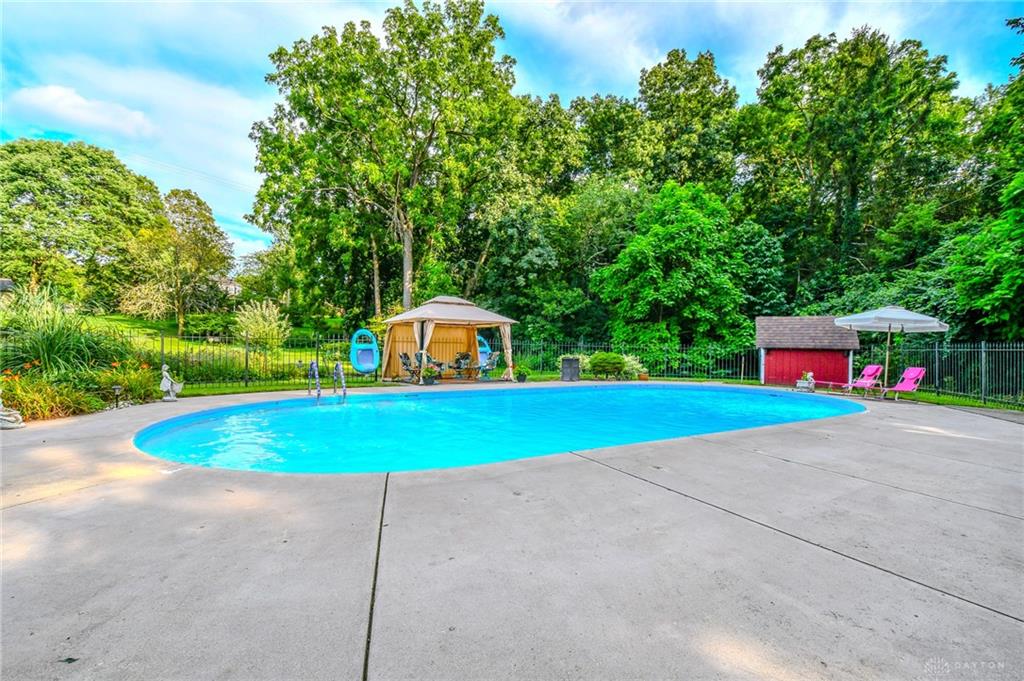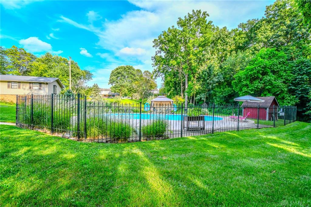 Spacious West Kettering Ranch, perfect for Entertaining, Inside & Out! This expansive West Kettering ranch offers the perfect blend of comfort, style, and space for year-round entertaining. Inside, you will find generous living areas including a massive dining room with stunning views of the beautifully landscaped backyard. The large main bedroom features a bay window overlooking the serene yard, a walk-in closet, and a convenient vanity area with a sink. The walkout basement is a true retreat complete with a huge rec room, 4th bedroom, office/library with custom built-in shelving, a wet bar, and a full bath/changing room for poolside guests. Step outside to the extra-long covered patio and take in the private, wooded yard and gorgeous in-ground pool surrounded by mature trees and blooming perennials. You can keep your dogs safe with the electric dog fence w/2 collars. This home has been meticulously maintained and thoughtfully updated: New carpet in master bedroom, office, hallway and family room, New paint in family room, living room & kitchen, Automatic Dolphin pool cleaner (2025), Electric panel in pool shed & new pool filter (2024), Gutters w/leaf guard (2022), Roof (2021), Top-down/bottom-up blinds (2024), Automatic skylight & storm doors (2023), HVAC system (2019)