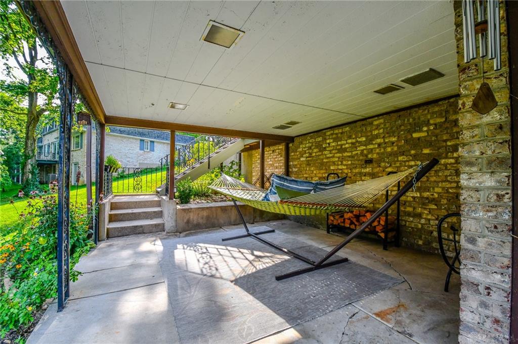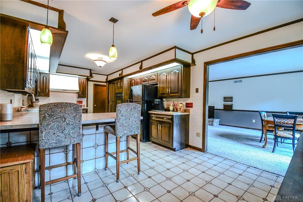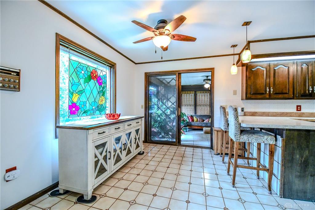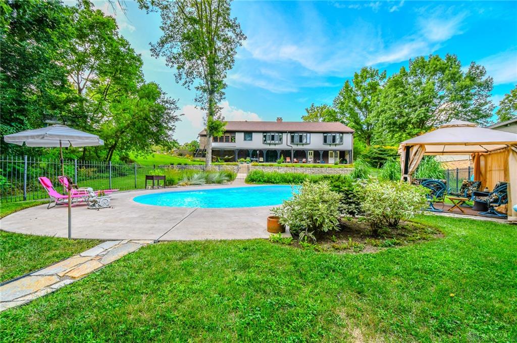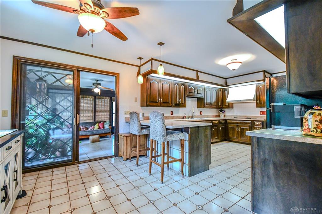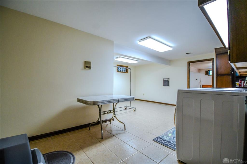 Spacious West Kettering Ranch, perfect for Entertaining, Inside & Out! This expansive West Kettering ranch offers the perfect blend of comfort, style, and space for year-round entertaining. Inside, you will find generous living areas including a massive dining room with stunning views of the beautifully landscaped backyard. The large main bedroom features a bay window overlooking the serene yard, a walk-in closet, and a convenient vanity area with a sink. The walkout basement is a true retreat complete with a huge rec room, 4th bedroom, office/library with custom built-in shelving, a wet bar, and a full bath/changing room for poolside guests. Step outside to the extra-long covered patio and take in the private, wooded yard and gorgeous in-ground pool surrounded by mature trees and blooming perennials. You can keep your dogs safe with the electric dog fence w/2 collars. This home has been meticulously maintained and thoughtfully updated: New carpet in master bedroom, office, hallway and family room, New paint in family room, living room & kitchen, Automatic Dolphin pool cleaner (2025), Electric panel in pool shed & new pool filter (2024), Gutters w/leaf guard (2022), Roof (2021), Top-down/bottom-up blinds (2024), Automatic skylight & storm doors (2023), HVAC system (2019)