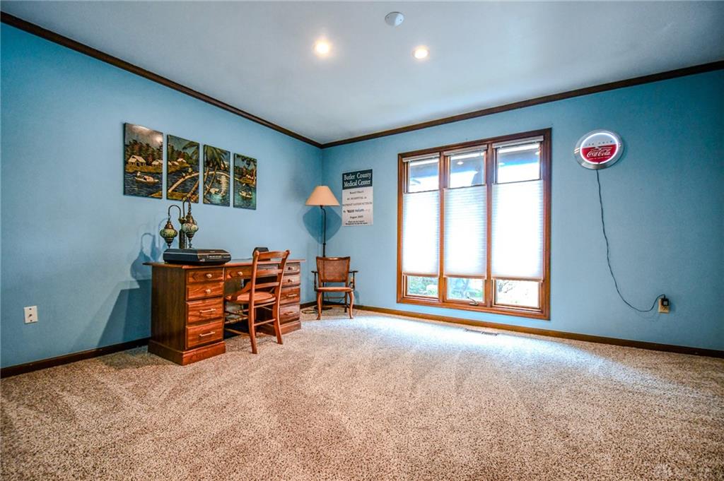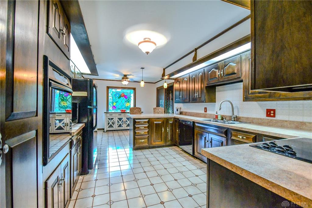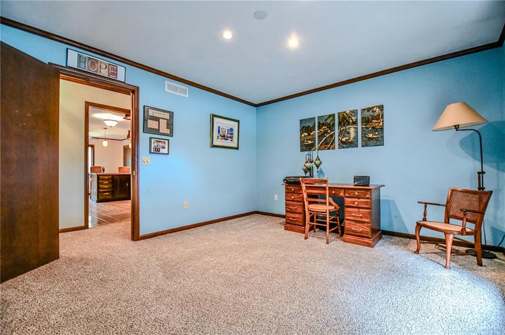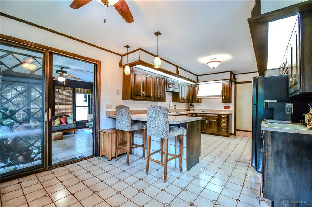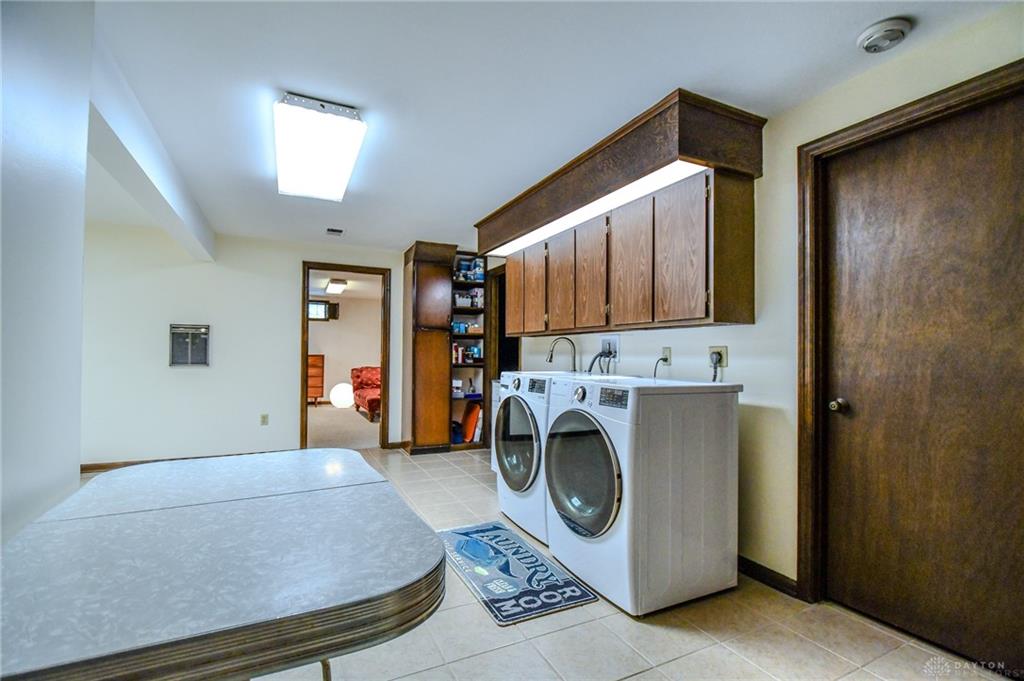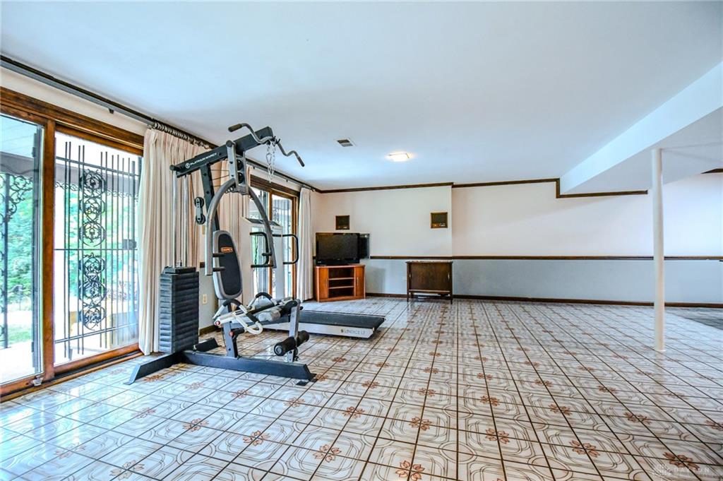 Spacious West Kettering Ranch, perfect for Entertaining, Inside & Out! This expansive West Kettering ranch offers the perfect blend of comfort, style, and space for year-round entertaining. Inside, you will find generous living areas including a massive dining room with stunning views of the beautifully landscaped backyard. The large main bedroom features a bay window overlooking the serene yard, a walk-in closet, and a convenient vanity area with a sink. The walkout basement is a true retreat complete with a huge rec room, 4th bedroom, office/library with custom built-in shelving, a wet bar, and a full bath/changing room for poolside guests. Step outside to the extra-long covered patio and take in the private, wooded yard and gorgeous in-ground pool surrounded by mature trees and blooming perennials. You can keep your dogs safe with the electric dog fence w/2 collars. This home has been meticulously maintained and thoughtfully updated: New carpet in master bedroom, office, hallway and family room, New paint in family room, living room & kitchen, Automatic Dolphin pool cleaner (2025), Electric panel in pool shed & new pool filter (2024), Gutters w/leaf guard (2022), Roof (2021), Top-down/bottom-up blinds (2024), Automatic skylight & storm doors (2023), HVAC system (2019)
