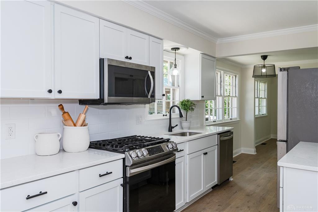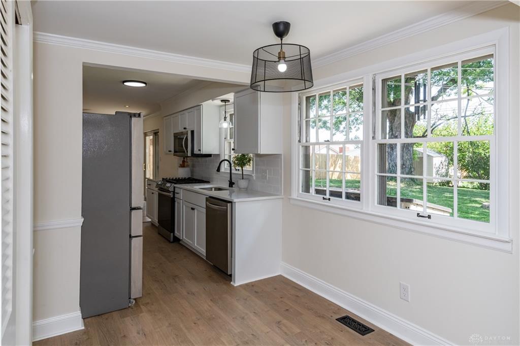 You'll want to see this dream home today! 4 bedrooms, 2.5 bathrooms- this home has been fully renovated from top to bottom. Offering 1,860 sq. ft. of modern living space that you'll completely fall in love with! Step inside the foyer to discover brand new flooring, fresh paint, stylish lighting, and sleek finishes all throughout. The kitchen shines with stainless steel appliances, quartz countertops, and plenty of space for cooking-also, open to a breakfast room and family room making it the perfect place for entertaining. Upstairs you'll find 2 full, renovated bathrooms and 4 spacious bedrooms. Outside, you'll find a fenced-in backyard with a playset making it the perfect space for kids and pets. The home also features a 2-car garage with storage. Great location, near WPAFB, Wright State University, I-675, Kroger, local parks, and Fairborn's brand new schools! Easy to see, schedule a tour today!