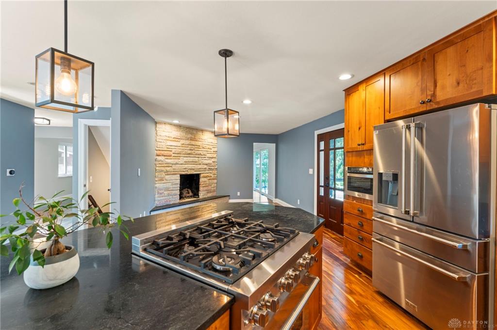 Welcome to this stunning 5-bedroom home with a walkout basement nestled on a peaceful cul-de-sac, surrounded by nature and breathtaking views. Every inch of this home has been thoughtfully updated and freshly painted, creating a move-in ready retreat filled with warmth and character. Interior Features: Enter to a striking stone fireplace feature that sets the tone for the home’s unique design. The spacious kitchen and dining area shine with premium finishes, ample cabinetry, and charm for everyday living and entertaining. Relax in the expansive family room with vaulted ceilings, fireplace, and a wall of windows showcasing the amazing views. Upstairs, find 5 generously sized bedrooms, including the serene owner’s suite with room to unwind. Lower Level Retreat: The walkout basement features modern stained floors, a third fireplace, and flexible living areas. Step directly out to the stone paver patio, the perfect place for gatherings or quiet evenings outdoors. Outdoor Living: Surrounded by nature with stunning views from every angle. Outdoor spaces are designed for both entertainment and peaceful retreat. With ample living space, unique character, and a natural setting that feels worlds away—yet close to everything Centerville has to offer—5451 Folkestone Drive is the perfect blend of comfort, style, and location. Please note fireplaces are not warranted.