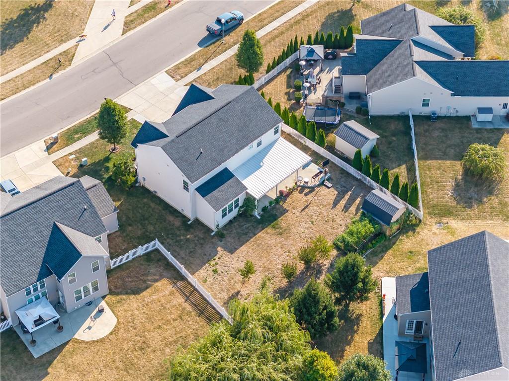 This meticulously maintained 2015 home in Carriage Trails, with only one owner, is designed for modern living with a practical and open flow. The heart of the home is a bright, open-concept space that seamlessly connects the kitchen, dining, and living room, making it perfect for both daily life and entertaining. The kitchen is a standout, featuring a massive island with quartz countertops that provides plenty of workspace and casual seating. The main floor also includes a convenient bedroom, ideal for guests or a home office. Upstairs, you'll find five spacious bedrooms. The primary suite is a true retreat with a large walk-in closet and an ensuite bathroom that includes dual vanities and a hot tub. The largest room upstairs features French doors and offers a flexible space that can serve as a bedroom, playroom, or a loft. The fully finished basement adds significant living area with a large rec room and a full bath. Outside, the covered concrete patio in the backyard, equipped with two fans, is an excellent extension of your living space. The property also includes a storage shed and an enlarged two-car driveway. This is a solid, well-cared-for home ready for its next chapter.
