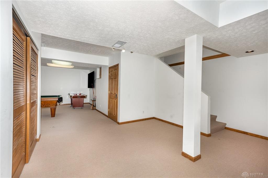 Stunning 4 Bed / 4 Bath Home in sought after Cheltenham subdivision in Centerville school district. Over 3,500 square feet of living space in a prime location, on a 1/2 acre lot with 3 1/2 car side entry garage. So many extras! 6-person Hot Spring Hot Tub with mounted TV on patio. New cedar hot stone sauna in basement, pool table, 70-inch TV in Rec room. Sprinkler system, electronic keypad on doors, newer washer and dryer. Master Bedroom on Ground Floor with ensuite. Master bath has two showers (one step free), skylight, walk-in closet and two toilets. Sharing is caring ;-) Real hardwood floors throughout, including main stairs and handrail. Premium finishes include hardwood crown molding, chair rails and base boards. Three generous bedrooms upstairs with a family bathroom. Living Room open to kitchen with 10-foot ceiling, gas fireplace and three casement windows looking out on shared duck pond, hot tub on patio and mature spruce trees. Kitchen features granite counters and a premium Thor range oven and vent hood. Four-door Samsung refrigerator freezer and stainless dishwasher next to 30" stainless deep sink overlooking back yard. One mile from I-675 - easy drive to WPAFB, downtown, Miami Valley South hospital, Kettering Health, Kohls, Lowe's, restaurants and Metro Parks. Trane XLi A/C unit and Trane Furnace with Aprilaire humidifier installed 2021 by Logan. AO Smith Water heater 2016. Rain dial sprinker system. Grizzl-E 240v EV charger in driveway. Ecobee WiFi thermostat. Newer sump pump. No warranty on fireplace, hot tub, EV charger, sprinkler or any appliances.