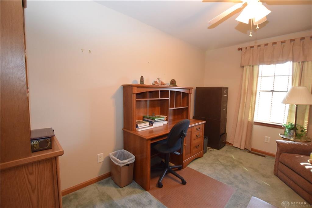 Great family home on the northeast side of Troy in the Miami East school district. First floor owner's suite with a shower and a soaking tub, and first floor laundry. Formal living room, kitchen is open to the dining area and connecting sitting area. Kitchen appliances stay for the new owner. French doors to the office so you can work from home. 2nd floor with 2 additional bedrooms, a full bath, and an open loft. The basement has one side partially finished into a family/rec room. Some new items since original build include: New AC in July 2025, new furnace 2016, new sump ump June 2022, garage door opener 2018, microwave 2021, and roof less than 10 years old. Back deck 14 x 12 with a power awning and partial privacy fence.