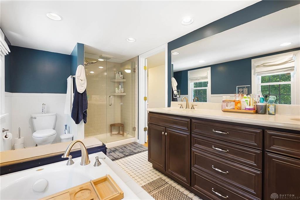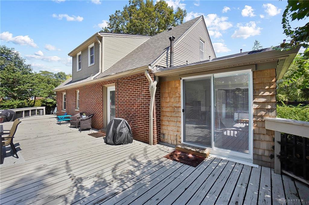 Welcome to this stunning brick Cape Cod in the heart of West Kettering, where timeless charm meets modern sophistication. Offering 3 bedrooms with a possible 4th, 2.5 baths, and nearly 2,700 square feet of beautifully finished living space, this home blends comfort and craftsmanship at every turn. The 2023 remodeled kitchen features sleek quartz countertops, custom cabinetry, and a designer sink—perfectly designed for both everyday living and entertaining. Hardwood floors flow throughout most of the home, adding warmth and elegance. The light-filled sunroom showcases a wall of windows, tile flooring, and a new exterior door leading to the expansive deck, ideal for morning coffee or evening gatherings. The dining/breakfast room with its charming bay window creates an inviting space for intimate meals or festive occasions. Two spacious bedrooms on the main level share a beautifully updated full bath. The primary suite upstairs is a private retreat, boasting an updated spa-like bath with double vanities, a soaking tub, a 4-foot shower, and recessed lighting—plus a 15-foot walk-in closet with exceptional storage. The finished walk-out lower level adds valuable living space, featuring a half bath and a flexible room ideal for a fourth bedroom, home office, or fitness area. Step outside to the 75x13 extra-large deck overlooking a private, tree-lined yard that includes an additional lot, offering both beauty and privacy. Peace of mind comes with major updates including the roof, gutters, AC/furnace with APS, full rear yard fencing, and radon system – all since 2019. Showings start Friday Oct 10 - 9am. Ready to be your home!!! 2 parcels - Primary 104x120- .286, 12,480 - Second 90x115- .231, 10062 = .517 acre
