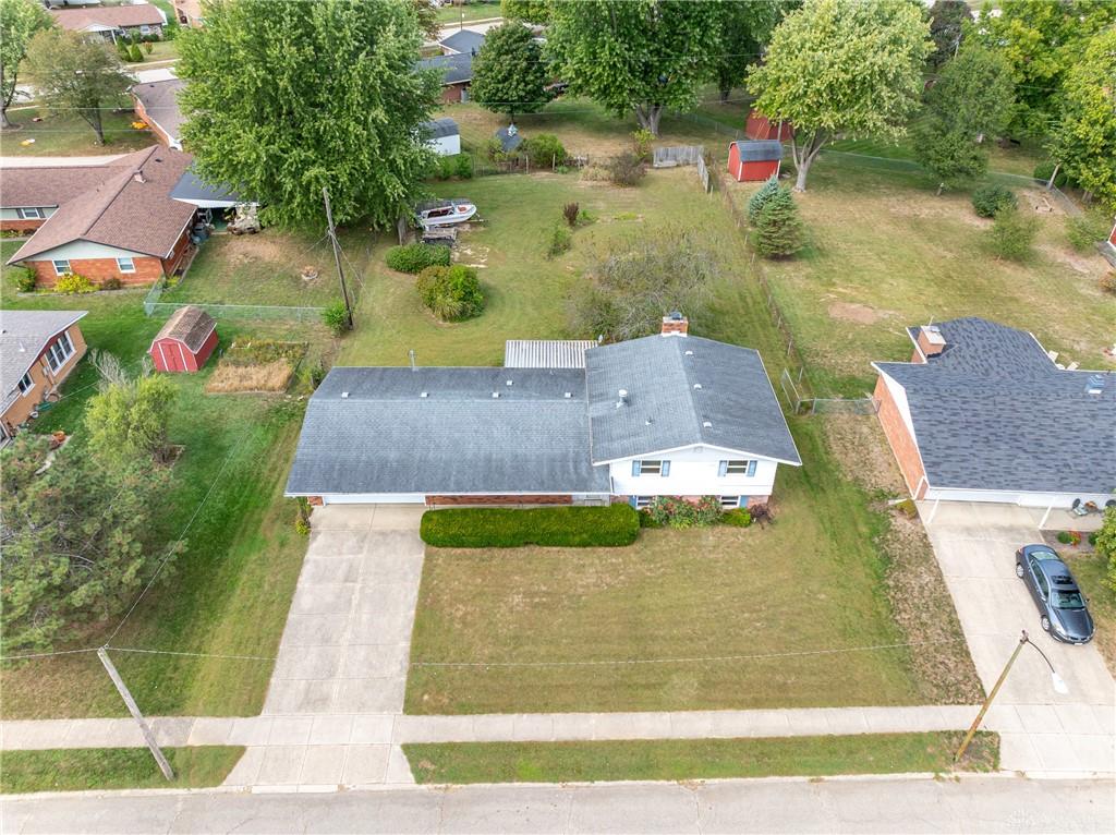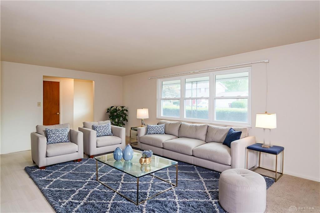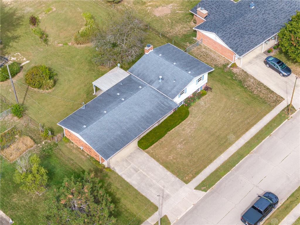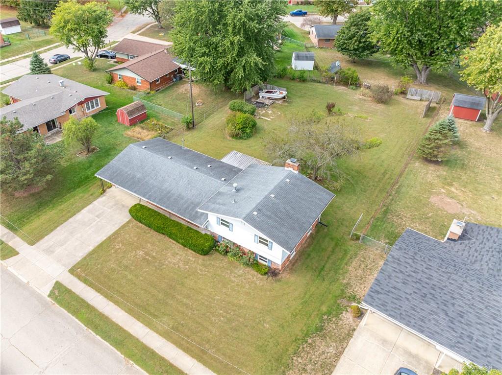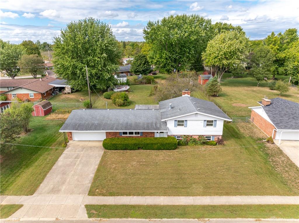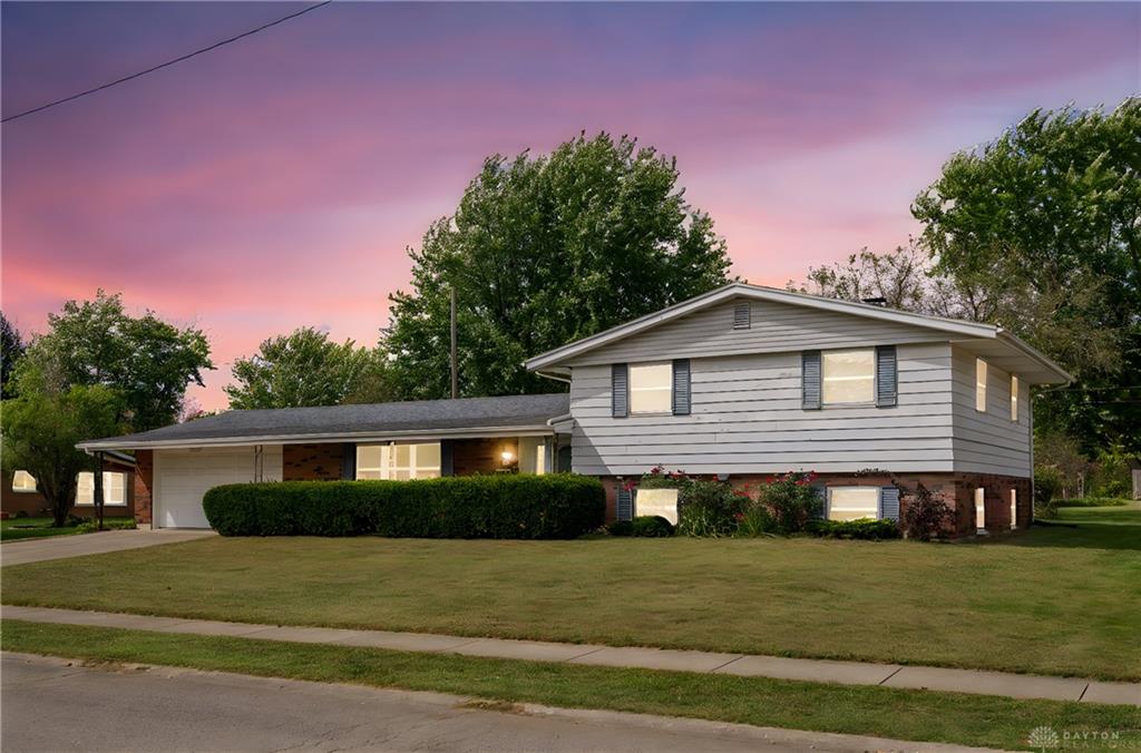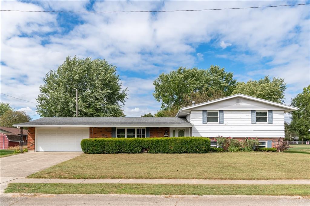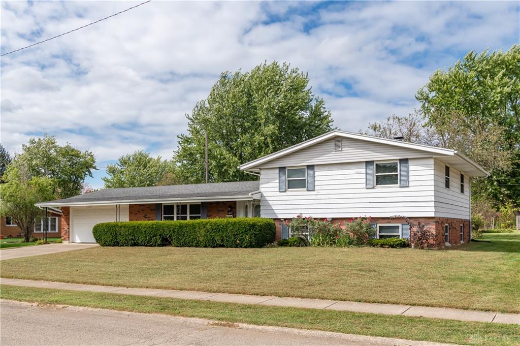 WONDERFUL Tri-level located in desirable Rona Hills Subdivision on a large lot! From the sheltered front porch are enter an Inviting entry with ceramic tile and coat closet. Large living room with plenty of natural lighting from a bank of window.. Formal dining room. Updated kitchen...check out the large pantry cabinets and the same ceramic tile flooring that flows from the foyer through the kitchen. All appliances convey! Sliders access the large, covered patio with electric outlet for a hot tub. Other electric outlets in rear yard. Upper level boasts primary bedroom with attached updated bathroom and double door closets. The other 2 bedrooms are serviced by a large, updated hall bath. This level has hardwood floors under the carpet. The lower level houses a large family room with wood burning fireplace and raised hearth. Fourth bedroom and/or study is on this level, as is an updated, half bath and laundry/mechanical room. The furnace is a high efficiency, water heater 2024, roof 10 years, kitchen, windows, doors and 200 amp, electric panel all updated in 2003. Attached (21X26) 2+ car garage with opener and storage. Move-in condition! Great location...5 minutes to I-675 and I-70.