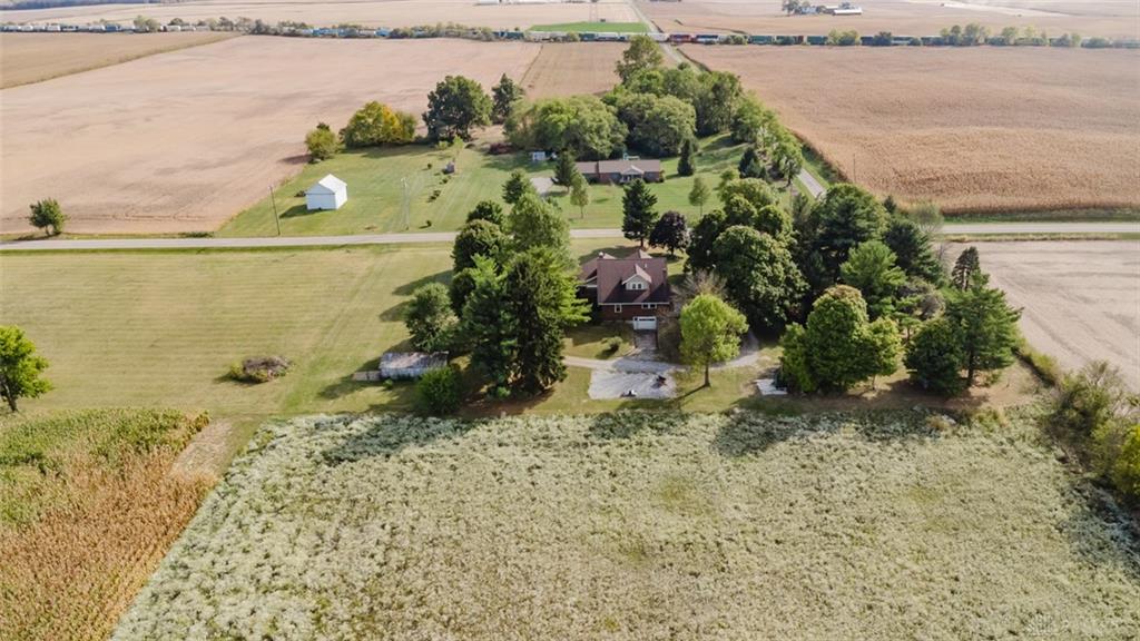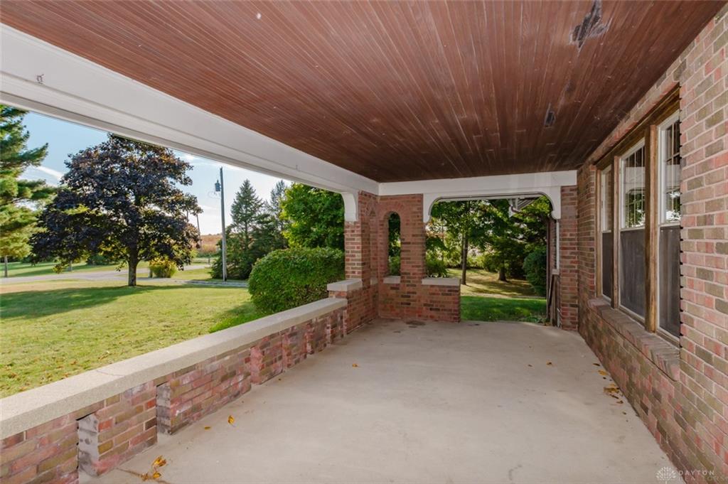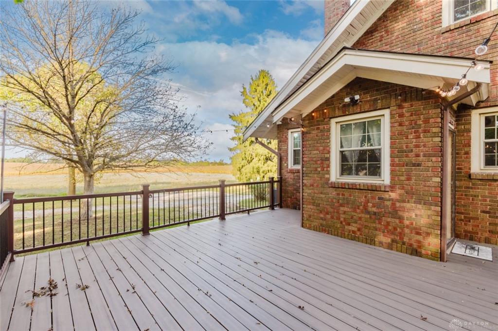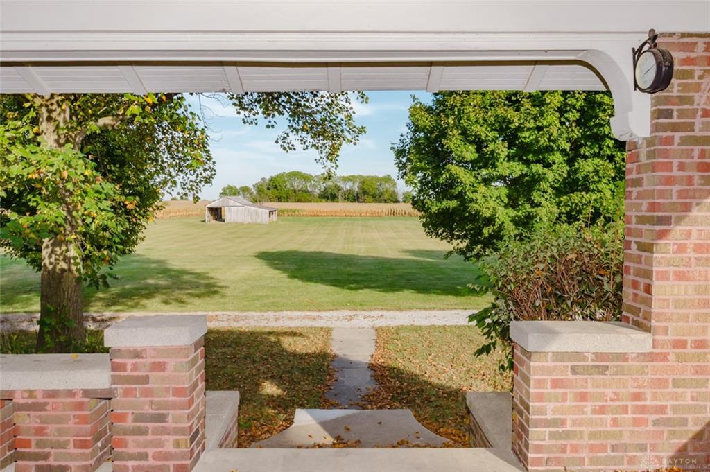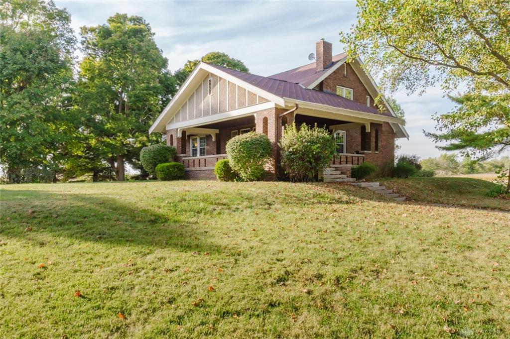 Beautifully maintained 100-year-old brick home on 5 acres of peaceful country setting between Eaton and the Indiana border. This spacious 4 bedroom, 2 bath two-story offers timeless character and thoughtful updates throughout. The wraparound porch adds classic charm and is perfect for enjoying the countryside views. Inside, you’ll find large rooms, refinished original hardwood floors, wide crown molding, pocket doors, and original glass door knobs that reflect the home’s craftsmanship. The main level features a large family room with wood burning stove, glass folding doors leading to the dining room, and an updated kitchen with quartz counters, an island, and the original built-in pantry. Also on the first floor is a large bedroom and full bath. Upstairs are 3 bedrooms, another full bath, and generous closet space. The full basement includes a heated one-car garage and plenty of storage. A rear deck looks out over the rolling acreage—an ideal country retreat that’s been beautifully cared for over the years.