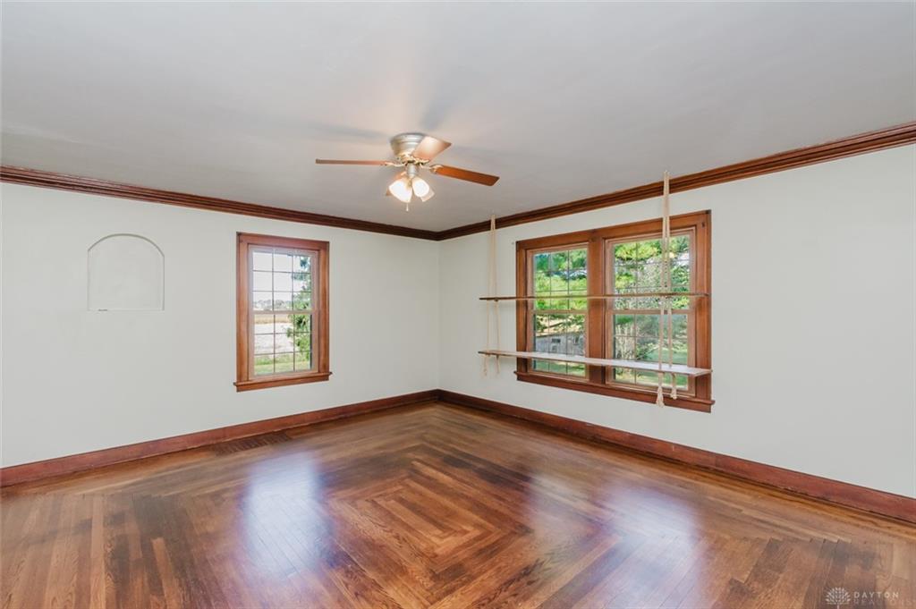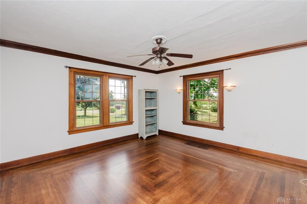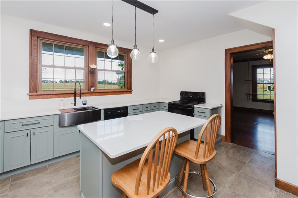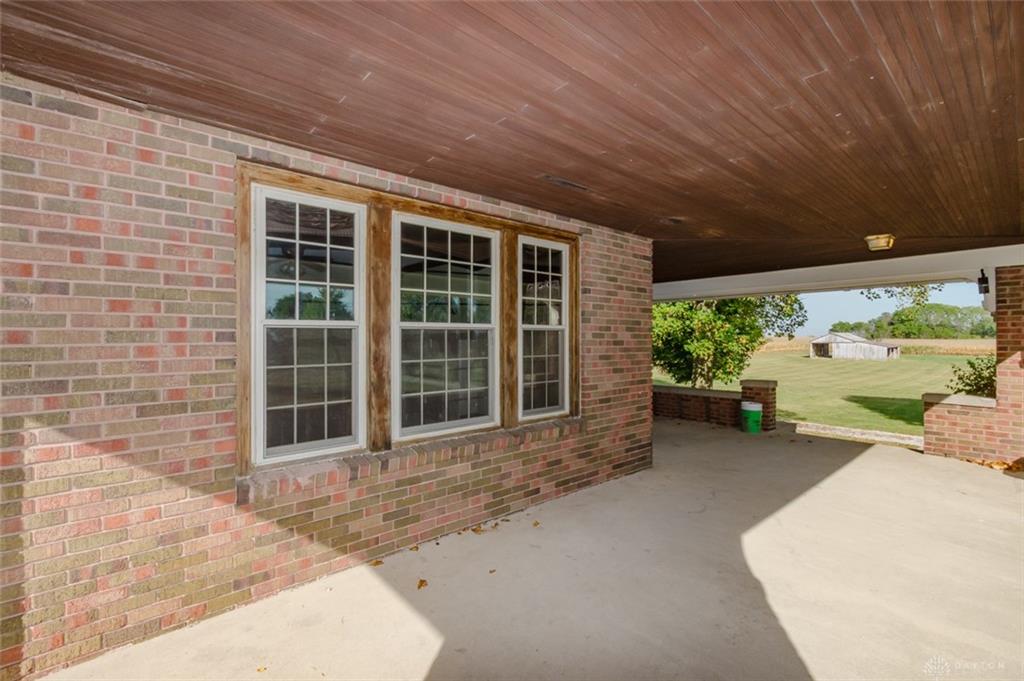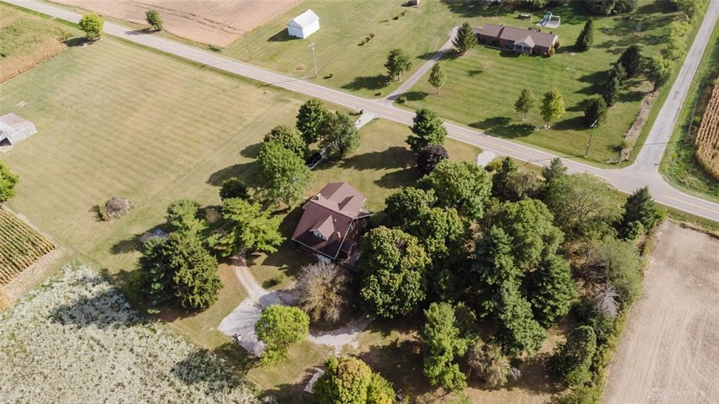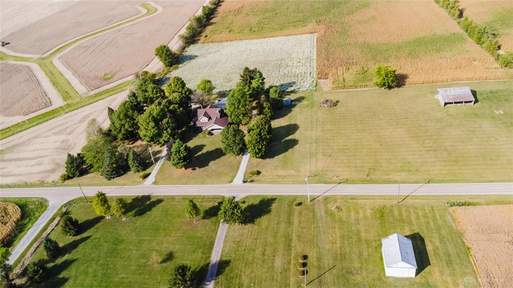 Beautifully maintained 100-year-old brick home on 5 acres of peaceful country setting between Eaton and the Indiana border. This spacious 4 bedroom, 2 bath two-story offers timeless character and thoughtful updates throughout. The wraparound porch adds classic charm and is perfect for enjoying the countryside views. Inside, you’ll find large rooms, refinished original hardwood floors, wide crown molding, pocket doors, and original glass door knobs that reflect the home’s craftsmanship. The main level features a large family room with wood burning stove, glass folding doors leading to the dining room, and an updated kitchen with quartz counters, an island, and the original built-in pantry. Also on the first floor is a large bedroom and full bath. Upstairs are 3 bedrooms, another full bath, and generous closet space. The full basement includes a heated one-car garage and plenty of storage. A rear deck looks out over the rolling acreage—an ideal country retreat that’s been beautifully cared for over the years.