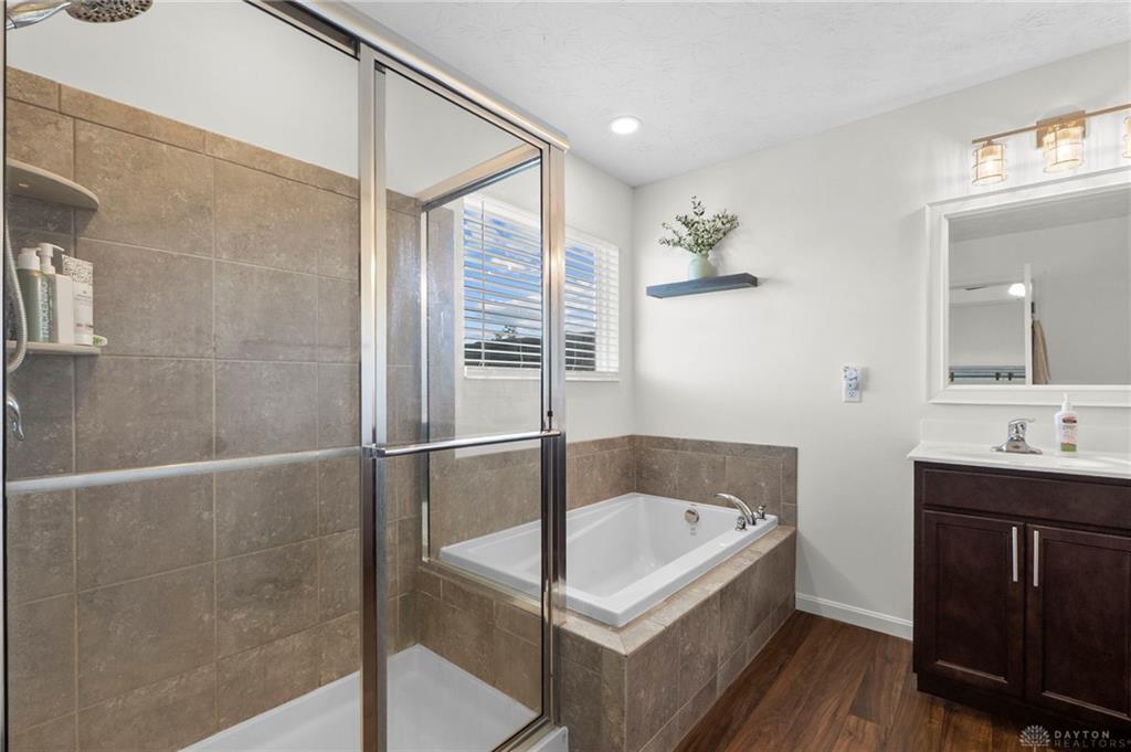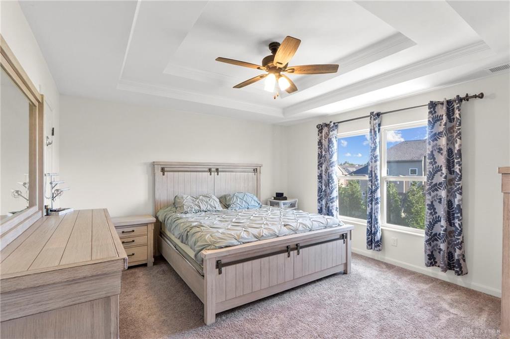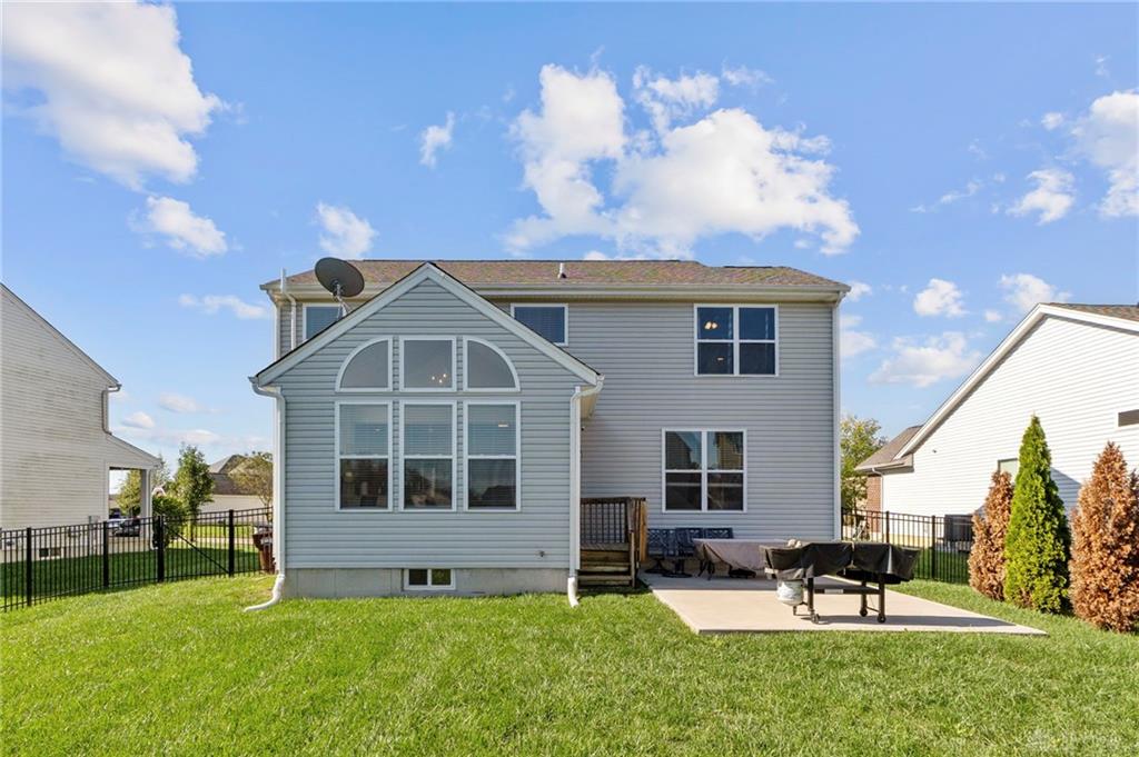 Welcome Home! Check out this Stunning Brick Two Story Home with finished Basement located in Fairborn's sought after Bluffs on Trebein Neighborhood! 4 Beds, 3 Baths, and offering over 2600 Square Feet! Through the Front Door is the Open Concept Floor Plan to the Kitchen, Morning Room with High Ceilings, Living Room, and Dining / Bonus Room. The Kitchen offers Gorgeous Granite Countertops, Island, Stainless Steel Appliances, Backsplash, and tons of Cabinet Space. The Second Floor offers a Spacious Primary Bedroom with Walk In Closet, a Primary Bathroom with Jack & Jill Vanity + Shower and Large Soaking Tub. The Second Floor has 3 Additional Bedrooms with a Full Bathroom, and a conveniently located Second Floor Laundry Room. Wait until you see the Basement! The Basement offers a Spacious Finished Area with Plank Flooring & a Large Storage Room. This Home boasts Curb Appeal! Great sized Backyard offering Concrete Patio with Privacy Bushes & a New Aluminum Fence. Two Car Garage with Epoxy Paint Flooring. Updates Include: Fence, Water Softener, Humidifier, and Lights/Ceiling Fans in all Bedrooms. Conveniently located near Fairborn Schools, WPAFB, Wright State, Shopping, & Restaurants. You don't want to miss this one!