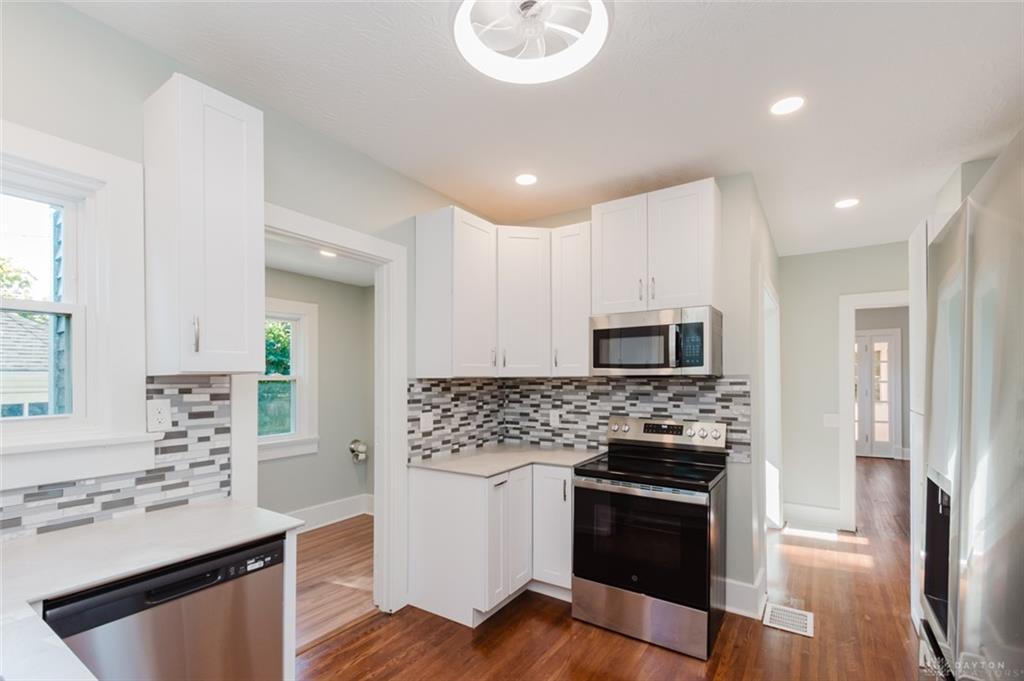 Beautifully renovated and lovingly maintained, this 100-year-old home in historic Old North Dayton offers 2,732 sq ft of timeless character blended with modern updates. Situated on nearly a quarter acre, it features refinished original hardwood floors, 9-foot ceilings, and large windows that fill the home with natural light. Step inside the spacious entry with an office to the left, then into the inviting living room with a decorative fireplace that opens to a cozy sunroom. A large dining room with access to the enclosed patio is perfect for gatherings. The new kitchen features all-new cabinetry, appliances, and fixtures, a charming breakfast nook, and convenient Laundry area nearby. A half bath is located just off the Kitchen. Upstairs, the second floor offers four generous bedrooms, including one with an attached bath, plus a beautifully remodeled shared Bath. The third floor provides a private bedroom with its own bath—ideal for guests or a quiet retreat. All bathrooms are newly remodeled, and the home has updated electrical and plumbing, a new roof (’22), new windows (’22), new HVAC (’23), and a new water heater (’23). A clean basement provides ample storage, and the detached two-car garage sits beside a private yard. This home showcases old-world craftsmanship enhanced with thoughtful, modern updates throughout. Seller is a Licensed Real Estate Agent.