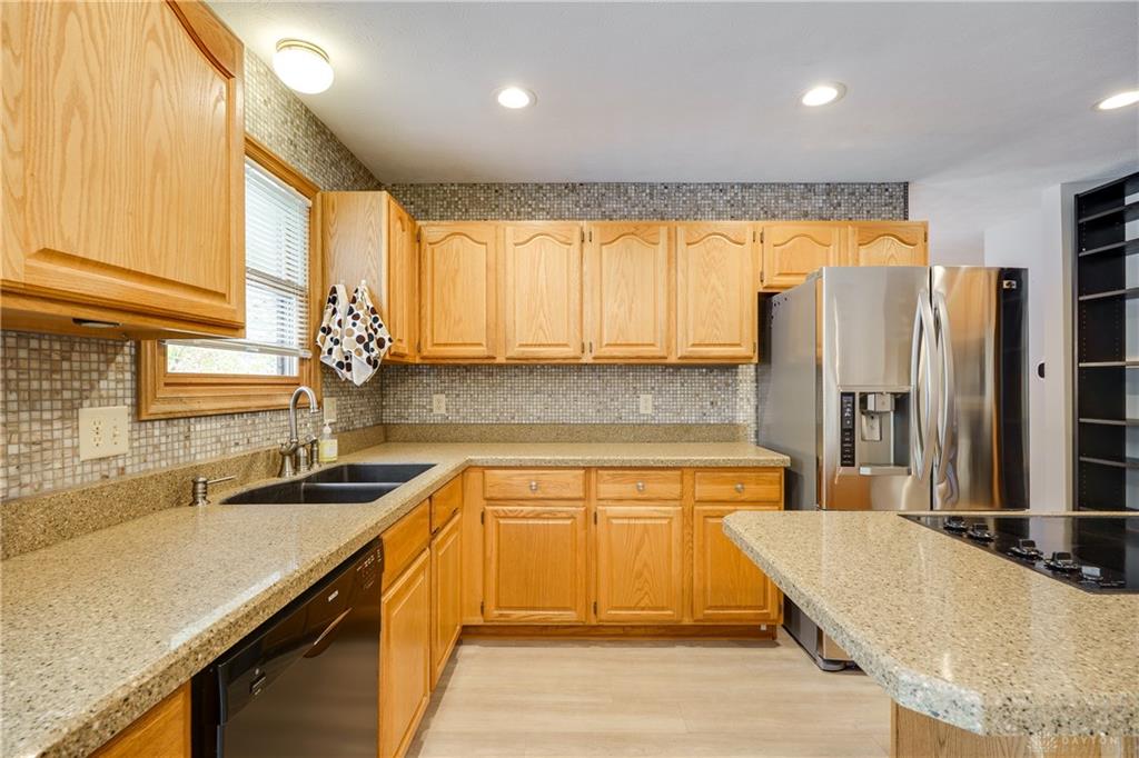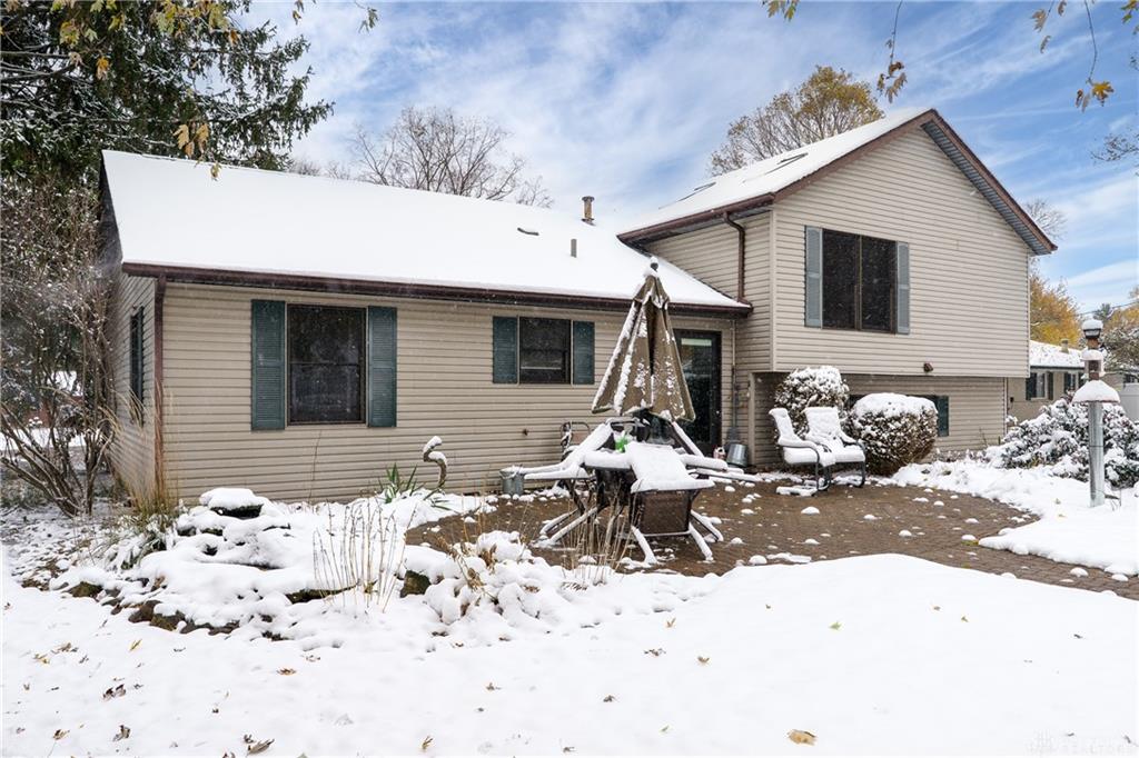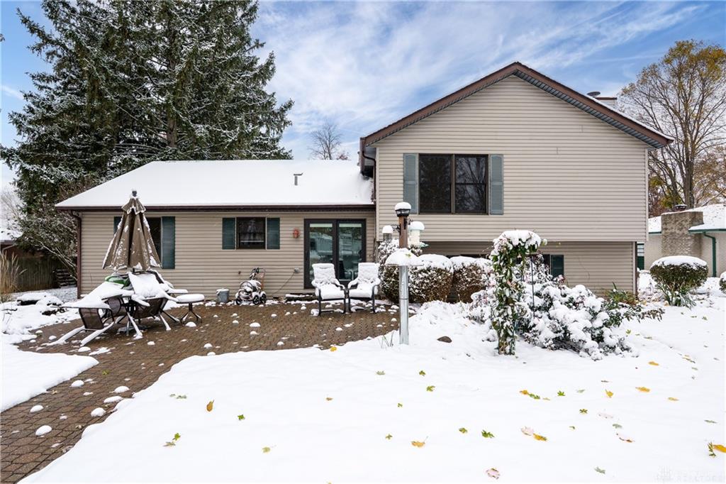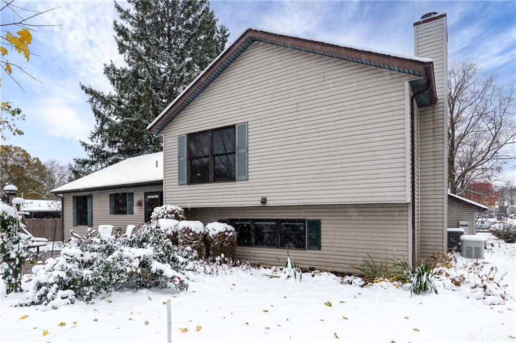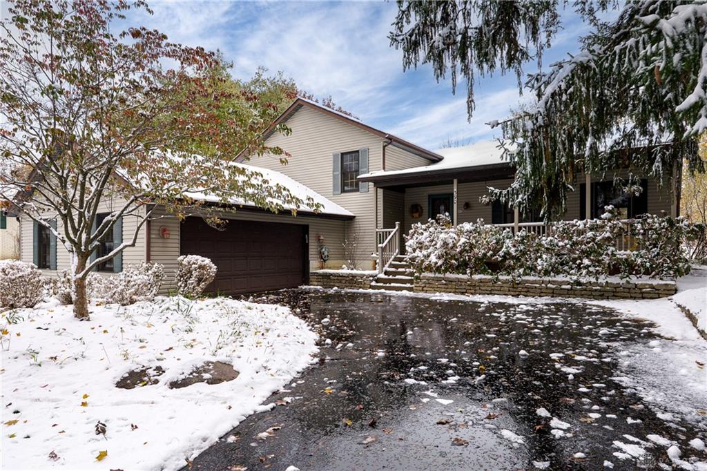 Beavercreek Schools! This 2460 sq. ft. tri level comes with four spacious bedrooms and three full baths. You will love the 28 x 7 covered front porch. Entry with hardwood plank flooring. Large dining room is open to the formal living room. The kitchen comes with a cooktop island, an abundance of cabinetry and counter tops with a granite transformation. All kitchen appliances stay including the convection microwave oven. On the lower level you will find a spacious family room with a ventless gas fireplace, a bedroom, full bath, laundry room and access to the extra wide, extra deep oversized two-car garage with a large, floored overhead storage area with lights. Upper level has three bedrooms and guest bath. Primary bedroom has vaulted ceiling with two skylights, a full bath with a skylight, a shower, heated floors and a walk-in closet. A/C unit new in 2024. Water softener new in 2021. Water heater new in 2019. Roof new in 2011. Leaf filter installed on gutters in 2015. The house comes with a whole house generator. 16x20 Shed. KOI pond. A 16 x 20 "On" ground pool with a deck. The outside hose bibs were replaced in 2015 and are connected to a well for the pool and outside watering needs. Extra parking pad. This house is move-in ready!