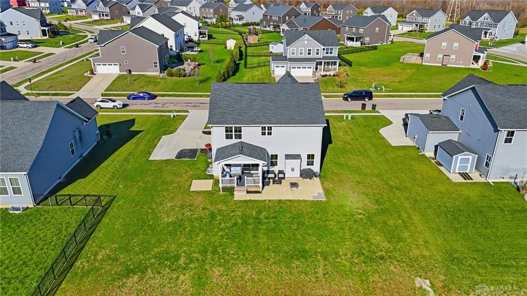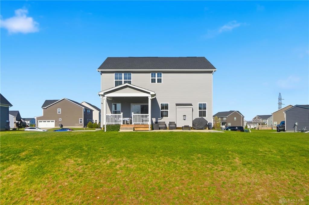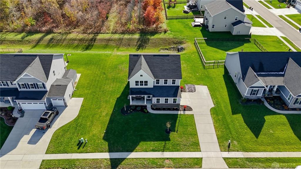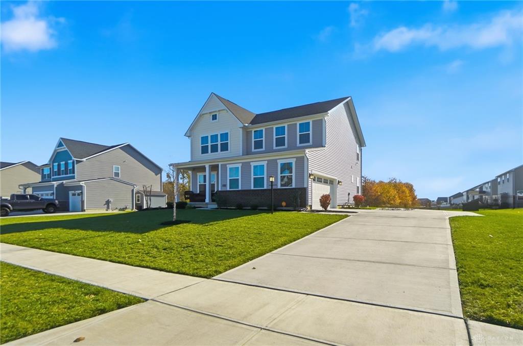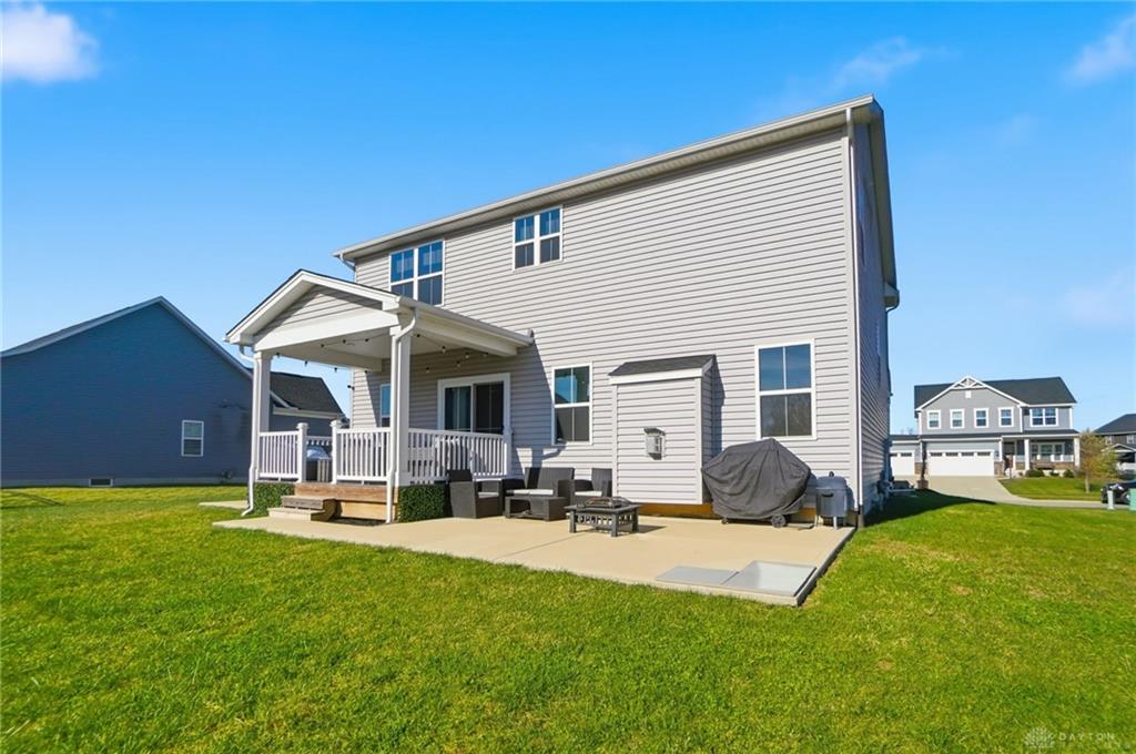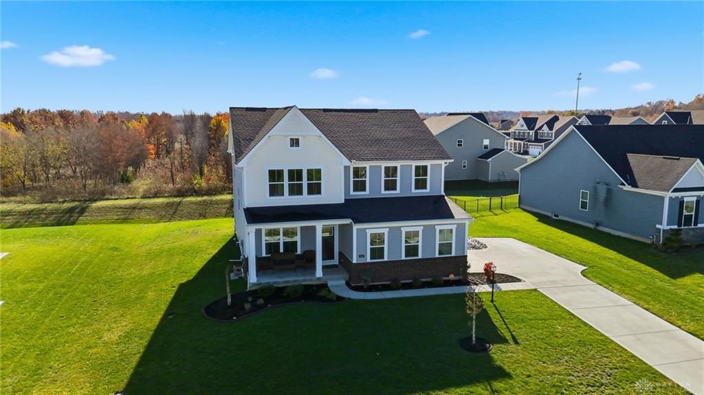 Possible Assumable 3.25% VA Loan Option! In Beavercreek Twp's Nathanial's Grove community, this beautiful 2-Story, true 5-Bedroom/3.5 Bath home has a Finished Basement with Full Bath and Egress Window! Just 3-years new, this home offers nearly 3,200SF of Fin Liv Space and nearly 400SF of coveted Unfinished Storage Space! Such great Curb Appeal here with the well maintained Landscaping, extended Covered Front Porch and desirable 2-Car Side Entry Garage! Beautiful LVP and Carpet throughout the 1st Floor, which features 9' Ceilings. Entry of the home leads you from the Office Area to the Open Floor Plan of the Great Room (with Gas Fireplace), Kitchen (with amazing 10' Island w/Breakfast Bar, Granite Countertops, plenty of Cabinet Space, and Stainless Steel Appliances), and the roomy Breakfast Area (with lots of Natural Light). The Double Door Pantry is located in the Mudroom Area just off the Kitchen, along with the 1st Floor Half Bath. Upstairs, the Primary Bedroom is quite spacious with an amazing Walk-In Closet, and ensuite Bathroom with Double Sinks, generous Walk-In Shower and private Toilet. Three additional Bedrooms and the very convenient Laundry Room, just off the Primary Bedroom, complete the 2nd Floor. In the Basement, there is a Rec Room, the 5th Bedroom with Egress Window and a Full Bath, along with a substantial amount of unfinished Storage Space for all your Storage needs. Out back, there is a wonderful Covered Porch (with LED Post Lights) to enjoy, along with an extended Concrete Patio, a Concrete Pad (for a Storage Shed to be placed) and a Tree-Lined Backyard view! HOA includes a Community Pool, Play Area, Basketball Court, and Walking Trails. Sellers added Ceiling Fans, updated Door Hardware throughout, added the extended Concrete Patio and Concrete Pad in the Back, and the LED Post Lights to the Back Covered Porch. Close to - WPAFB/WSU/675/35/70/Retail/DiningEntertainment! Sellers are offering a Concession for a Backyard Fence at Closing!