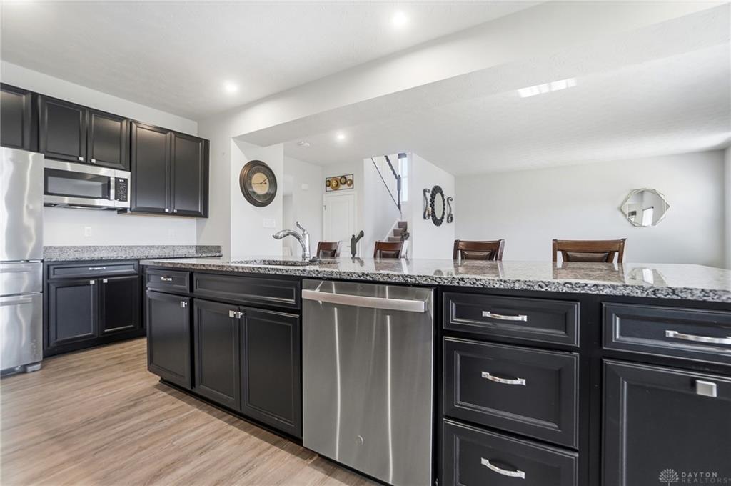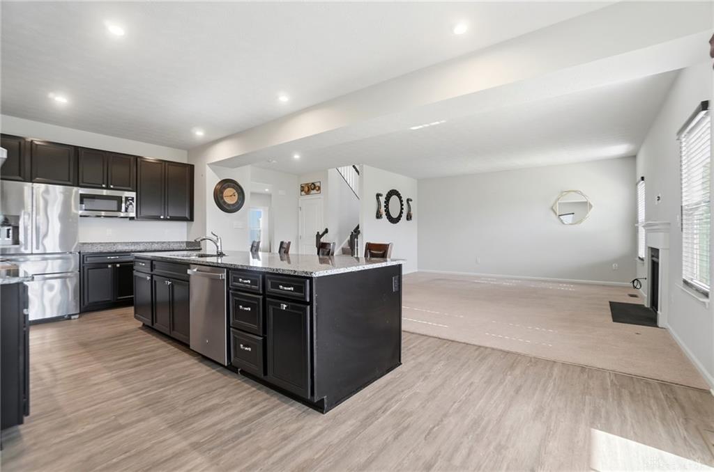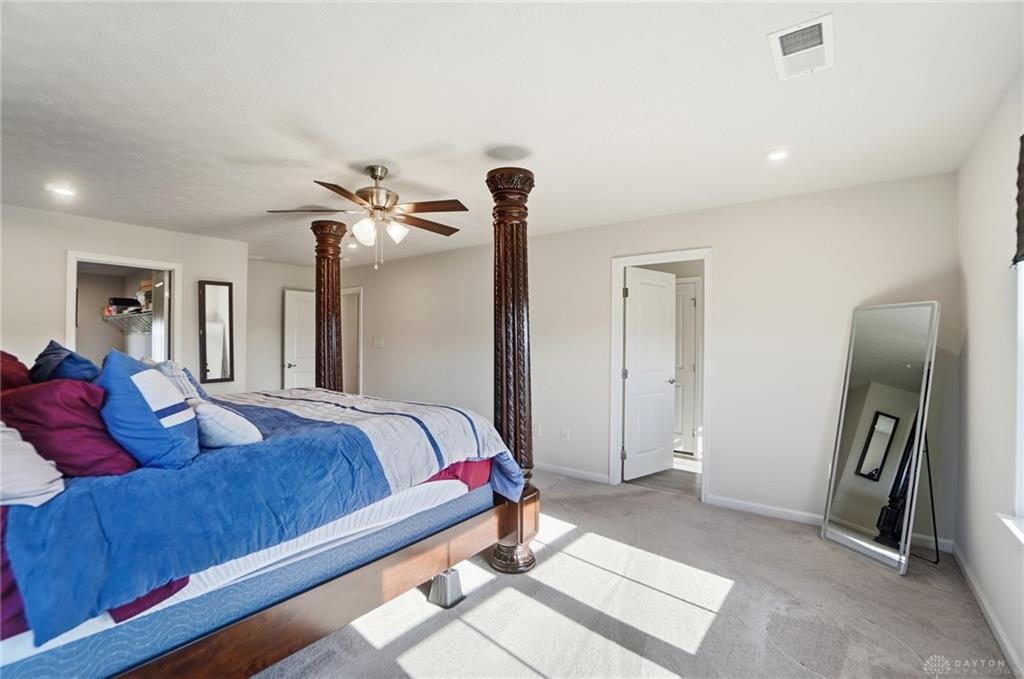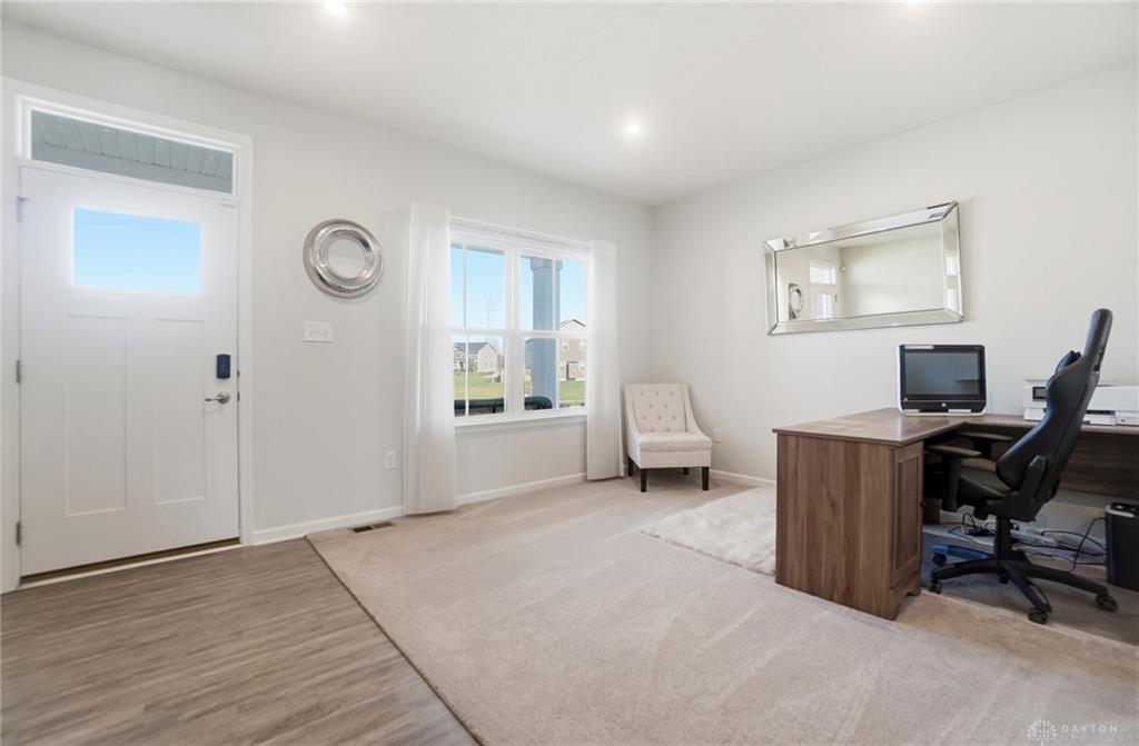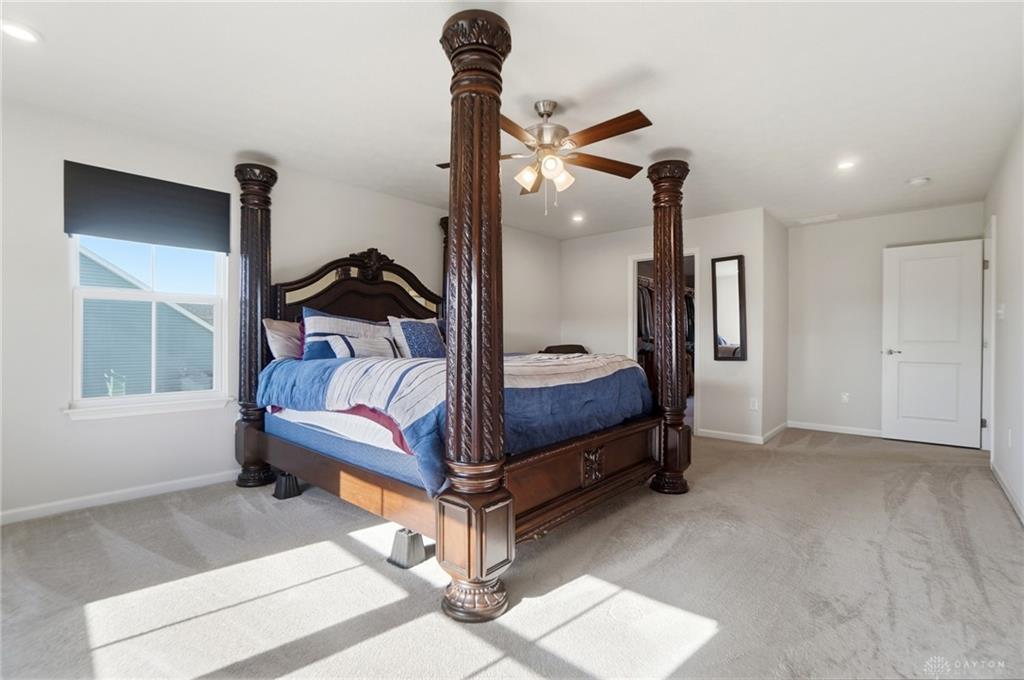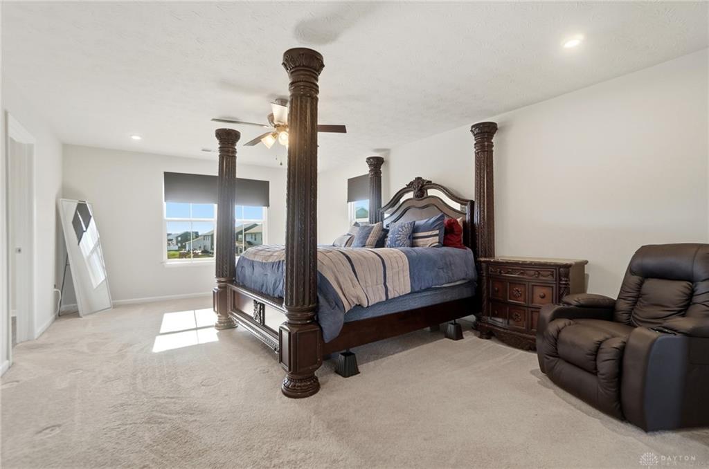 Possible Assumable 3.25% VA Loan Option! In Beavercreek Twp's Nathanial's Grove community, this beautiful 2-Story, true 5-Bedroom/3.5 Bath home has a Finished Basement with Full Bath and Egress Window! Just 3-years new, this home offers nearly 3,200SF of Fin Liv Space and nearly 400SF of coveted Unfinished Storage Space! Such great Curb Appeal here with the well maintained Landscaping, extended Covered Front Porch and desirable 2-Car Side Entry Garage! Beautiful LVP and Carpet throughout the 1st Floor, which features 9' Ceilings. Entry of the home leads you from the Office Area to the Open Floor Plan of the Great Room (with Gas Fireplace), Kitchen (with amazing 10' Island w/Breakfast Bar, Granite Countertops, plenty of Cabinet Space, and Stainless Steel Appliances), and the roomy Breakfast Area (with lots of Natural Light). The Double Door Pantry is located in the Mudroom Area just off the Kitchen, along with the 1st Floor Half Bath. Upstairs, the Primary Bedroom is quite spacious with an amazing Walk-In Closet, and ensuite Bathroom with Double Sinks, generous Walk-In Shower and private Toilet. Three additional Bedrooms and the very convenient Laundry Room, just off the Primary Bedroom, complete the 2nd Floor. In the Basement, there is a Rec Room, the 5th Bedroom with Egress Window and a Full Bath, along with a substantial amount of unfinished Storage Space for all your Storage needs. Out back, there is a wonderful Covered Porch (with LED Post Lights) to enjoy, along with an extended Concrete Patio, a Concrete Pad (for a Storage Shed to be placed) and a Tree-Lined Backyard view! HOA includes a Community Pool, Play Area, Basketball Court, and Walking Trails. Sellers added Ceiling Fans, updated Door Hardware throughout, added the extended Concrete Patio and Concrete Pad in the Back, and the LED Post Lights to the Back Covered Porch. Close to - WPAFB/WSU/675/35/70/Retail/DiningEntertainment! Sellers are offering a Concession for a Backyard Fence at Closing!