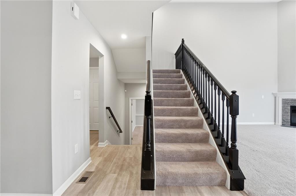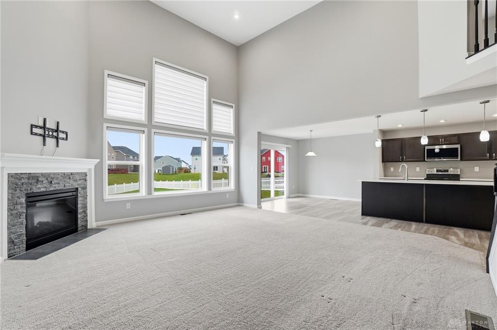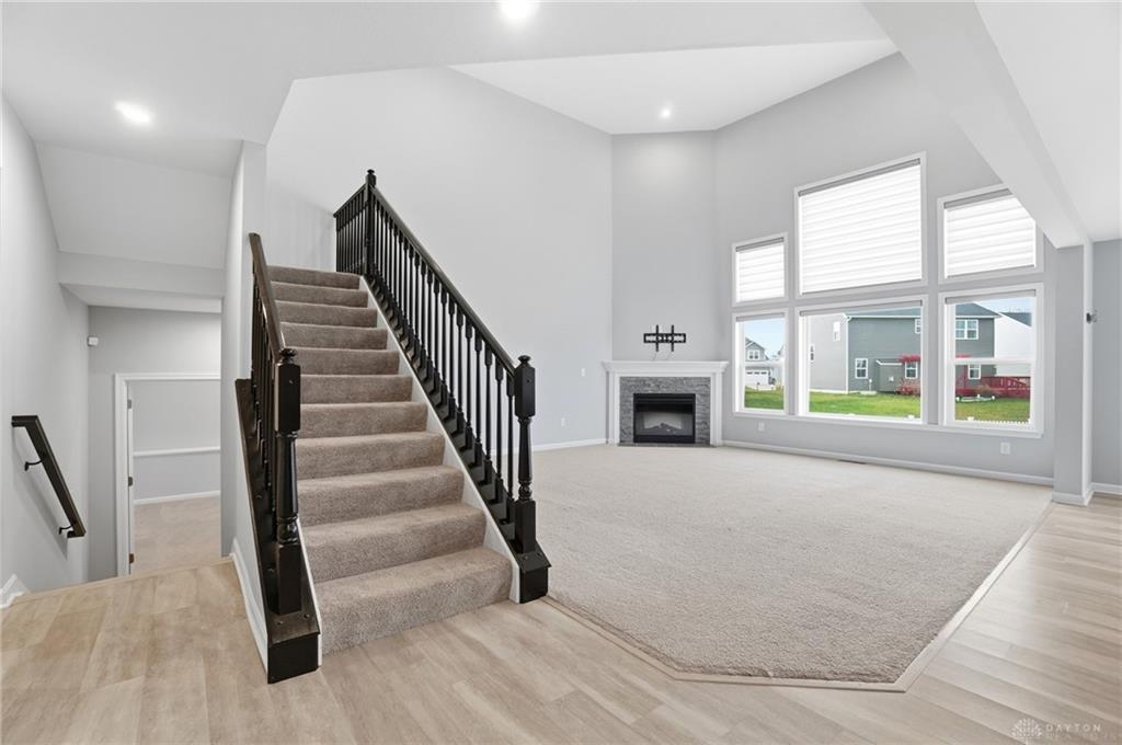 Welcome to the sought-after Carriage Trails community! This Fischer Homes Blair coastal collection plan sits on a large corner lot and features a bright and open layout with a welcoming entry, a private main-level study, and an open-concept kitchen with an island, stone counters, and a pantry that flows seamlessly into the breakfast area and spacious family room with a gas fireplace. The upper level offers four comfortable bedrooms, including a generous primary suite with excellent closet space, along with a convenient hall bath. The full basement provides a flexible rec area, abundant storage, and a rough-in for a future full bath, offering great potential for expansion. Outdoor living is easy with a patio and a covered front porch, and the 2-car garage adds helpful storage. A brand-new water heater, along with included kitchen appliances plus a washer and dryer, ensures added move-in convenience. This well-kept home is ready for its next owner to enjoy.