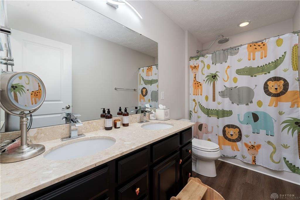 Welcome to 10183 Morgan Grey Court, located in the highly desirable Washington Trace community within the Centerville School District. This spacious home offers more than 4,400 finished square feet with four bedrooms, three and a half bathrooms, generous living spaces, and plenty of room to spread out and enjoy. Inside, the home has been updated from top to bottom. Fresh paint and new carpet run throughout, and the kitchen features granite counters, classic cabinetry, stainless steel appliances, and a new dishwasher. The main level also includes a dedicated office or playroom, a formal dining room, an updated half bath, and an inviting kitchen space that works perfectly for entertaining. Upstairs, you will find all four bedrooms and a large bonus room just off the primary suite. The primary suite has been completely remodeled with a beautiful new bathroom and a custom walk-in closet, and the secondary full bath has been tastefully updated as well. A new HVAC and furnace system with smart thermostats adds comfort and efficiency throughout the year. The finished basement expands the way you live, offering a full bathroom, a recreation area, and custom built-ins for extra storage and organization. There is also unfinished space that provides flexibility for storage or future expansion. It is the ideal extension of the home for gatherings, hobbies, movie nights, and more. Outside, the home sits near the end of a quiet cul de sac and features a fenced yard with new trees, a paver patio, and a fire pit that makes evenings outside easy to enjoy. Washington Trace offers a pool, clubhouse, tennis and basketball courts, and multiple parks, giving you access to a full range of amenities. This is a beautifully updated home in a fantastic location. Come see it and experience it for yourself.