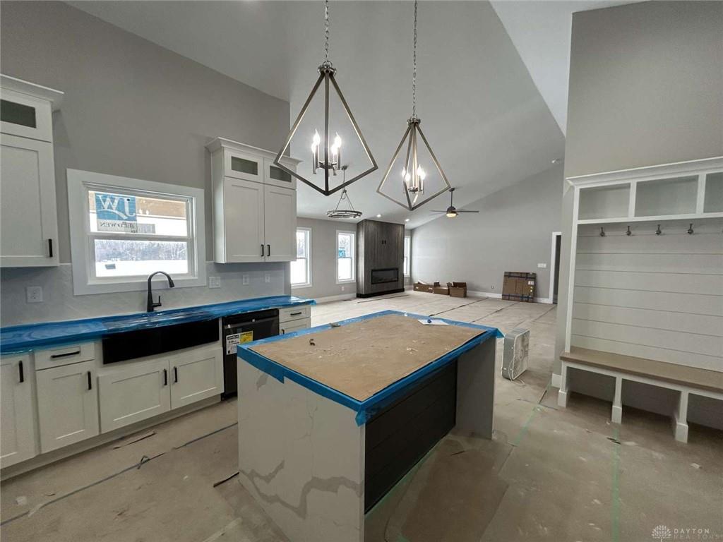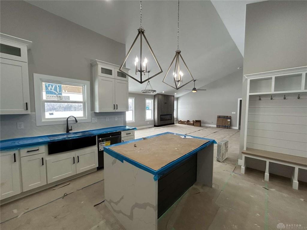 Stunning New Custom Home featuring premium finishes and a spacious 2,800 SF open floor plan. This 4-bed, 3-bath design offers exceptional craftsmanship throughout, including European White Oak hardwood flooring extending through the kitchen, great room, breakfast nook, dining room, entry, hallways, and baths. The gourmet kitchen showcases 48 white shaker cabinets, quartz countertops, subway tile backsplash, and a 5' island counter bar perfect for entertaining. The great room impresses with a cathedral ceiling and an electric linear fireplace with wood panel surround. The luxurious primary suite includes a wood tray ceiling, walk-in closet, and a large tile shower. Oversized white trim, baseboards, and 2-panel plank doors add a clean, modern aesthetic throughout the home. The partially finished basement features a 9' wet bar, 4th bedroom, and additional living space. A 4-car garage provides ample storage and parking. Outdoor living is enhanced by a 22' x 10' covered concrete patio.