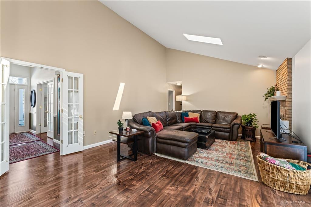 Welcome to this spacious brick ranch located in highly desired Miami Township, offering an open, functional layout and a three-car side-entry garage on a beautiful lot with mature trees. Ideally situated just minutes from shopping and restaurants, this well-maintained, one-owner home provides 2,432 square feet of comfortable living space with classic details throughout, including crown molding, bow windows, and French doors. A welcoming center-hall foyer is flanked by formal living and dining rooms, offering flexibility for entertaining or everyday living. The large family room features a brick fireplace, vaulted ceiling, and four skylights, creating a bright and inviting space that flows into the breakfast area and kitchen. The kitchen includes white cabinetry, Corian countertops, a center island, and a pantry with ample storage and workspace. A rarely found 13×12 laundry room adds everyday convenience. The primary bedroom includes a walk-in closet plus an additional double closet, dual-sink vanity, whirlpool tub, and newer ceramic tile shower. French doors lead from the bedroom to a 16×10 screened porch, providing a relaxing outdoor retreat. Two additional generously sized bedrooms offer flexibility for guests or a hobby space. Outdoor living continues with a large patio, perfect for outdoor entertaining. Make this lovely home yours today.