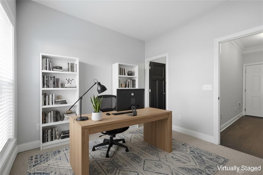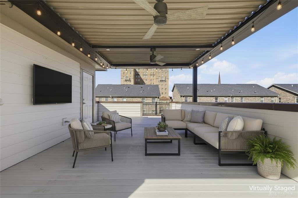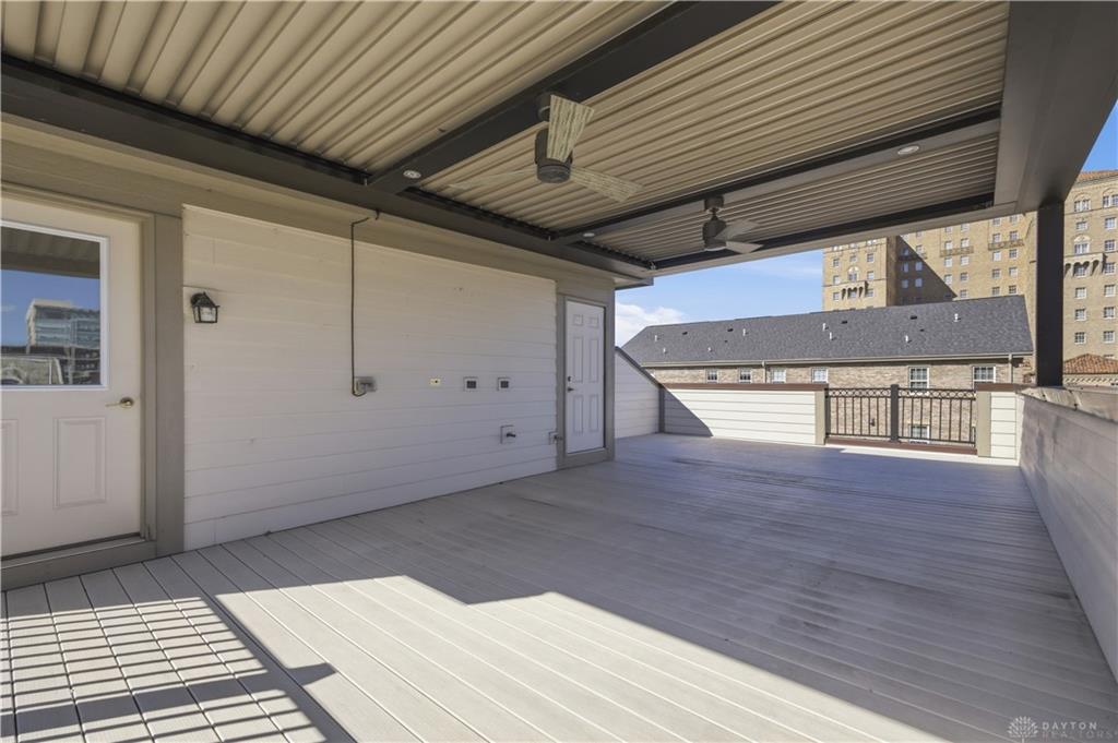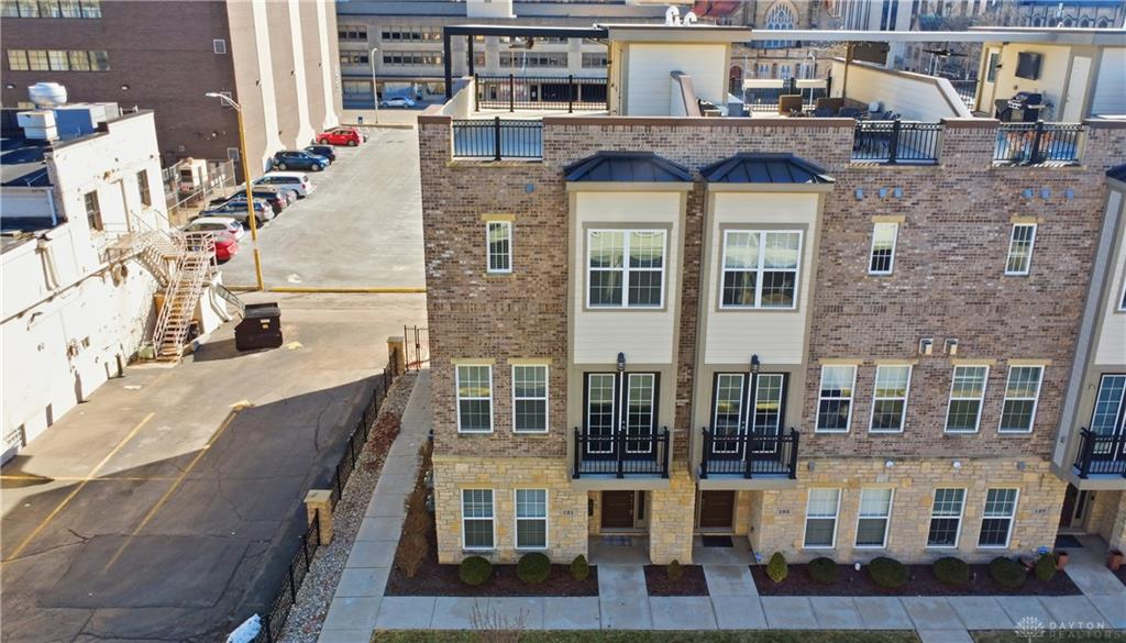 Rare end-unit executive townhome in Monument Walk with a show-stopping private rooftop terrace and tax abated through 2034. Three full levels with the space and flow you want, including a guest suite with its own bath on the entry level and a bright open-concept main living level built for entertaining. The kitchen brings the wow with a large island, walk-in pantry, high-end Bosch appliances, and clean modern finishes, while the living room anchors the home with a cozy fireplace, custom built-ins, tray/coffered ceilings, and statement lighting. Multiple outdoor spaces let you live inside-out with a Juliet balcony and second-level deck, and the ultimate bonus awaits up top: 500+ sq ft of rooftop decking with gas and water connections and extra storage, perfect for sunset dinners, game-day hosting, and skyline nights. Two-car heated garage with water, right in the mix downtown near Riverscape, the Schuster Center, Day Air Ballpark, restaurants, coffee spots, and nightlife.
