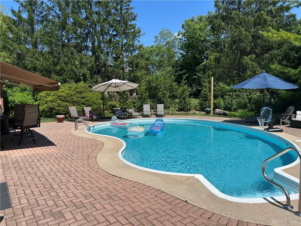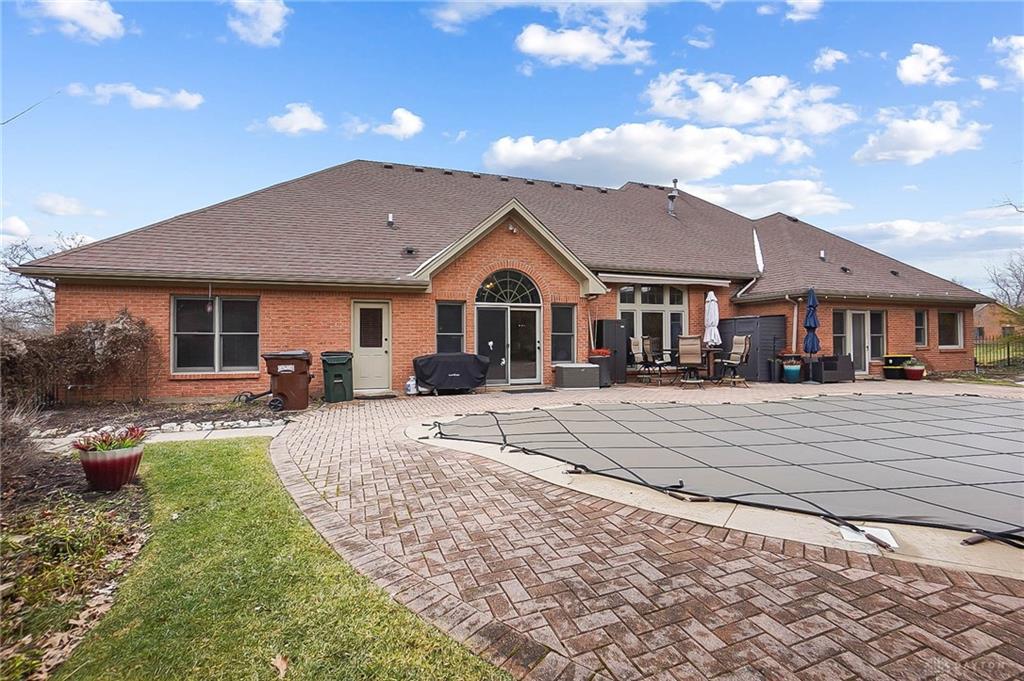 Absolutely stunning custom ranch in sought-after Waterbury Woods! Timeless finishes and a floor plan designed for elegance and comfort make this home an absolute must-see! The home is spacious and open with rich moldings and trim, beautiful hardwood floors and floor-to-ceiling windows bringing in tons of natural light. The living room features custom built-ins, a gas fireplace and French doors to the paver patio and custom inground pool. The large kitchen is the perfect gathering place with spacious island, granite counters, stainless appliances, coffee bar and morning room with views of the pool. Off the kitchen is a lovely den, perfect for a home office, guest room or 4th bedroom. A half bathroom offers convenient access from the pool. The primary bedroom suite is fabulous with two large walk-in closets, modern shower, dual vanities and access to the pool, perfect for summer morning coffee. The laundry room is conveniently located near all three bedrooms. Welcome to outdoor living at its finest with a beautiful Buckeye inground pool surrounded by paver patio and café lighting. Landscape lighting illuminates the home beautifully, and the irrigation system means no more moving a sprinkler around. The three-car garage is spacious and offers plenty of storage. Recent updates include painting throughout, beautifully trimmed dining room, led lighting throughout and new pool pump and heater. Located in Centerville Schools, this Washington Township beauty will not last long!