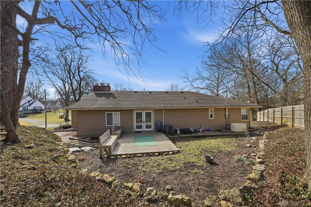 The house is listed by auditor as 2 bedroom but there are 3 bedrooms with closets. It is a flexible floor plan it could be bedroom or perhaps a den, you decide! Set among the rolling hills found throughout many established Springfield neighborhoods, this beautifully maintained 1948 Hillside Ranch blends character with thoughtful modern updates. Built during the post-WWII housing boom, this home reflects the era's shift toward spacious ranch living while offering lovely neighborhood views. Step inside to an inviting open floor plan highlighted by hardwood floors, recessed lighting, and a generous living room anchored by a decorative fireplace. Large newer windows with remote-controlled blinds fill the space with natural light and warmth. Just off the dining area, a flexible room can serve as a bedroom, home office, or creative space--tailored to your needs. French doors open to a fenced backyard featuring a 14×16 deck. An island with a built-in wine fridge creates a connection between the dining area and the fully remodeled kitchen, where thoughtful design meets everyday functionality. Enjoy stone countertops, stainless steel appliances, a convection range, deep sink, soft-close drawers, and abundant cabinetry with convenient roll-out storage. The primary suite is complete with a beautifully remodeled bath featuring a step-in shower, updated cabinetry and mirrors. The room also has built-in shelving, and a walk-in closet. The hall bath has also been tastefully renovated. Additional highlights include a home security system, sprinkler system, Generac generator, chair lift from the garage to the kitchen, basement workshop space, and a 10×8 shelved storage room. This distinctive home combines historic charm, scenic surroundings, and modern convenience--an exceptional opportunity in a desirable setting.