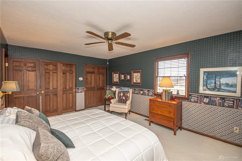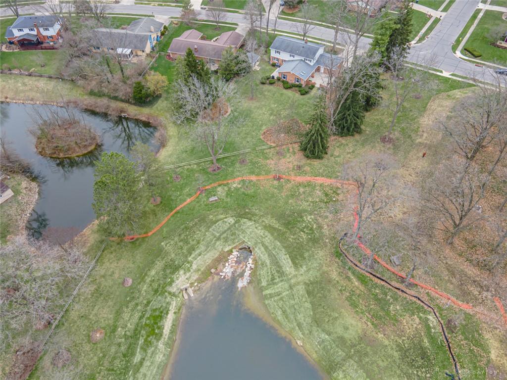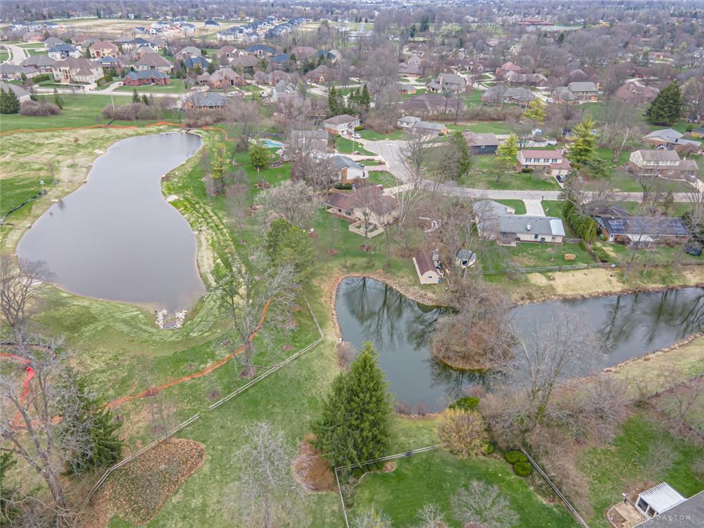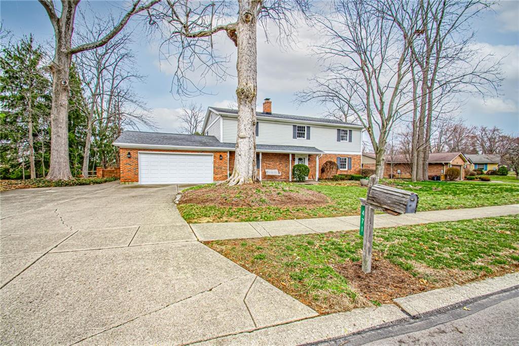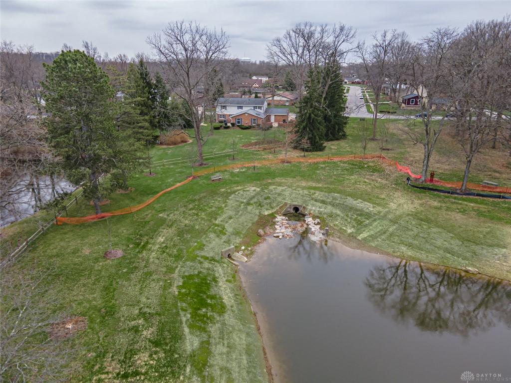 Discover this spacious two-story brick home tucked within a quiet, desirable neighborhood in the Centerville City School District and directly adjacent to Rosewood Park. Offering nearly 3,248 square feet with 5 bedrooms and 2.5 baths, this home provides exceptional space for everyday living and entertaining. A welcoming front porch greets you before stepping inside to an entry with wood floor. The living and dining rooms offer comfortable spaces for gatherings, while the cozy family room features a fireplace and built-in shelves, creating a warm place to relax. The kitchen includes granite counters, a planning desk, and a breakfast room, with the formal dining room nearby for larger occasions. The expansive rec room addition is a true highlight, complete with a wet bar, propane fireplace, and two walkouts leading to the patios and backyard, making it ideal for hosting and everyday enjoyment. From here, enjoy peaceful views of two lakes — one private and one part of the city park, which was recently thoughtfully updated. Upstairs, the primary suite offers his and her closets, built-in desks, a sitting area with lake views, and an attached bath, while the additional bedrooms are generously sized and share an updated hall bath. Set on just under a half-acre with mature trees and manicured landscaping, the backyard and patio provide a calm setting overlooking the lakes. Solidly built and well cared for, this home offers abundant room with many closets, a functional layout, and a beautiful setting ready for its next owners.