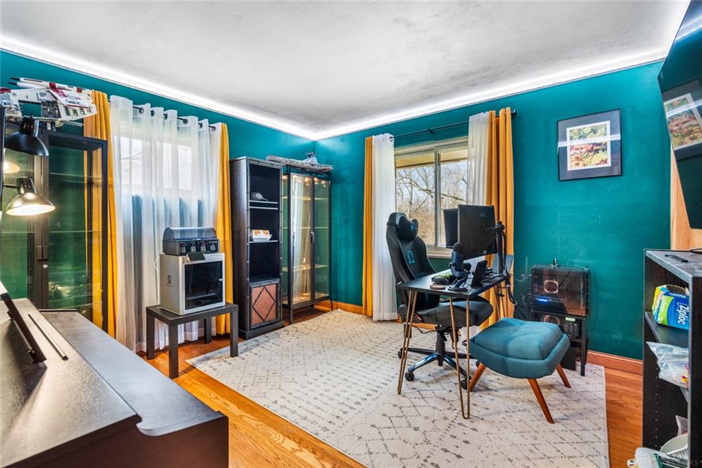 Welcome to “Warm and Cheerful Centerville.” This charming brick ranch offers a peaceful cul-de-sac setting on an expansive .63-acre lot, providing space, privacy, and a beautiful tree-lined backdrop while still being conveniently located near the vibrant Heart of Centerville district. Inside, the home blends classic character with thoughtful updates. Original wood floors add warmth throughout the main living areas, while the inviting living room features a fireplace with built-in bookshelves and large windows overlooking the backyard. The kitchen offers generous counter space, newer appliances, and space for a dining table. Both full bathrooms have been updated, complementing the home’s traditional layout while providing modern touches. The home includes 3 bedrooms, 2 full baths, and an oversized two-car garage with overhead storage. Outdoor spaces are designed for relaxing and gathering. Enjoy the freshly sealed deck, a two-person swing, fire pit, and a charming faux cabin-style storage shed within the spacious yard. Additional living space can be found in the walkout basement, featuring a cozy brick fireplace and flexible areas for recreation, hobbies, or workspace, along with unfinished space ideal for storage or a workshop. Located near Magsig Middle School and just minutes from the expanding Heart of Centerville district, this home provides convenient access to local restaurants, walking paths, shopping, and community events, while remaining tucked away from the main corridor for added privacy.