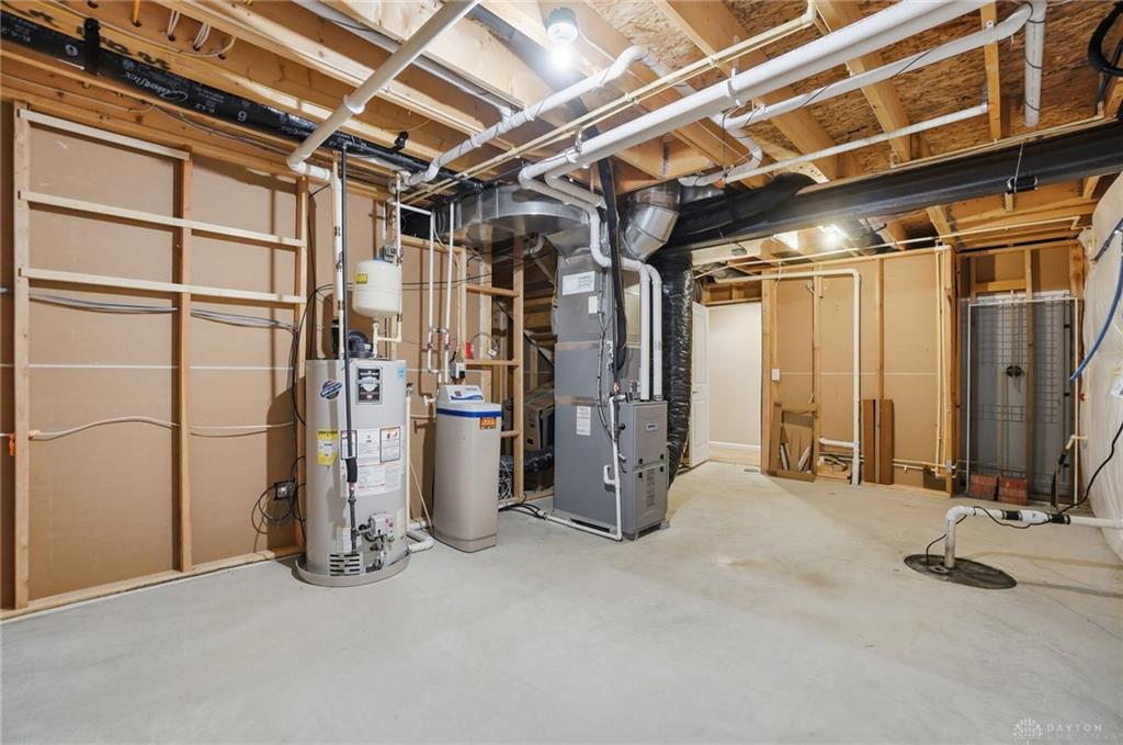 Welcome to this beautifully maintained, move-in ready home nestled on a spacious wooded lot in a quiet cul-de-sac, offering privacy, upgrades, and functional luxury living. Step inside a 16-foot entryway with spindle railing and expansive windows, enhanced by a 2-ft extension bump-out that fills the home with natural light. The first floor features rich wood flooring throughout, creating warmth and continuity. The heart of the home is a gourmet kitchen with granite countertops, upgraded cabinetry with pull-out sliders, pantry storage, and a full appliance package including electric range, refrigerator, microwave, dishwasher, and garbage disposal. The adjacent breakfast nook boasts a cathedral ceiling, while the formal dining room features a tray ceiling, bay window, and custom built-in (included). Relax in the inviting living space centered around a stone gas fireplace with remote, or step outside to your private oasis—complete with a deck, paver patio, fire pit with wired lighting, retaining wall landscaping, and irrigation system. The primary suite offers a true retreat with cathedral ceilings, sitting area, walk-in closet, and a spa-inspired bath featuring a jetted soaking tub, double-head walk-in shower, and dual vanity. Secondary bedrooms are generously sized, including one with a private full bathroom and double-door closet. The fully finished basement includes large egress windows, a full bath, surround sound system, bar with sink and water filtration, built-in shelving, and ample storage space—perfect for entertaining or multi-generational living. Enjoy a laundry/mudroom with tile flooring and built-in shelving, central vacuum system, humidifier, water softener (owned), and added electrical panel for modern convenience. The garage features MyQ smart opener, cubby storage, and included freezer, while the exterior includes drainage tile system (installed by city), landscaped yard with lilac bushes, and a fully fenced/paver-enhanced outdoor space.