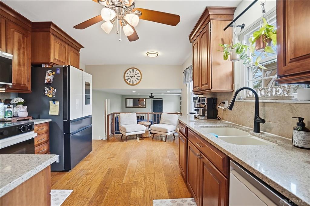Don't miss a wonderful opportunity to own this stunning 4 bedroom, 3 FULL bath home in the highly desirable Village South neighborhood! Updated kitchen and baths, refinished original hardwood floors, huge yard that backs up to the park! Gorgeous gazebo on freshly finished deck looks out to wonderful green space with no rear neighbors! Over $20,000 in improvements in the last 2 years for you to relax and enjoy. Soooo many extras, some new kitchen appliances, remodeled lower level bath, new carpeting and fresh paint...nothing to do but move right in! You will love the closet organizers, new pantry doors, and new front door that welcomes you inside! Fourth bedroom and third full bath in lower level are perfect for family members including either teenagers or in-laws. And so close to shopping, highway and more! Near to I675, WPAFB, DLM, The Greene, everything is just minutes away. And award winning Centerville schools.
