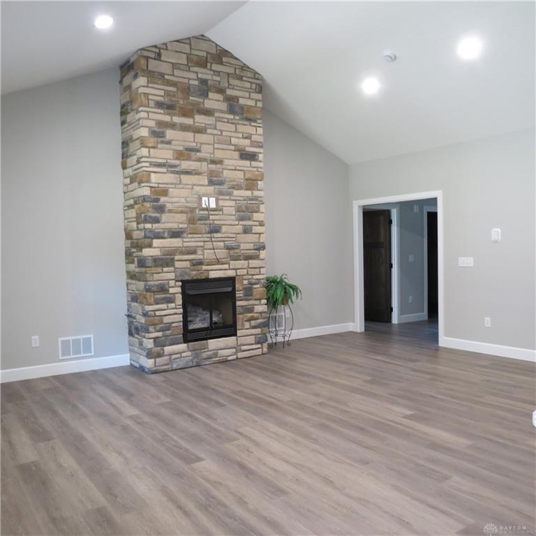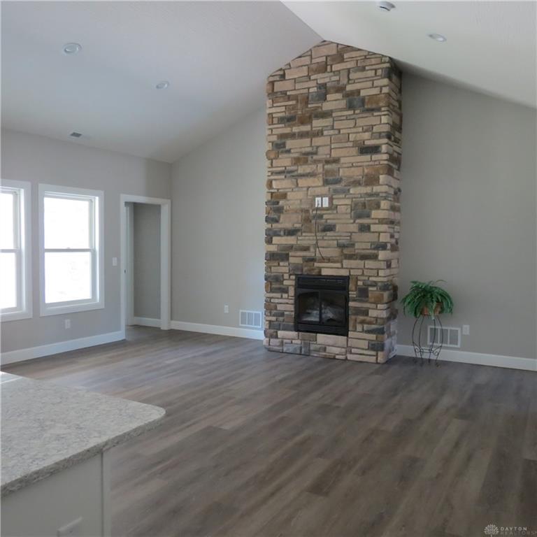 NO HOA! Finished and ready for YOU! 3 bedrooms and 2 full baths offering 1,648 sq. ft. of living area plus a 525 sq. ft. 2 vehicle garage with attic storage above. A covered front porch opens to a comfortable great room with a vaulted ceiling and a gas fireplace with a stone frame. The open and fully equipped kitchen features quartz countertops on the island and on the work spaces. The open design is a perfect presentation of the great room and opens to the dining area and has access to the covered open porch to the back. The owner’s suite is private and has an ample walk-in closet and a full bath featuring a walk-in shower. The other 2 bedrooms are on the other side of the home and are separated by a full tub bath and with each having double closets. Solid poplar doors and waterproof LVP flooring are in place throughout the home.