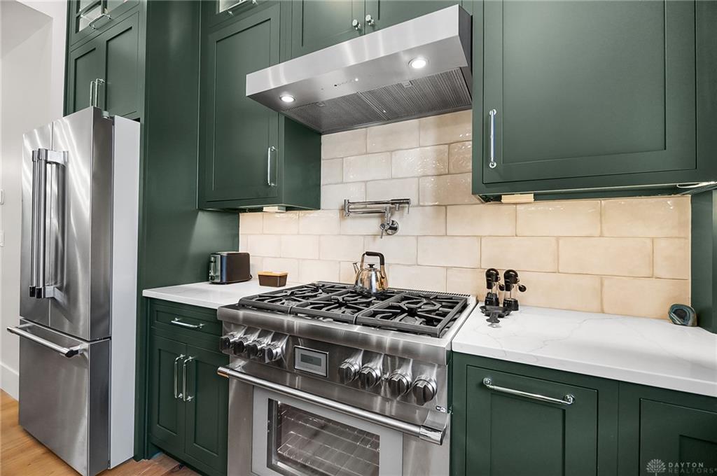 Completed in 2024 and One of the very last Unlimited Platinum 15-year Tax Abated LEED home. Est $25k/year in prop tax savings! Located in Mt Adams, this 4-fin-level custom home by Ashford Homes has an integral 2-car gar w/an internal elec car charger. Enjoy 10' 1st floor ceilings with an open floorplan design. The designer kitchen has top-shelf Amish handcrafted & hand painted Grabill cabinets, capped off w/high-end Thermadore appl. Covered deck leading to the backyard. Enjoy the gathering room w/a 60''modern linear gas FP. Put your plants out on the adj South facing front balcony to enhance your curb appeal. The 2nd flr offers 3 spacious bedrooms w/custom closet organizers. The primary bedroom has a modern FP & a designer influenced bath with built-in cabinets & wainscoting ceramic tile walls. The adjoining laundry room incl an LG Studio W&D. The top floor offers a lg rec rm. wetbar/beverage cooler. French sliding full height doors that lead you to the rooftop deck w/gas line.