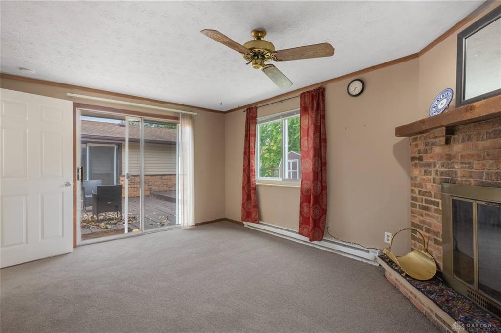 Get ready to fall in love with this spacious ranch home in West Carrollton SD! This home has been refreshed with new carpet, fresh paint throughout, new interior doors, new range hood vent, and fresh landscaping! This home features 3 bedrooms, 2 full baths, large living room, family room with a fireplace, kitchen that is open to dining area, and an oversized one car garage. Get ready to relax in the owner's suite that people often dream of with a large primary bedroom with beautifully updated en suite. Or enjoy the outdoors on the large back wood patio/deck that overlooks the spacious fenced in backyard. This place is in no short of storage with 2 sheds and overhead storage in the garage. Don't miss your chance to call this place home!