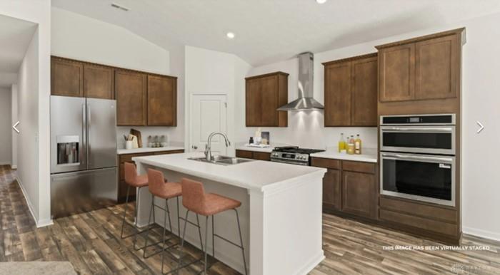 This Move-in Ready Chestnut Model by Arbor Homes is a beautifully designed 3-bedroom, 2-bath ranch offering 1,802 square feet of stylish, functional living space. At the heart of the home is a chef's dream, gourmet, kitchen, featuring 42", rich, brown-stained cabinets with soft-close doors, white laminate countertops, a gorgeous stainless steel appliance package which includes a range with stunning range hood, dishwasher, and a slide-in range/microwave combo offering a perfect blend of convenience and sophistication. 9' ceilings throughout the home with a vaulted ceiling over the shared kitchen, great room area give this home a very open and airy feel, ideal for both relaxing and entertaining. The primary suite provides a large peaceful retreat with plenty of room for king-sized furniture and an attached bathroom featuring a 35" Pullman height vanity with double sinks, a 60" walk-in shower and a large walk-in closet. With thoughtful design and quality finishes throughout, this home brings comfortable, one-story living to life.