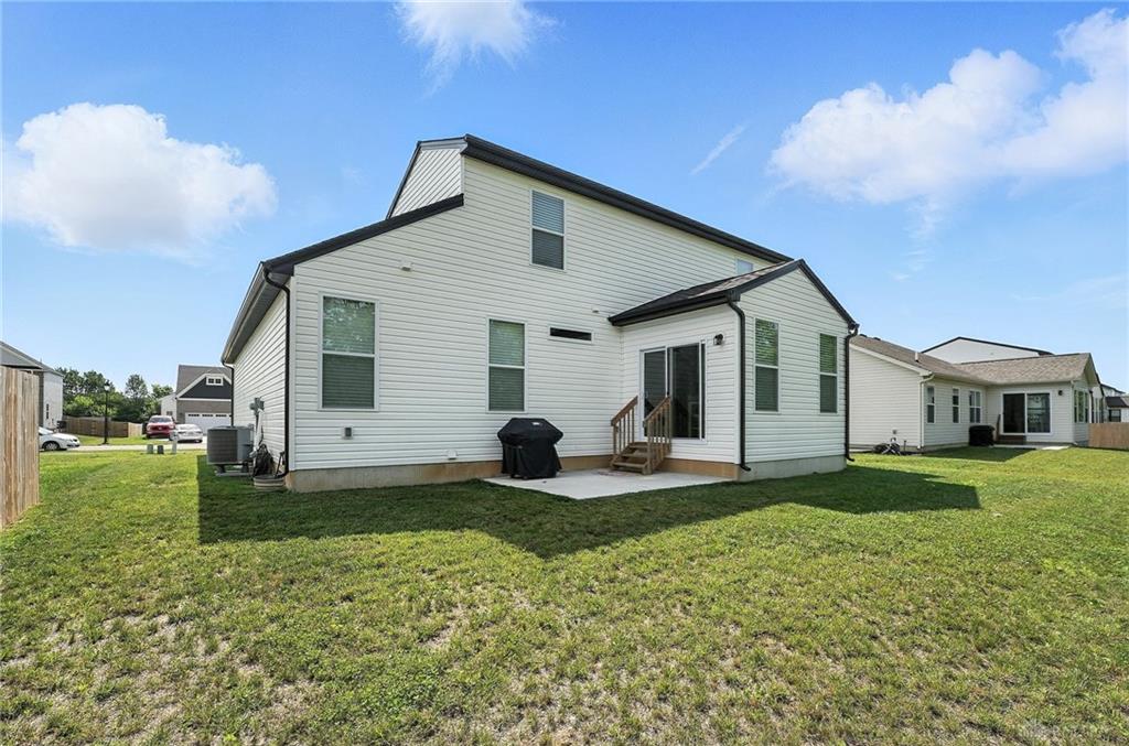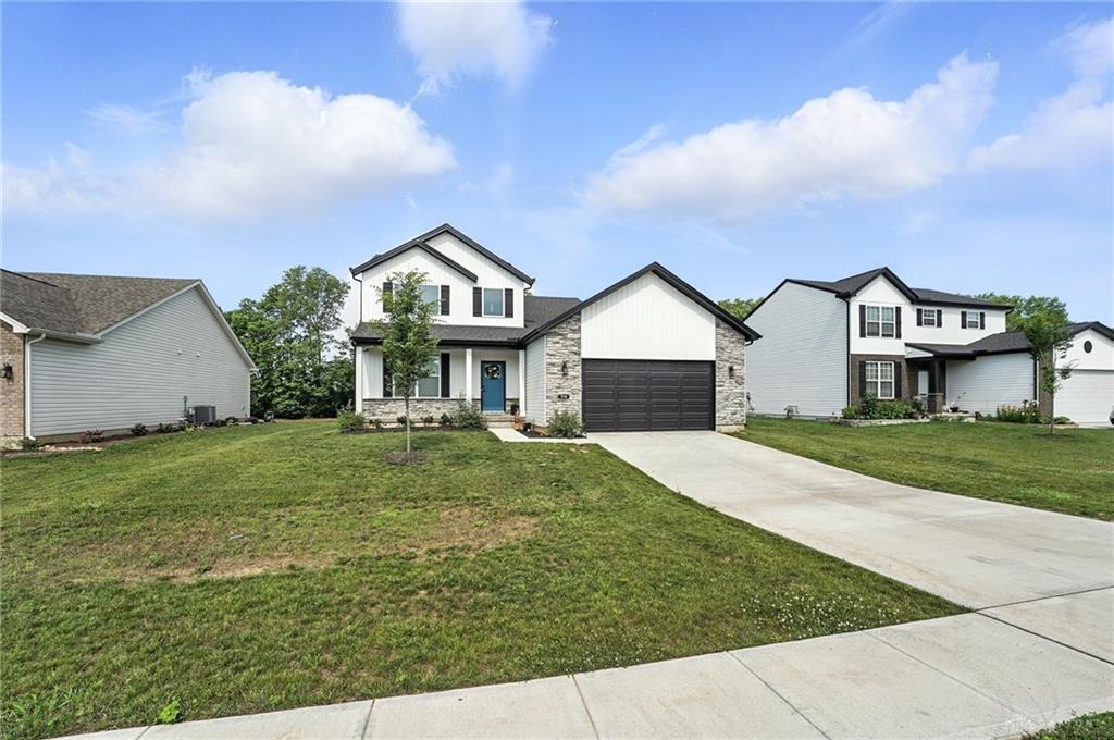 Must see! Beautiful custom-built Todd Homes (2023) home in Madison Manor - still smells brand new! Only lived in for 16 months, this move-in-ready home offers the perks of new construction without the wait.Open-concept layout with durable LVT flooring, a stunning 2-story great room filled with natural light, and a dream kitchen featuring a 9-ft island, quartz countertops, 42'' soft-close shaker cabinets with crown molding, stainless steel appliances, and Smart Home features. Bright sunroom off the kitchen is perfect for dining or relaxing. First-floor primary suite offers a walk-in closet and spa-like bath with double vanity and tiled shower with bench. Upstairs: two spacious bedrooms, full bath, and great closet space. Full basement with rough-in for bath, egress window, and 10-year transferable waterproofing/structural warranty. Custom blinds, water softener, and a 24x23 garage w/epoxy floor. Enjoy the front porch, backyard patio and NO HOA!