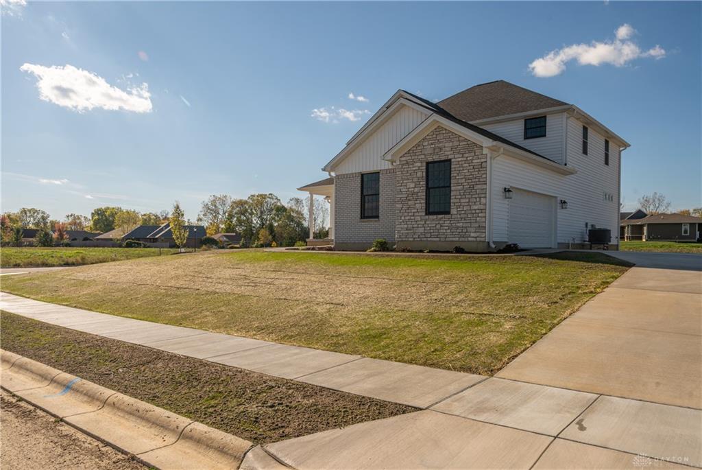Welcome to Kingsgate Commons! This stunning New Construction 4-bed, 2.5-bath home on an elevated corner cul-de-sac lot offers 2,700 sq ft of inspired living. Step into a dramatic two-story foyer filled with natural light. Gather in the spacious family room with soaring cathedral ceilings or cook in a dream kitchen boasting a $15K Thermador appliance package, huge quartz island and counters, and sunny dining area. Retreat to the serene primary suite with a spa-like bath—rain shower, soaking tub, and walk-in closet. Upstairs, enjoy a bright loft, generous bedrooms, and modern bath with double sinks. The roomy composite deck will be the site for barbecues with friends. The full basement is ready for your vision with a 3rd bath rough-in. Brick, stone, and siding exterior, oversized side-load garage, and a peaceful yet convenient location near shopping and dining complete the picture. Schedule your private tour today and discover the lifestyle you’ve been waiting for!