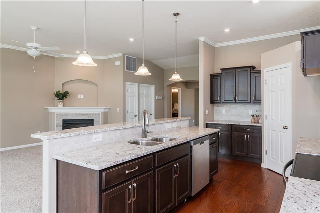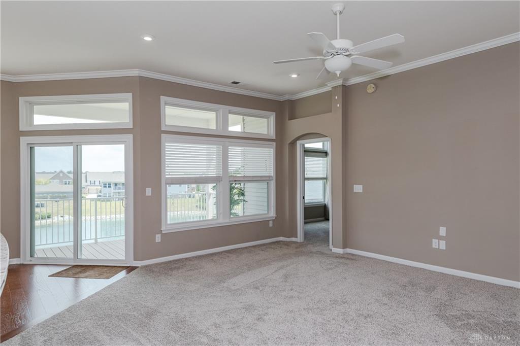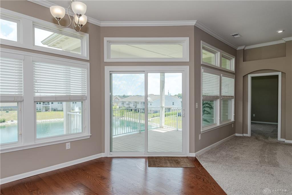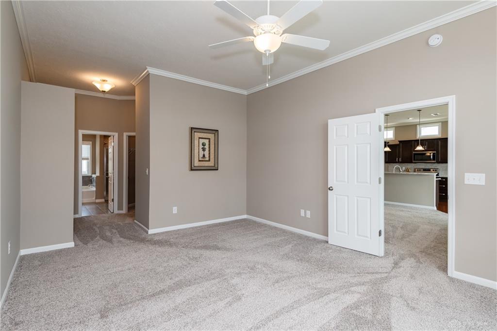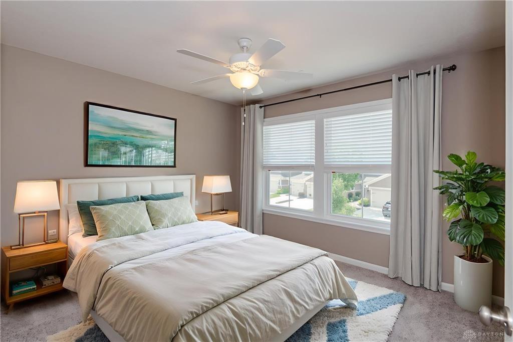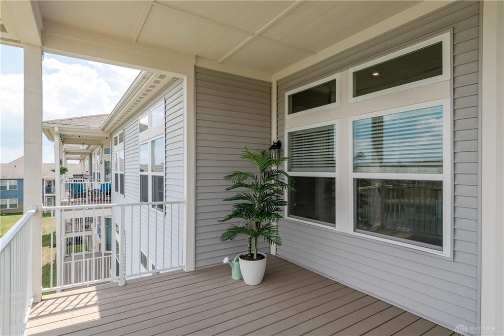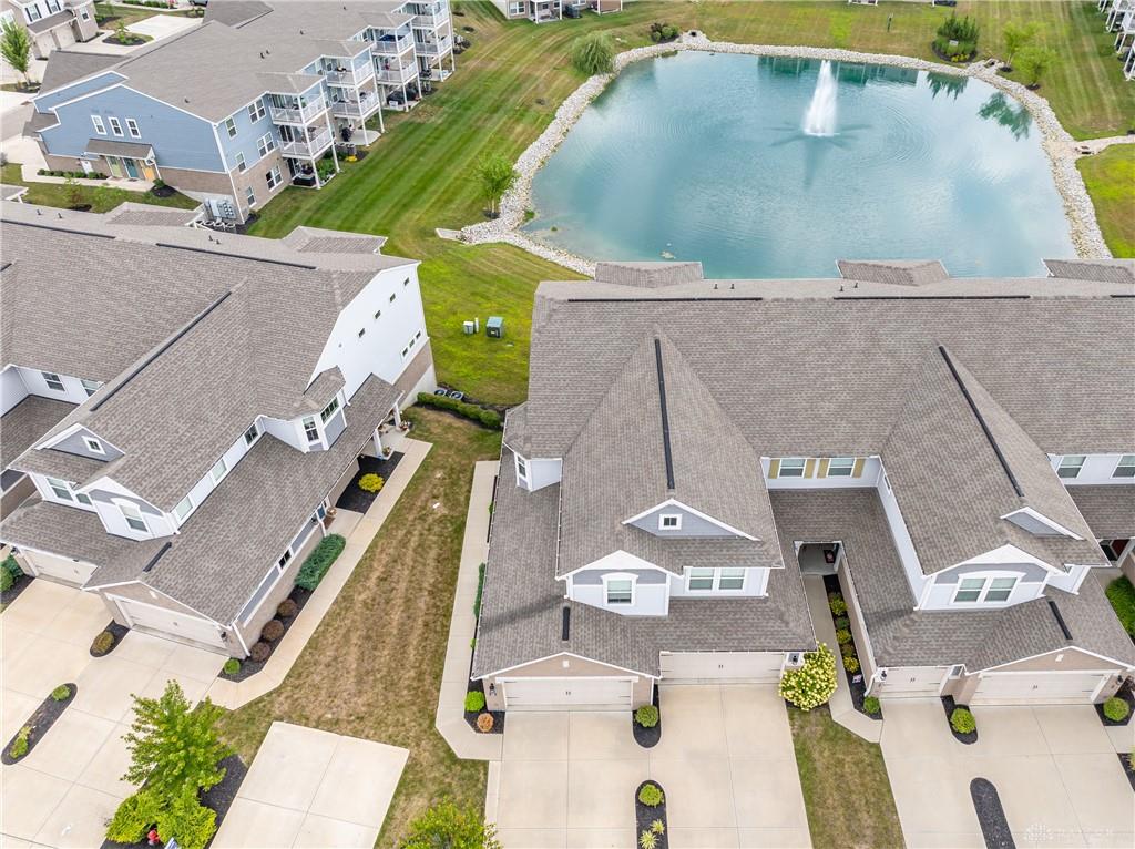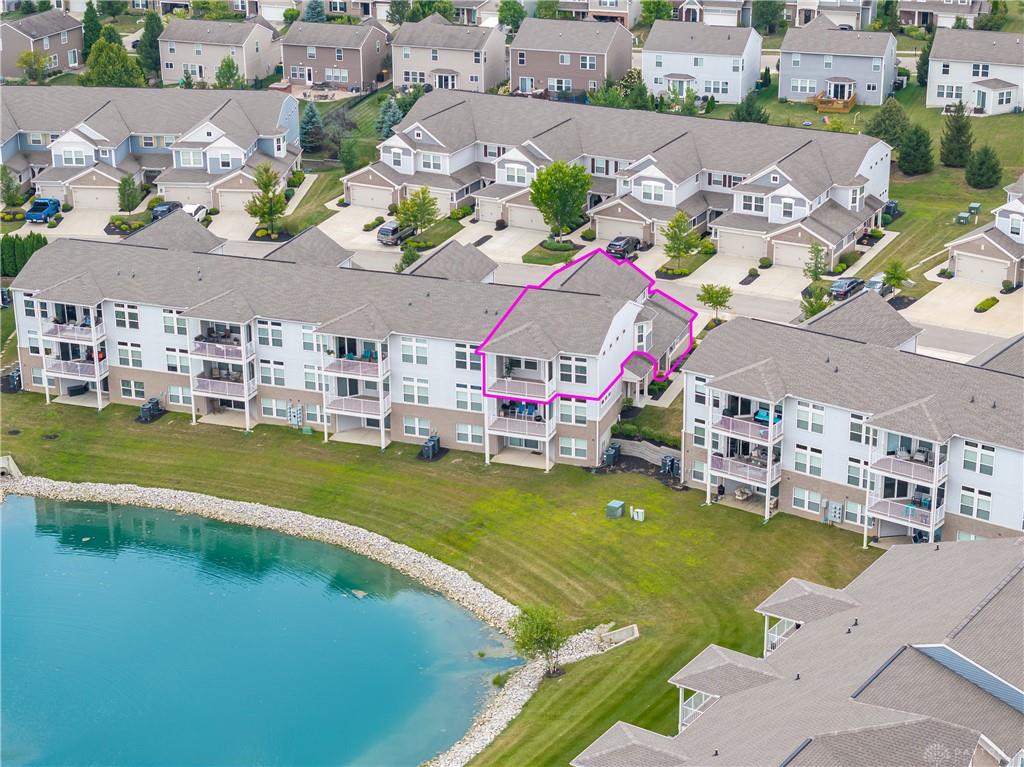 Welcome home to Waterside at Settlers Walk-a bright stylish condo combining upscale design with $40,000 in upgrades & carefree living. Built in 2019, this elegant end-unit offers nearly 2,000 sq. ft. with 2/3 bdrms., 2.5 baths, plus flexible study or dining room all on one level, in one of Springboro's sought-after neighborhoods. Condo offers wide-open layout filled w/natural light, 10-ft ceilings & 26 windows. The great rm is open to the kitchen, offering granite countertop, bar/coffee area, maple cabinetry w/under-cabinet lighting, stainless steel appliances, hardwood floors & breakfast area that also leads to a 16 ft covered deck overlooking pond. The perfect spot to unwind or entertain. A spacious primary suite offers two walk-in closets w/raised vanity, tile shower, & soaking tub. The second bdrm/guest suite is ideally separated for comfort w/a full bath. A 3rd room is bdrm or den. French doors open to yet another room that can serve as a formal dining, office, or creative retreat. Two car attached garage. Low real estate taxes. Enjoy low-maintenance living w/HOA services that include landscaping, snow removal & exterior maintenance-plus two swimming pools, fitness center, & clubhouse. Located near trails, shopping, dining & highway access. This home combines the best of comfort, convenience & community. Immediate occupancy available-move right in and start living your Settlers Walk lifestyle.