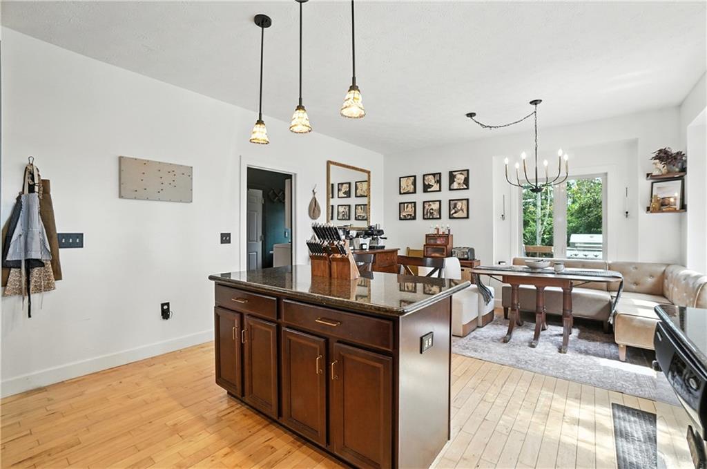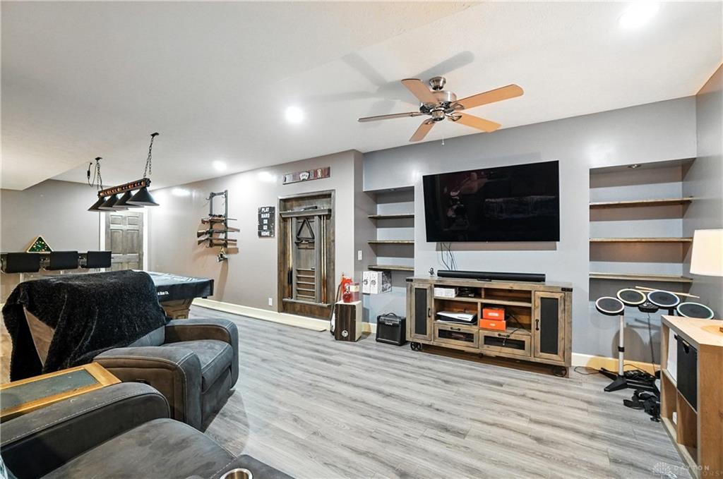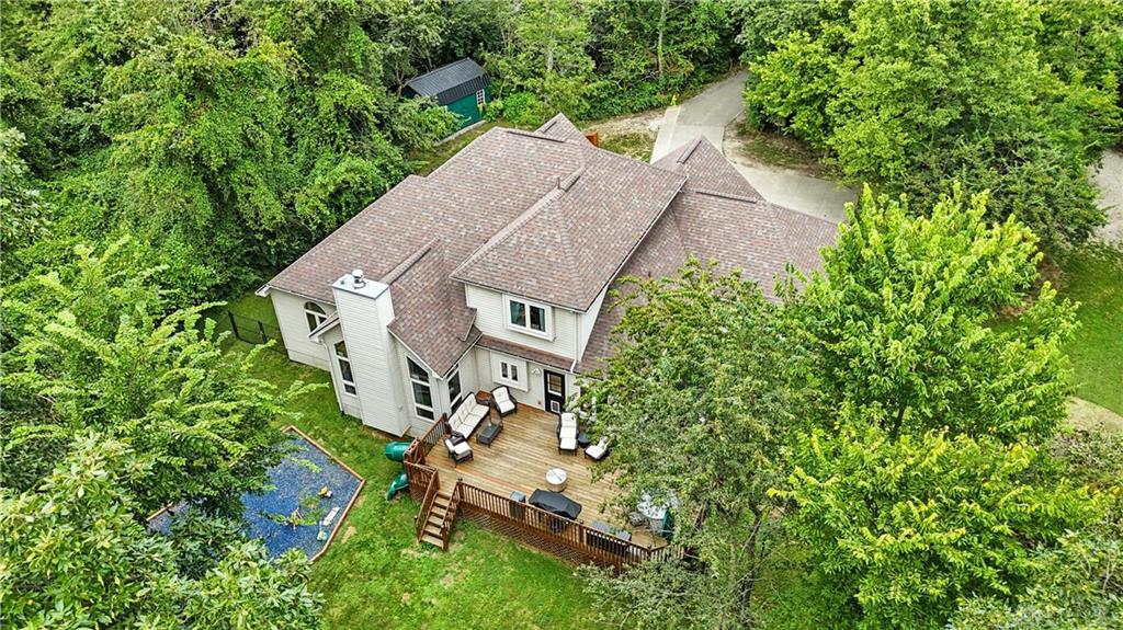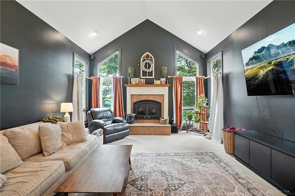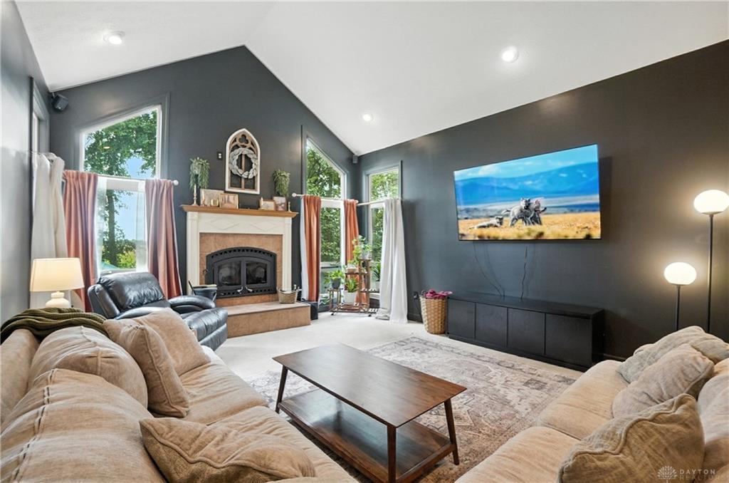 Welcome to your private retreat on 2.46 wooded acres, offering total seclusion while surrounded by peaceful farmland. The koi pond in the front yard warmly welcomes you home, setting the tone for this elegant and tranquil estate. Inside, the first-floor owner's suite features vaulted ceilings, abundant natural light, a spa-inspired jetted soaking tub, double vanity, walk-in shower, private water closet, and spacious walk-in closet. The gourmet kitchen boasts high-end appliances, custom granite countertops and backsplash, and new designer lighting. Fanstastic breakfast area off of the kitchen. Storage here is not an issue! A dramatic wall of windows in the great room highlights the vaulted ceilings and wood-burning fireplace with blower. The formal dining room and grand foyer add to the home's executive feel with updated fixtures and architectural detail. Additional conveniences on the 1st floor include a remodeled half bath, laundry room, and coat closet off the entry. The finished lower level is an entertainer's dream with a theater area (sofa stays), billiards space (pool table stays), kitchenette with bar and refrigerator, new full bath with walk-in shower, tanning bed, built-ins, generous storage, and even a hidden panic room. Outdoors, enjoy the rear deck, patio with children's slide, fenced play area with rubber mulch, and the peaceful natural setting. Car enthusiasts will love the insulated 3-car garage with soaring ceilings, plus the brand-new 50x30 outbuilding featuring 6' concrete floors, electric, insulation, Spectrum high-speed internet, and a full loop driveway. With 200-amp service, a new sump pump, efficient heat pump, and highly functional all-electric systems, this home blends modern luxury with thoughtful practicality. From the welcoming koi pond to the vaulted ceilings and refined finishes, every detail has been designed for comfort and sophistication. (Shed does not stay). Call today for your own private tour of this one of a kind home.