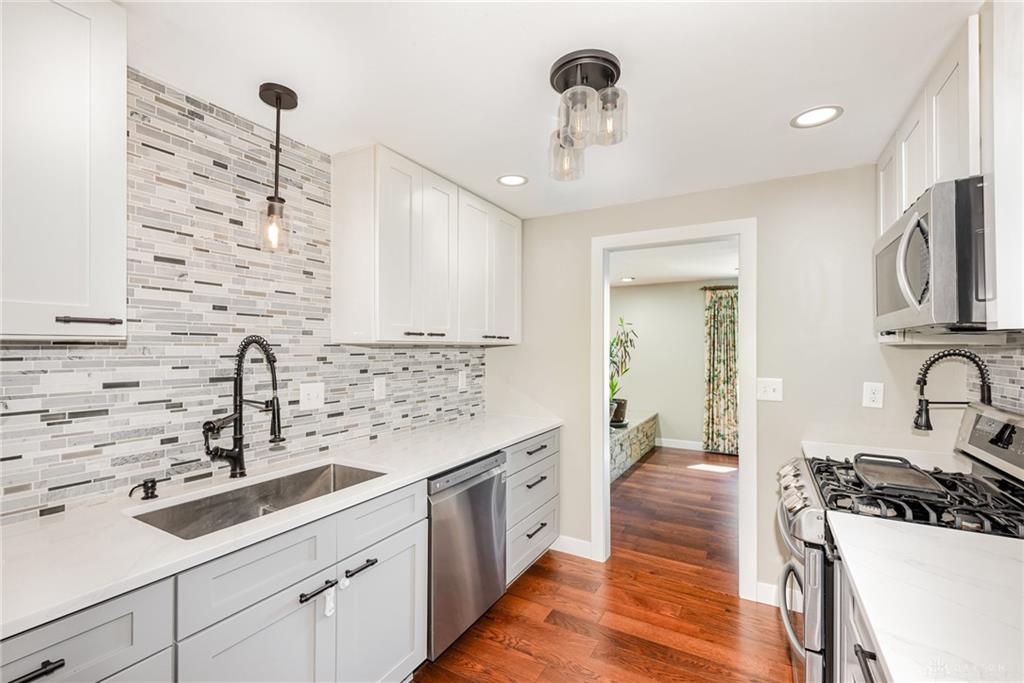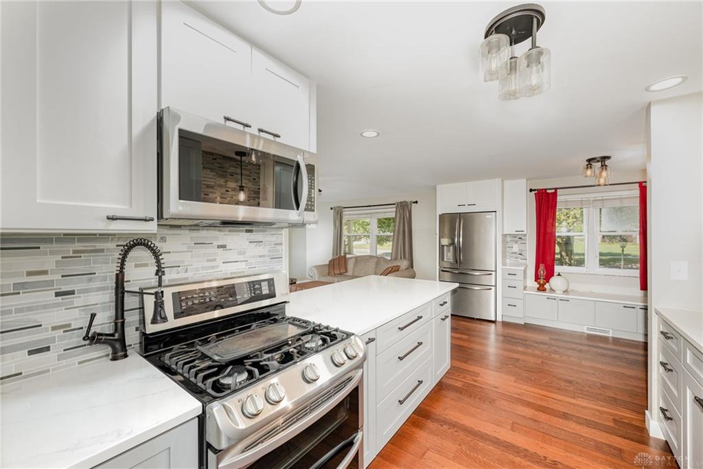 Welcome to 2360 E Rahn Road, a spacious and beautifully updated home offering 4 bedrooms, 2 full baths, 1 half bath, and 2,579 sq ft of comfortable living. This well-cared-for property has had only three owners and blends thoughtful updates with classic charm. Inside, you’ll find a remodeled kitchen (less than 5 years old) featuring quartz countertops, engineered wood flooring, and newer appliances—including the fridge, range with double oven, and dishwasher—all of which stay. The cozy living area is anchored by a gas-burning fireplace insert, perfect for relaxing evenings. Practical updates add peace of mind, including two HVAC systems, a roof installed in 2011, a water heater within 10 years, and gutter guards for easy maintenance. All interior doors have been replaced, and the garage includes a unique switch that powers the front lamp post. The home also offers flexibility: while currently set with a gas range, wiring remains in place if a future owner prefers an electric stove. Outside, you'll find a patio perfect for sitting out on in the front, and an additional patio with coverage over part of it, and a storage shed that stays with the property. With 2,579 square feet of space, this home provides plenty of room for both everyday living and entertaining. Don’t miss this opportunity to own a well-maintained Kettering home with modern updates and character throughout.