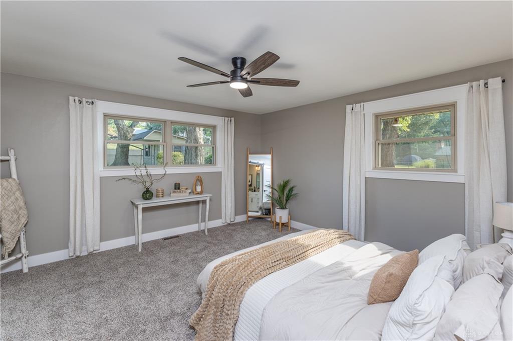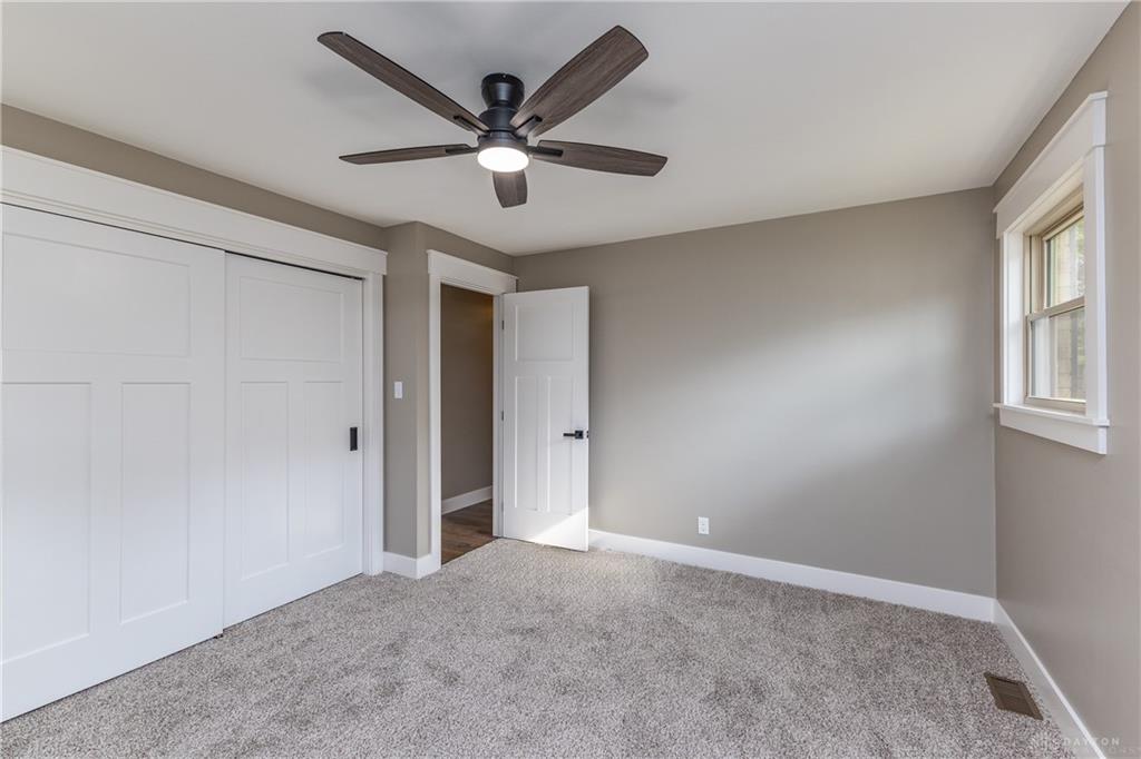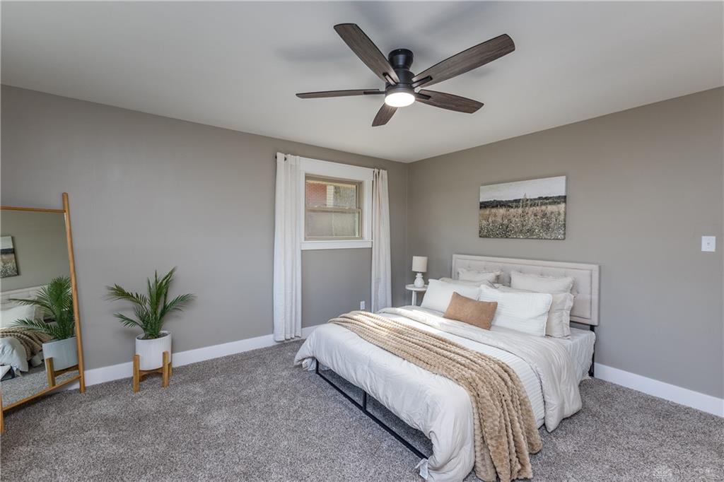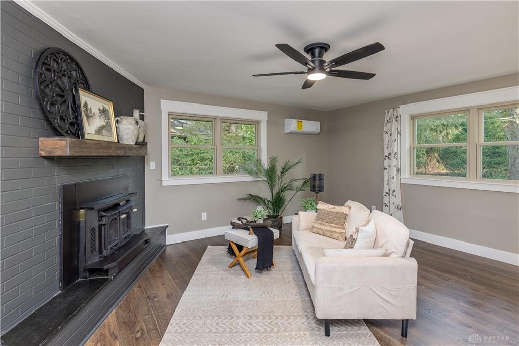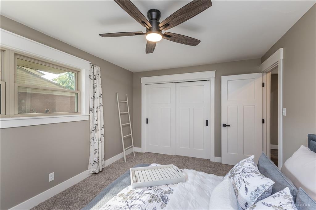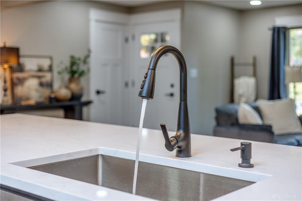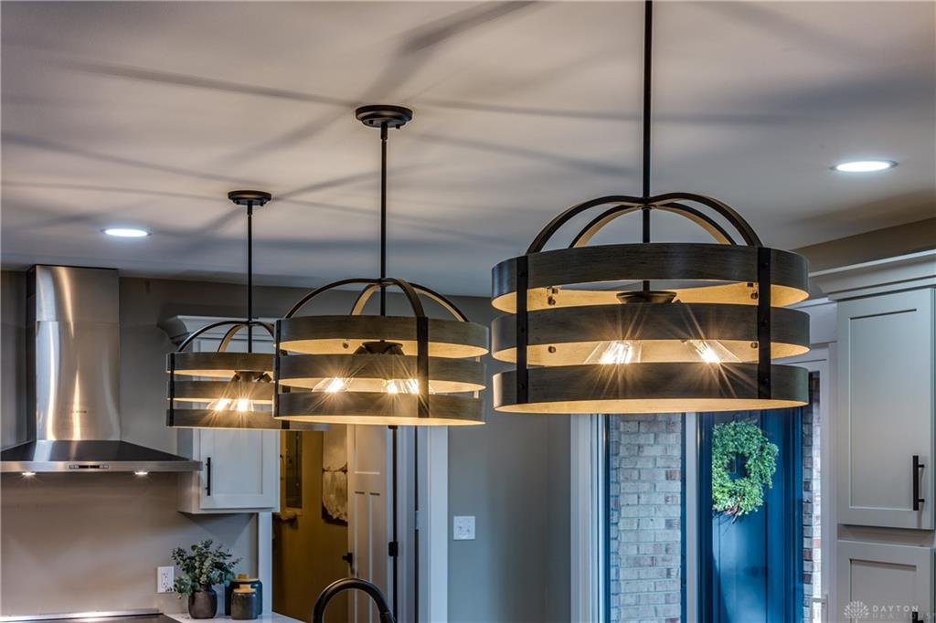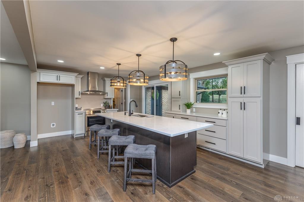 Welcome to this beautifully updated 4-bedroom, 2-bath home nestled in a serene, park-like setting in the heart of Kettering. Thoughtfully redesigned from top to bottom, this home offers over 1950 sq ft with a completely open-concept layout and designer finishes throughout. Beginning with the feature wall with an electric fireplace perfect for cozy evenings. The spacious kitchen is complete with quartz countertops, self-closing cabinetry, a large center island and stainless steel Bosch appliances. Off the kitchen there is now a custom food pantry with a pass through to the new laundry room. The fourth bedroom is currently staged as a comfortable family room, offering flexibility to fit your lifestyle. Both bathrooms have been completely remodeled with contemporary fixtures and finishes. Additional updates include all-new flooring, drywall, wood trim, and solid wood interior doors with updated door casings and modern hardware. Stylish new lighting fixtures brighten every space, while double-hung windows provide energy efficiency and curb appeal. Freshly painted inside and out, the home also features a newer roof and gutters, new garage door, and all new exterior doors, including a sleek new sliding glass door that opens to the expansive three-level deck perfect for relaxing or hosting guests with the built-in gas grill. Take a step down off the deck to walkways that lead to the second tier of the backyard with a large shed with electric-ideal for a workshop, hobby space, or extra storage.