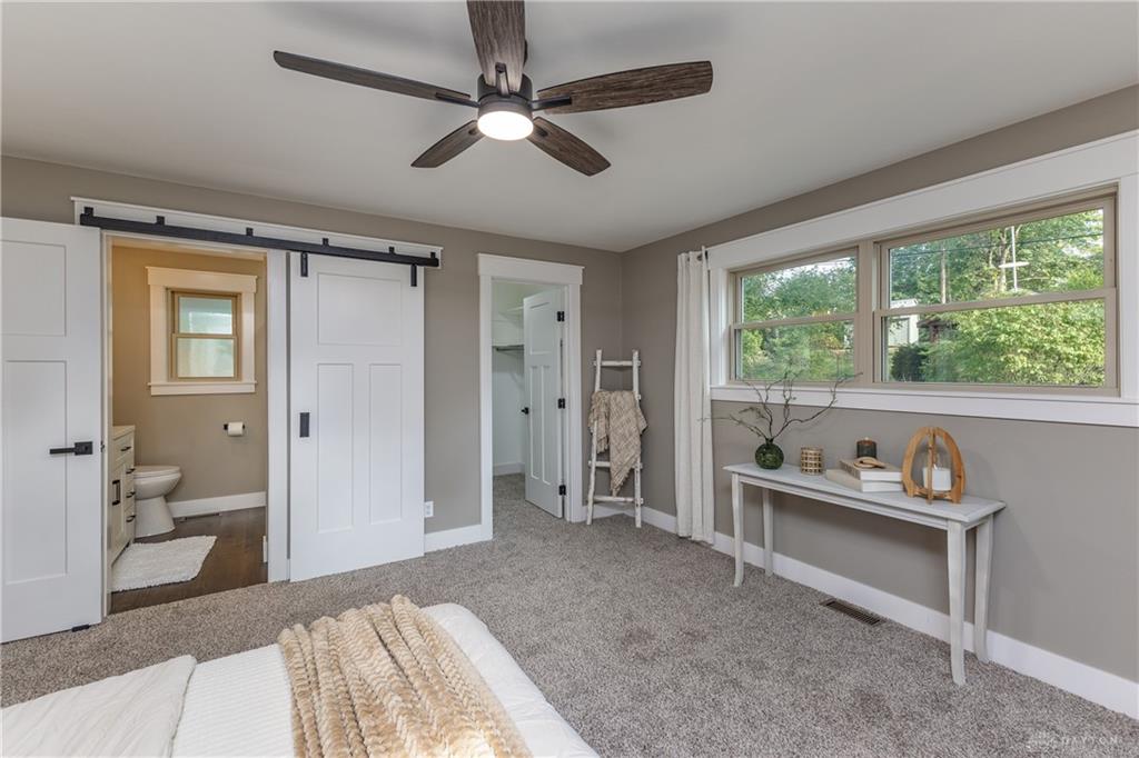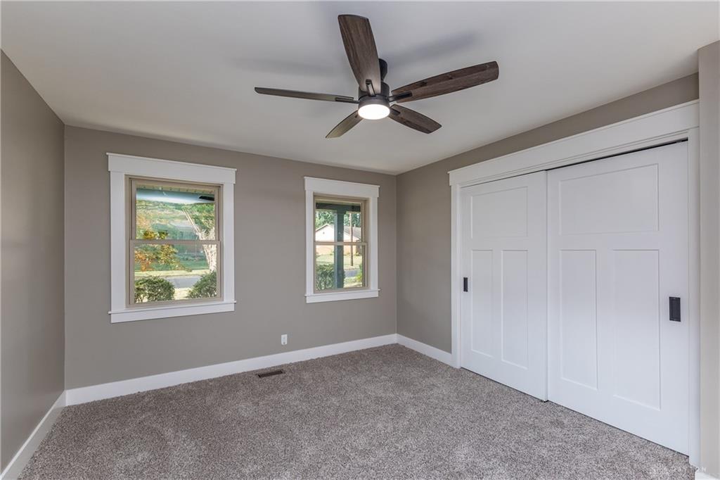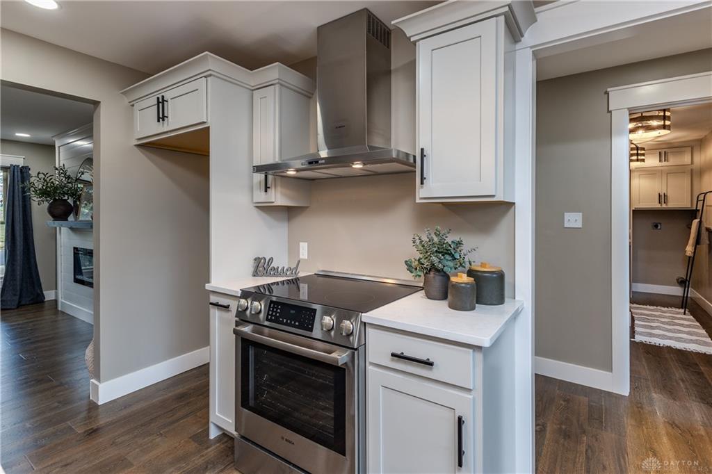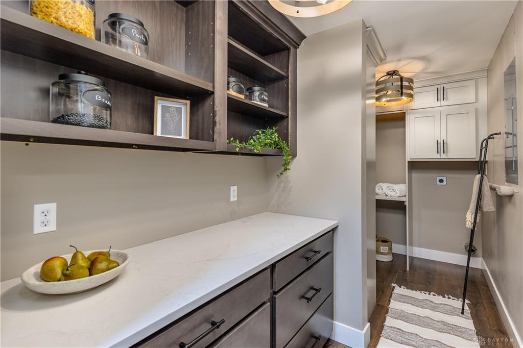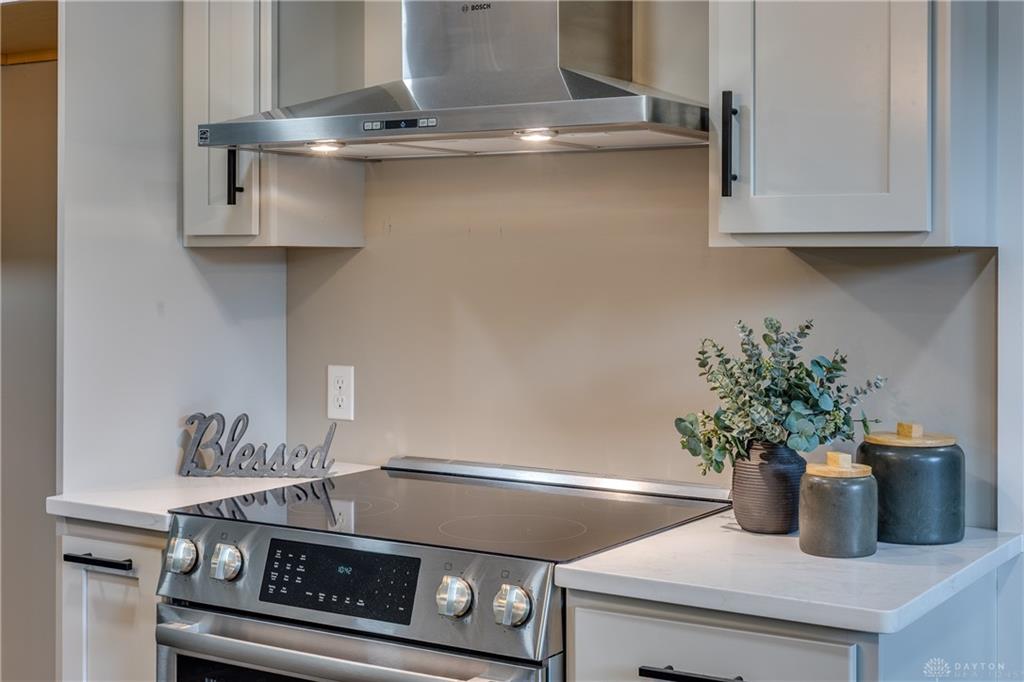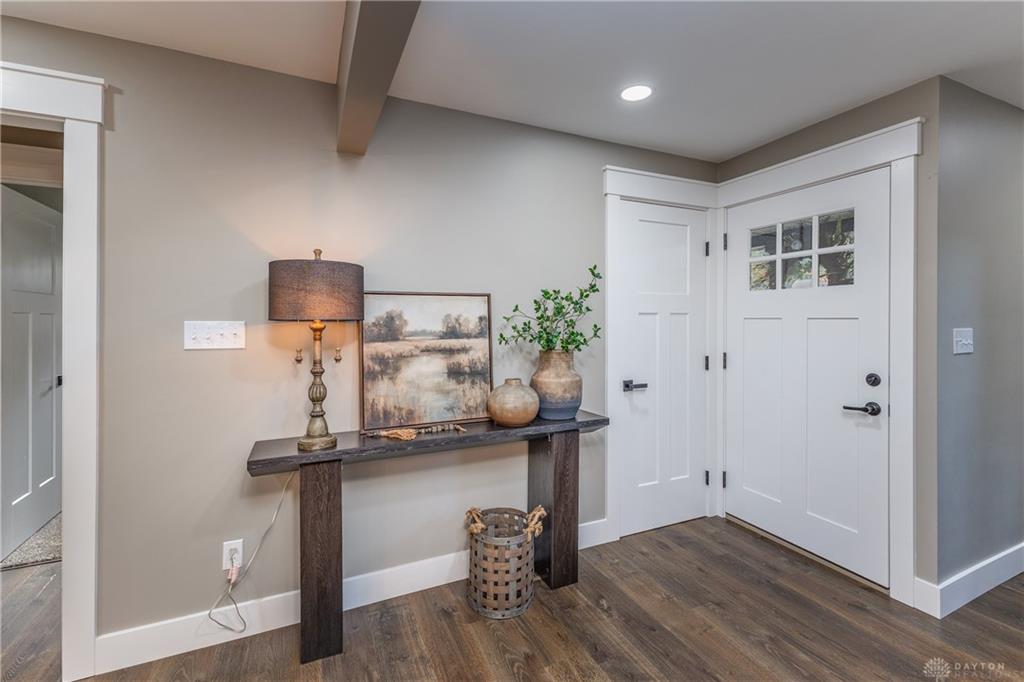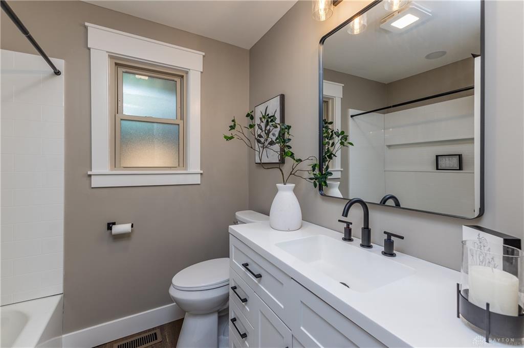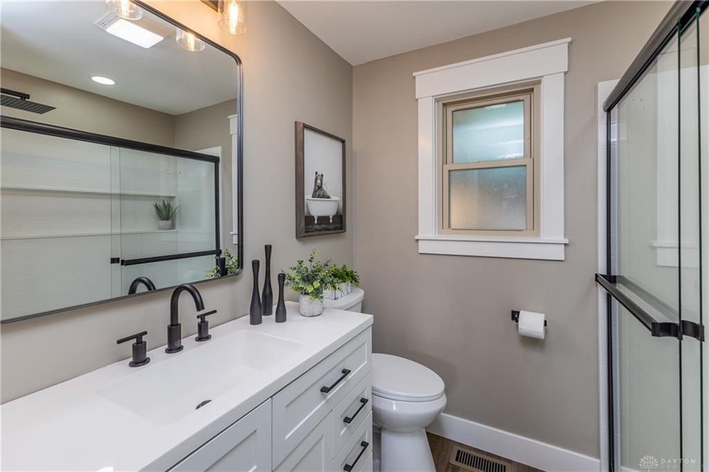 Welcome to this beautifully updated 4-bedroom, 2-bath home nestled in a serene, park-like setting in the heart of Kettering. Thoughtfully redesigned from top to bottom, this home offers over 1950 sq ft with a completely open-concept layout and designer finishes throughout. Beginning with the feature wall with an electric fireplace perfect for cozy evenings. The spacious kitchen is complete with quartz countertops, self-closing cabinetry, a large center island and stainless steel Bosch appliances. Off the kitchen there is now a custom food pantry with a pass through to the new laundry room. The fourth bedroom is currently staged as a comfortable family room, offering flexibility to fit your lifestyle. Both bathrooms have been completely remodeled with contemporary fixtures and finishes. Additional updates include all-new flooring, drywall, wood trim, and solid wood interior doors with updated door casings and modern hardware. Stylish new lighting fixtures brighten every space, while double-hung windows provide energy efficiency and curb appeal. Freshly painted inside and out, the home also features a newer roof and gutters, new garage door, and all new exterior doors, including a sleek new sliding glass door that opens to the expansive three-level deck perfect for relaxing or hosting guests with the built-in gas grill. Take a step down off the deck to walkways that lead to the second tier of the backyard with a large shed with electric-ideal for a workshop, hobby space, or extra storage.