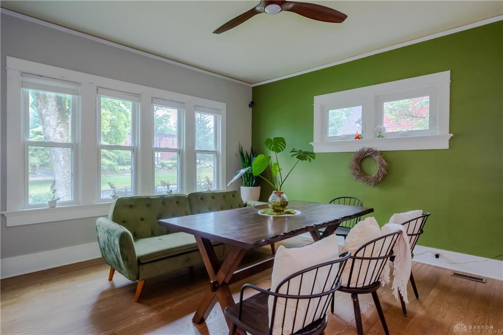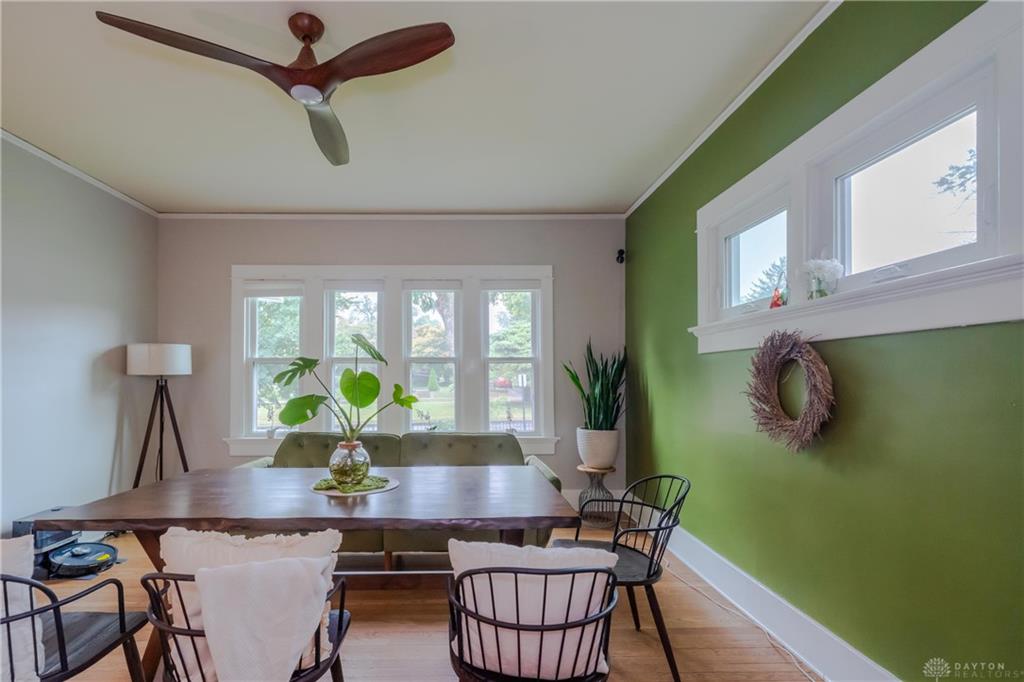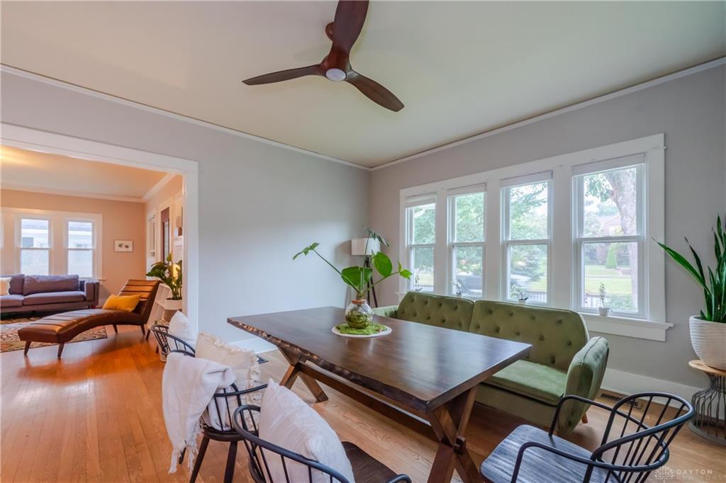This stunning Oakwood Cape Cod is truly move-in ready w/nothing left to do. Blending timeless character w/thoughtful updates. The kitchen sparkles w/stainless steel appliances, crisp white cabinetry, and a glass tile backsplash. Just off the modern kitchen, you’ll find a cozy butler’s pantry, while the large formal dining room provides space to host all who are welcome—this cheerful room has a wall of windows that fill the space w/natural light and create a warm, inviting atmosphere for gatherings. Gleaming hardwood floors carry throughout, adding timeless charm and beauty to every room. The inviting living room is anchored by a cozy fireplace w/a classic mantle—perfect for creating holiday memories. The owner's suite offers a luxurious attached bath w/a custom walk-in shower, plus a flexible sitting area perfect for a reading nook, quiet retreat, or home office. The second-floor suite enjoys its own HVAC system for personalized comfort, while the home’s hot water is powered by an on-demand, high-efficiency tankless system. Two nice-sized bedrooms on the main level are conveniently located near a full bath w/a tub/shower combo, making daily living easy and functional. The walk-out basement provides an abundance of storage, offering endless potential for a recreation room, gym, or additional living space and includes a third full bath. Outdoor living shines w/multiple options: relax on the screened front porch complete w/swing, unwind on the covered back porch, or grill & entertain. Fully fenced for children or fur babies. An oversized one-car garage w/opener and more storage is complemented by an oversized concrete pad that accommodates two additional vehicles. Updates include a brand-new roof (2024), a 7k custom front door, and basement waterproofing. Perfectly located in the heart of Oakwood, this home offers unmatched convenience to shops, schools, and community life. Don’t miss this rare opportunity to own a classic home that feels brand new.