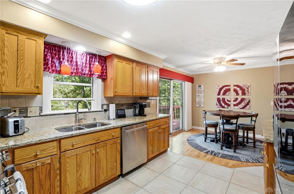 Fall in love at first sight with this amazing home! This beautifully maintained, sprawling expanded 3-4 bedroom, 2.5 bath brick ranch with a full finished walk out lower level in the highly desired Miami East School District sits on a breathtaking one-acre lot surrounded by mature trees and a peaceful creek—offering the perfect balance of privacy, charm, and modern comfort. From the moment you arrive, you’ll love the curved driveway with ample parking, 3 car garage and the picturesque setting. The inviting foyer with wood floors flowing thru the home opens to both a huge family room and a cozy living room—ideal for entertaining or relaxing by the fireplace on cool evenings. The front family room also provides flexibility for a dining area or additional gathering space. The nice kitchen and breakfast room offers granite countertops, updated appliances that stay and has amazing views of rear yard and leads to the large deck. Down the hall is the bedrooms and the full bathroom along with the large primary suite features a spacious layout, walk-in closet, and full updated bathroom with a whirlpool tub and double sinks. The recently updated finished basement offers over 1,800 sq. ft. of additional living space, complete with two rec areas, a full bar, pool table, and potential for a fourth bedroom. The oversized 3-car garage provides plenty of room for storage, workshop space, or extra vehicles. Enjoy the large deck with access from both the main level and the walkout basement, where you can take in the tranquil views morning or night. Recent updates include a Wi-Fi–enabled whole-house generator , Radon mitigation system, fenced in the yard, carpet, paint, basement, wifi door locks and ring+more! Updated landscaping in front yard and numerous improvements throughout. Move-in ready at closing! The owner was transferred and truly hated to leave this wonderful home. Don’t miss the opportunity to make this exceptional property yours—schedule your private showing today!