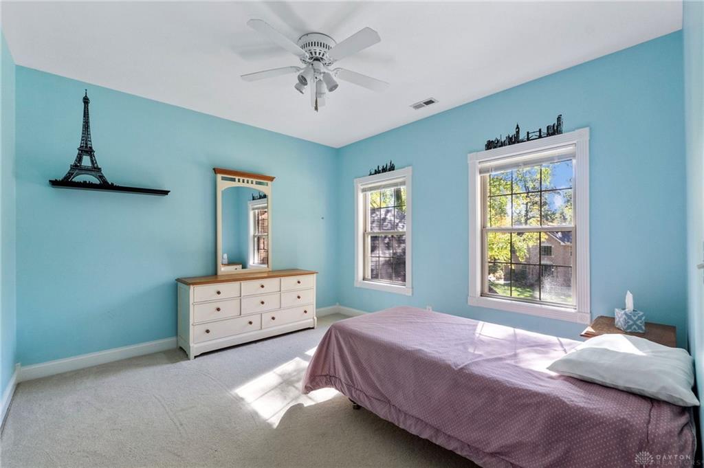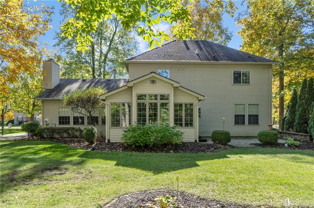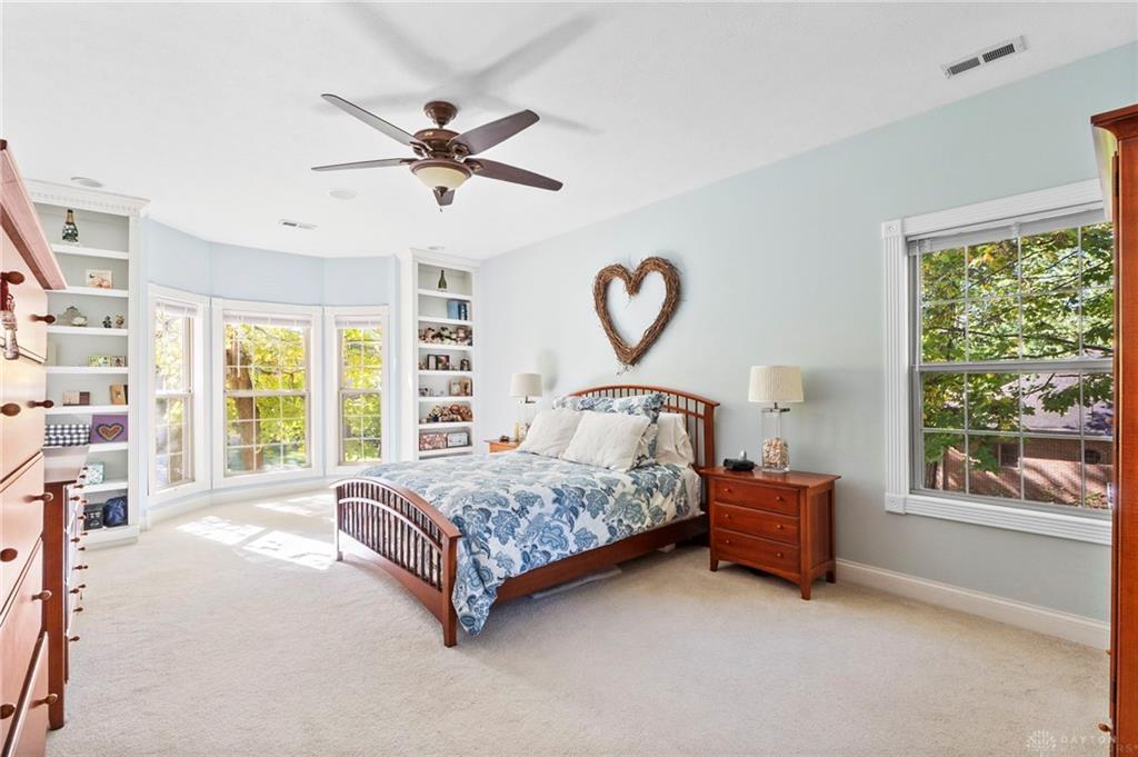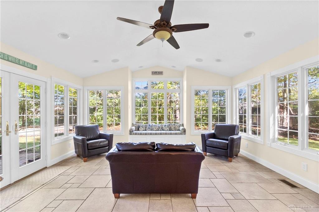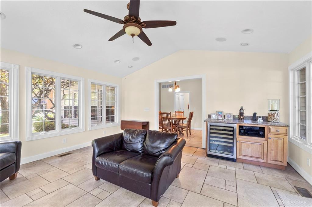 Fantastic custom home in sought-after Forest Edge, KR Schools, 4 beds, 2.5 baths, gorgeous sunroom, finished basement, half acre lot, 3 car side entry garage, all on a private cul-de-sac! The beautiful lot and landscaping greet you. Inside, you'll find an open entry with a sharp home office to your right. Custom built-ins are beautiful. To the left of the entry is a spacious living room. The formal dining room offers plenty of space for a large table. The custom kitchen is spectacular with tons of maple cabs w/ginger glaze finish, quartz tops, and updated stainless appliances. 2 full-size wall ovens, a large gas cooktop, spacious pantry, tile backsplash and flooring. So nice! The breakfast nook adjoins. The great room is huge and has a woodburning fireplace with gas starter. A sunroom has been added with gorgeous views of the rear property from 3 walls of windows. A 48-bottle wine chiller is nestled into the cabinetry. In-ceiling speakers connect to the provided receiver for music throughout kitchen, sunroom and outdoor patio. Fantastic! Upstairs, you'll find spacious bedrooms. The master suite is huge and offers built-ins, and a gracious master bath with walk-in shower, jetted tub, walk-in closet and in-ceiling speakers in bedroom and bath. In the lower level you'll find a massive rec room and absolutely tons of storage space. Outside, a private rear yard to enjoy with paver patio, deck with 120/240 volt breaker box, storage shed, and beautiful views! So many places to spend time with friends and family. Updates include: Newer Appliances, Sunroom Addition 2006, Roof 2015, HVAC 2017. Tons of storage, tons of natural light, irrigation system, underground portion of Invisible Fence, close to shopping, restaurants. Quick access to 68, 70, 675, 75, Columbus, Dayton. Hurry! Come see!