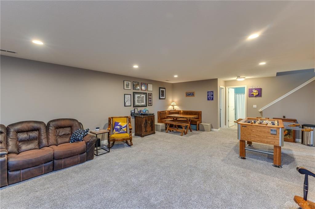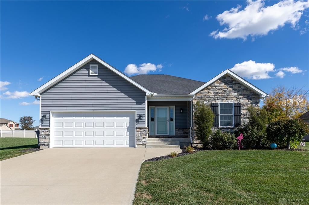 Beautiful 4-bedroom, 3-bath ranch in the desirable Miami East School District! Enjoy easy living in this newer, low maintenance, move-in-ready home with an open, spacious floor plan and large, light-filled rooms. The kitchen features granite countertops, rich cabinetry, stainless appliances, and a center island that flows perfectly into the great room with a cozy stone fireplace. The finished lower level nearly doubles your living space—offering a huge rec room, large bedroom, full bath, and an incredible storage area with a tornado-safe room and a flexible bonus room ideal for crafts, fitness, or a home classroom. Basement has plumbing set for a wet bar as well. Outside, enjoy a spacious yard with a large side area perfect for football, soccer, or outdoor entertaining, plus a storage shed for added convenience. A wonderful combination of comfort, space, and location!