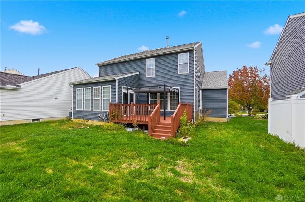 Beautifully maintained two-story home in the desirable Royal Pointe community of Beavercreek! Offering 3 bedrooms, 2.5 baths, and over 2,300 sq ft of living space, this home features an open-concept kitchen with island and adjoining family room—perfect for entertaining. The finished lower level provides additional living and storage space. Enjoy outdoor living on the spacious deck overlooking a fenced yard. Additional highlights include a gas fireplace, vinyl windows, two-car garage, and central heating/cooling. Conveniently located near shopping, dining, parks, and major highways within the Beavercreek City School District. A wonderful place to call home!