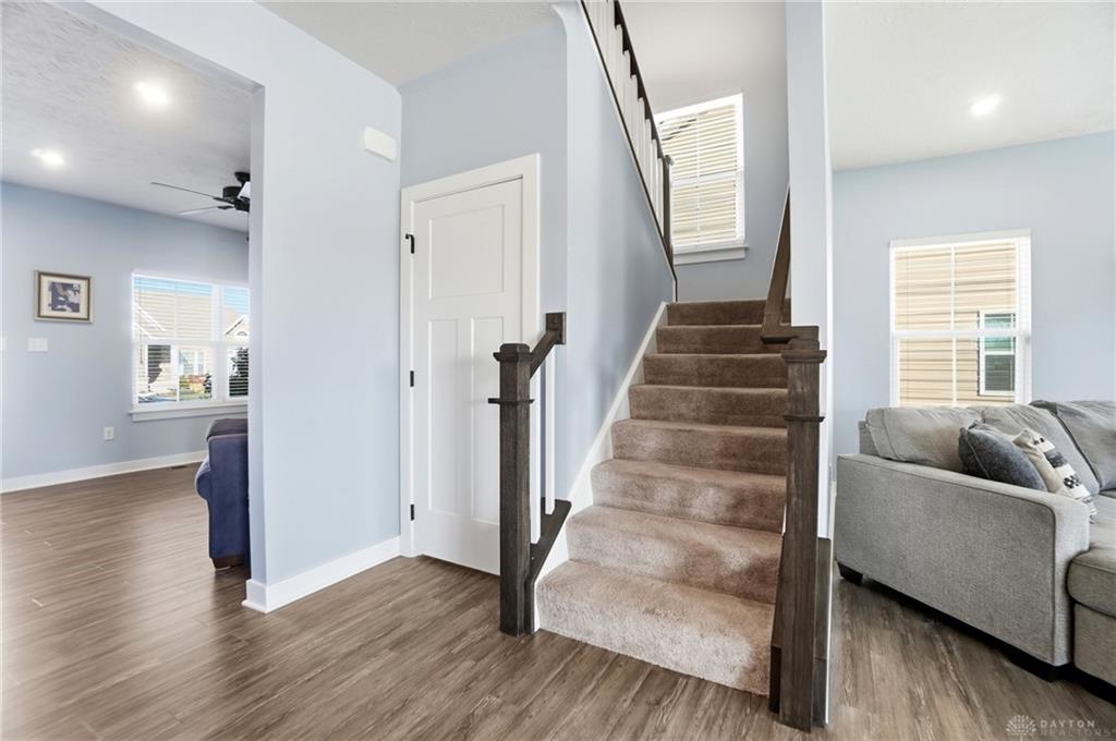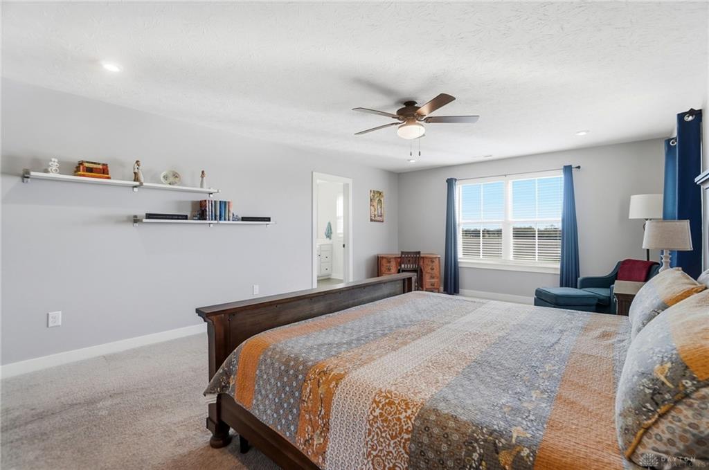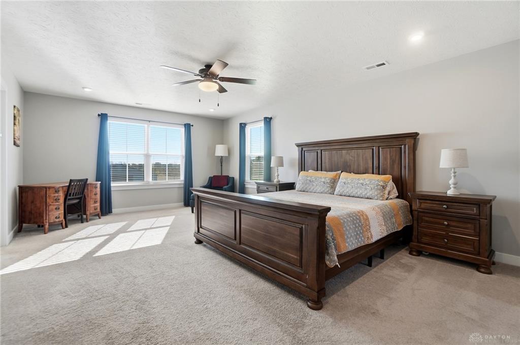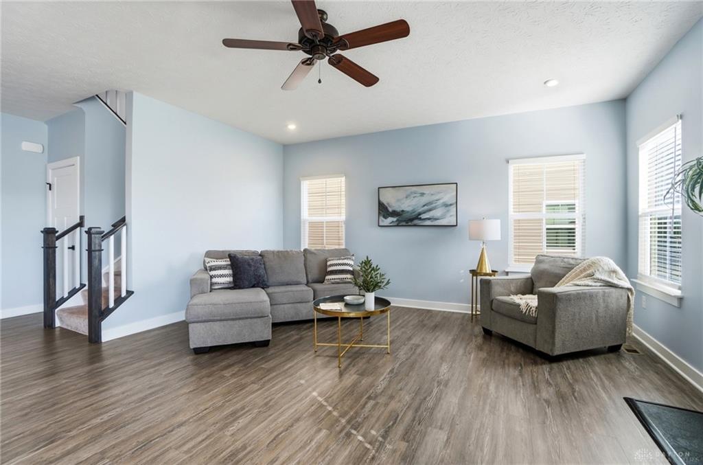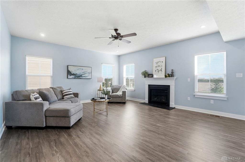This pristine Columbia model located in the Stonebridge Meadows community was built in 2020 and most every option was added. The open floor plan features 3,698 square feet with 2,532 SF on 1st & 2nd levels and an additional 1,166 SF in the finished lower level. 3-4 bedrooms with a 2nd floor flex loft/study that can be easyily converted to bedroom. 3 1/2 bath. Utilize the first floor flex room as a living room, office or dining room. Open kitchen, family room & breakfast room.The luxurious kitchen features upgraded cabinets, gorgeous granite seamless counters, tile backsplash, extended island/breakfast bar, gas range, pantry & upgraded lighting. Family room is accented with a gas fireplace. Upgraded wood trim package throughout. Additional windows added for even more natural light throughout the home. Convenient mud room off kitchen & garage. Expansive master suite with walk-in closet and closet organizers. Owner's ensuite has tiled shower with dual shower heads & humidity fan. Second floor laundry room. Additional features: Whole house surge protection, upgraded HVAC system w/air purifier, whole house dehumidifier, battery back-up on sump pump, fire protection system w/2 alarm systems, carbon monoxide monitor, custom blinds, garage key pad, & surge protection in garage. Plenty of places to relax outdoors with a cozy covered front porch and 14x10 covered rear deck. Side entry garage and extra driveway for off street parking. The Stonebridge Meadows community offers a walking trail, pond and gazebo for all residents to enjoy. Easy access to elementary school, I-75, I-70. Convenient to shopping, dining & grocery stores.